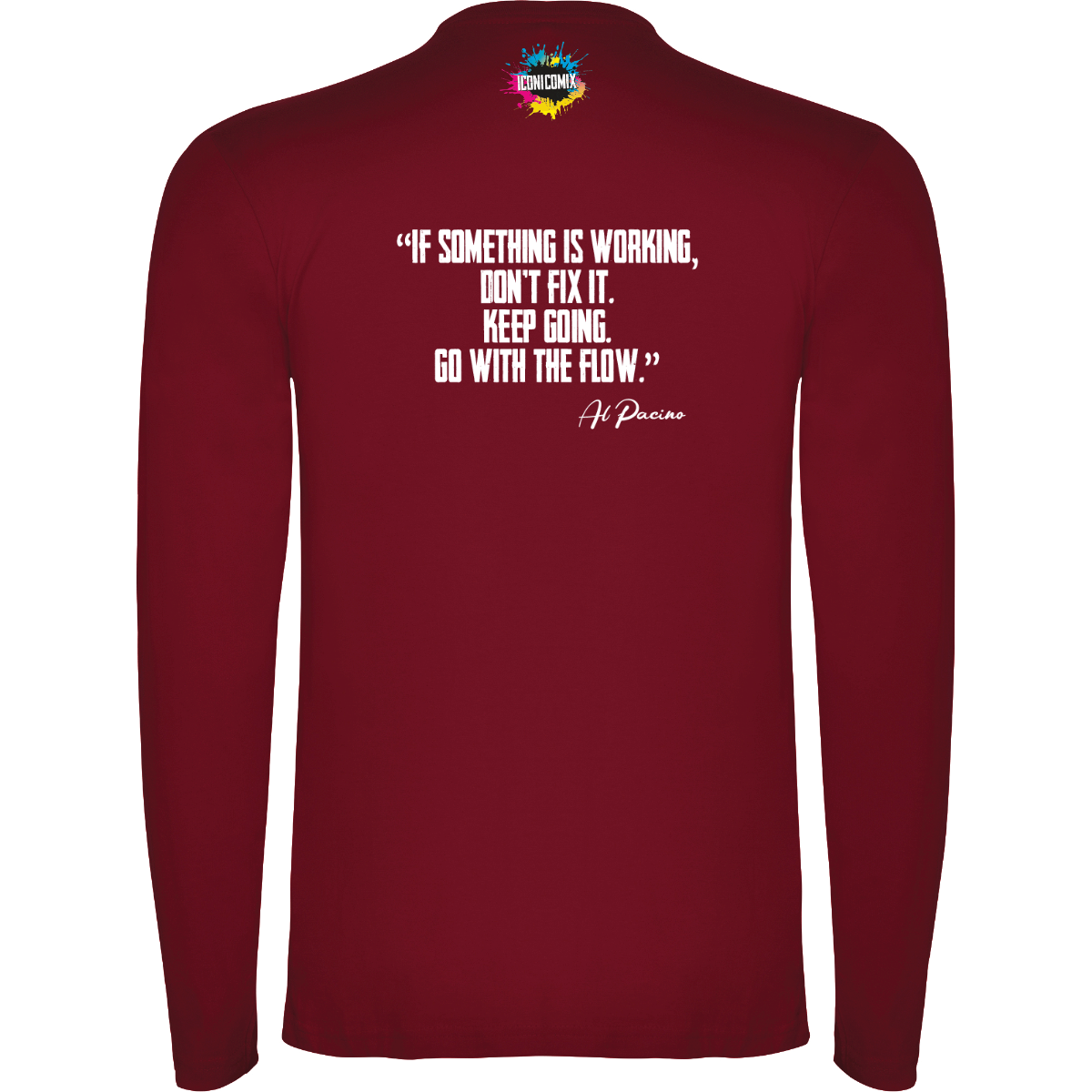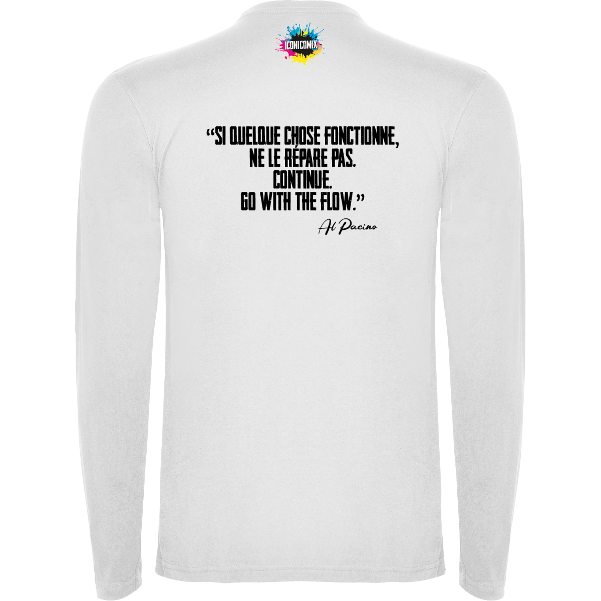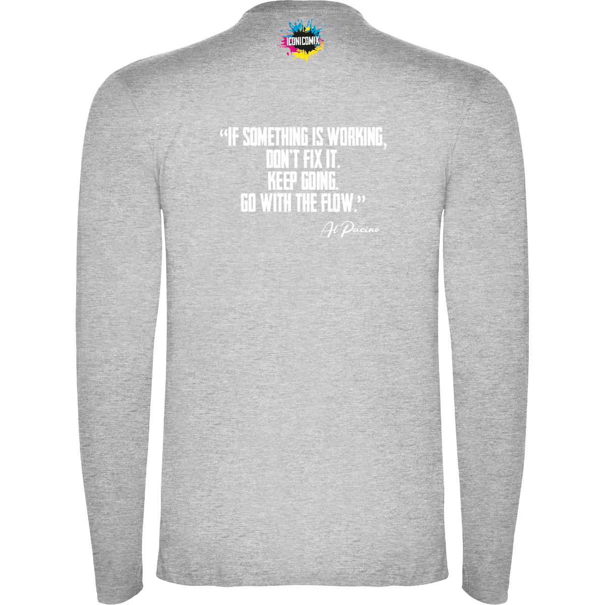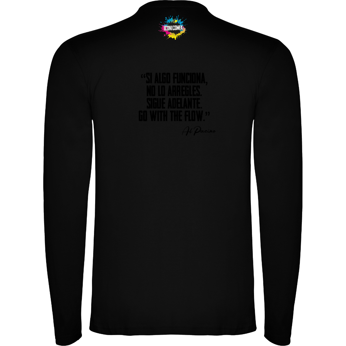 T-shirt manica lunga, tessuto tubolare, girocollo a 4 strati. Copricuciture rinforzate su collo e spalle. Senza