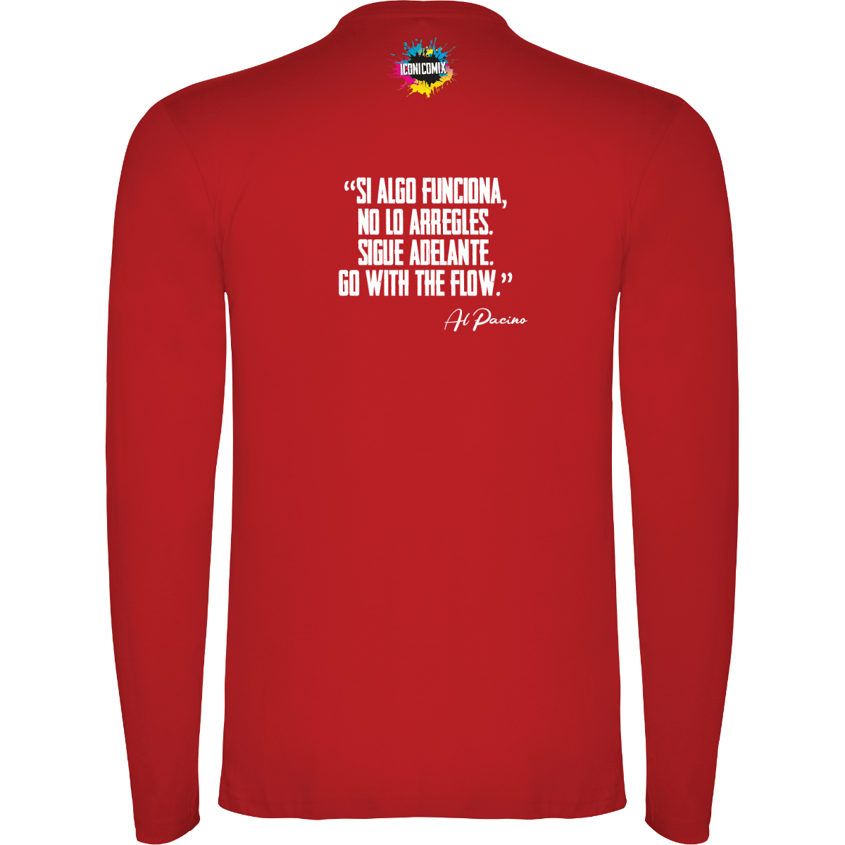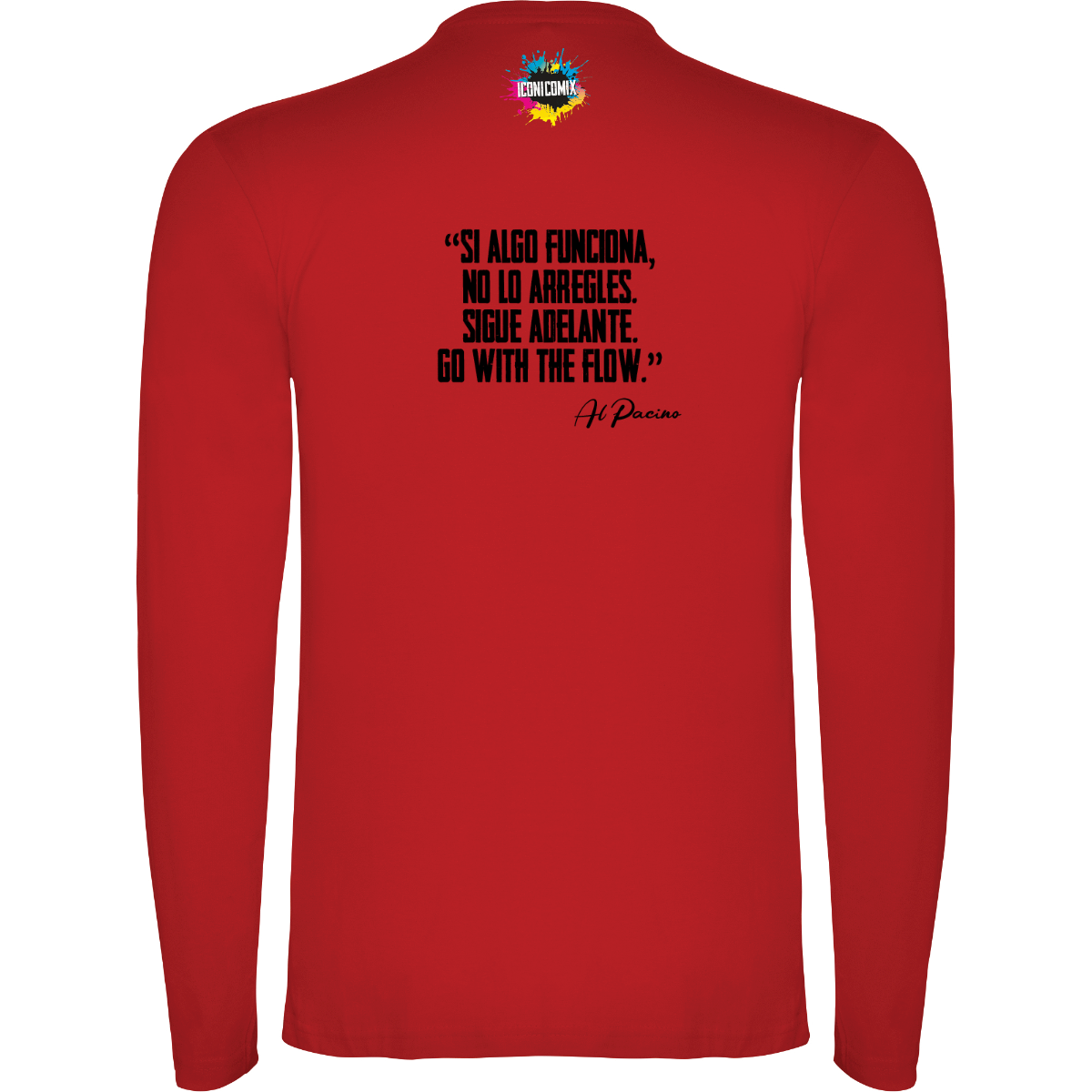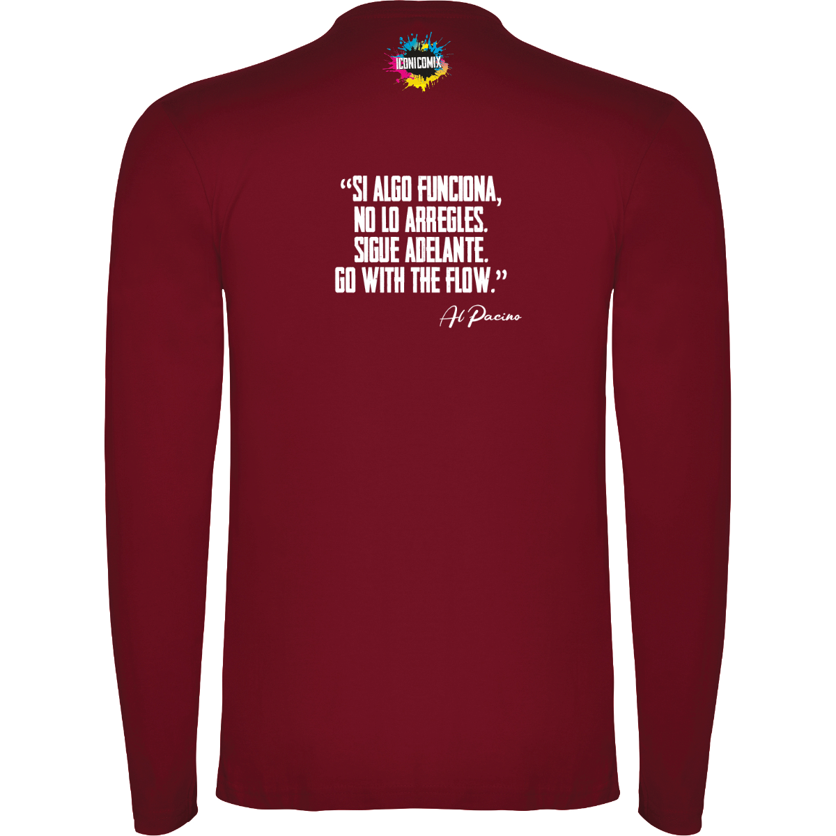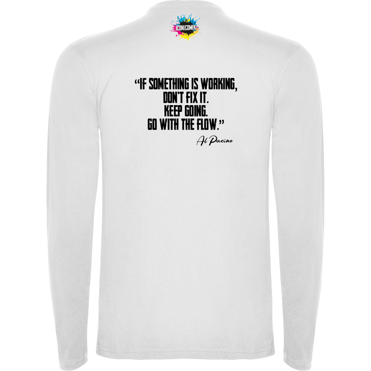 T-shirt manica lunga, tessuto tubolare, girocollo a 4 strati. Copricuciture rinforzate su collo e spalle. Senza