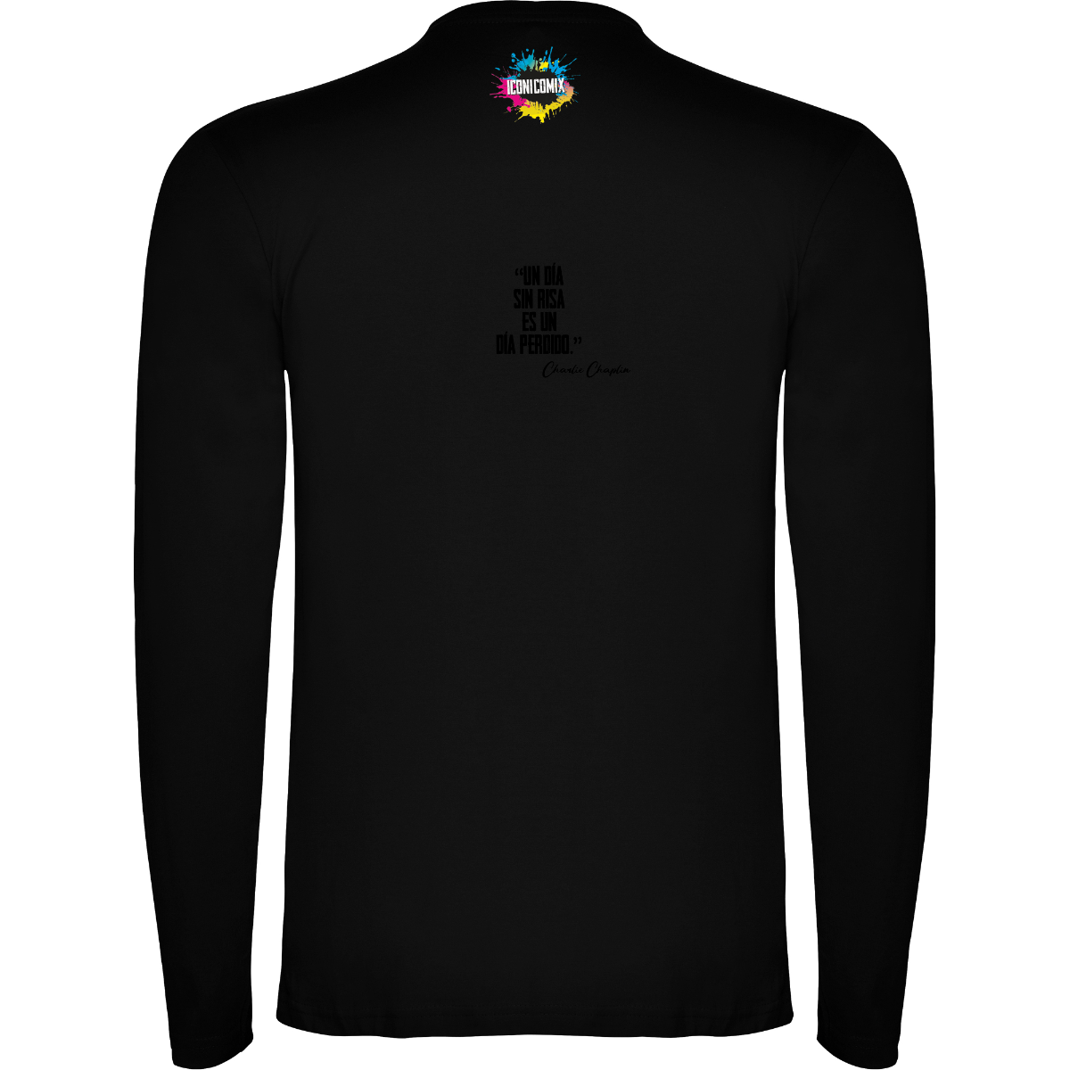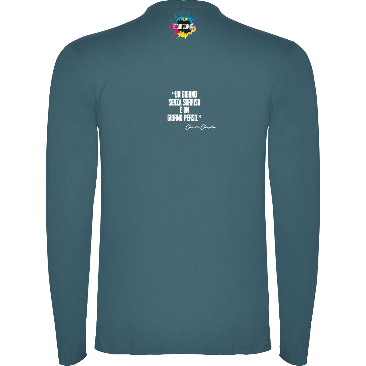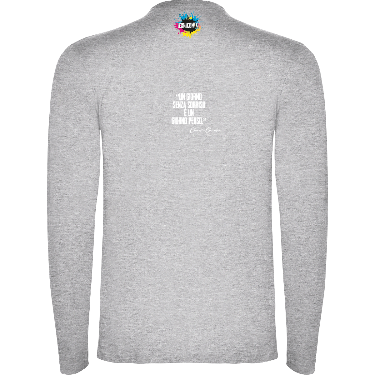T-shirt manica lunga, tessuto tubolare, girocollo a 4 strati. Copricuciture rinforzate su collo e spalle. Senza