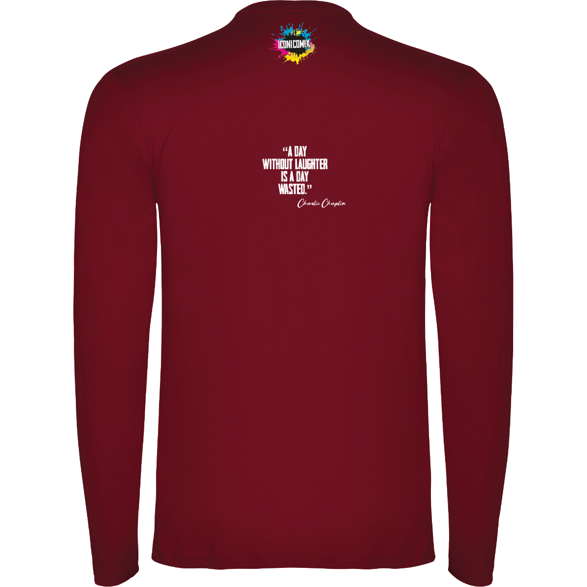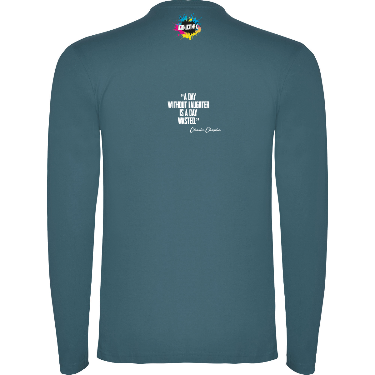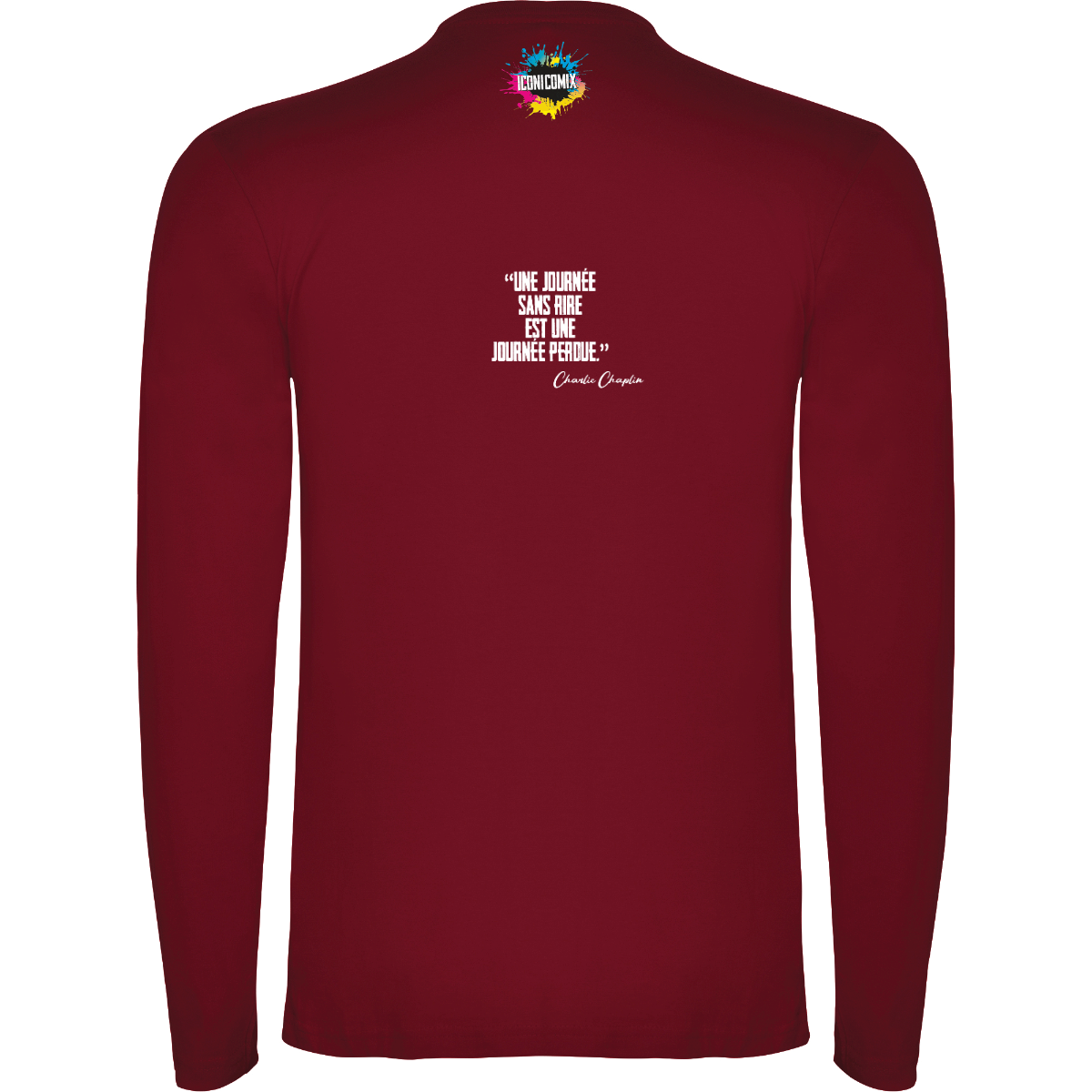 T-shirt manica lunga, tessuto tubolare, girocollo a 4 strati. Copricuciture rinforzate su collo e spalle. Senza