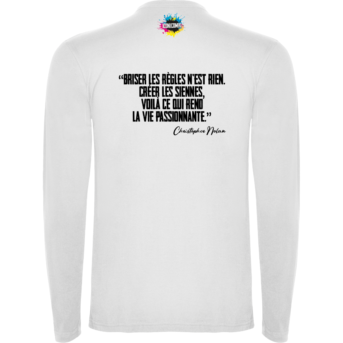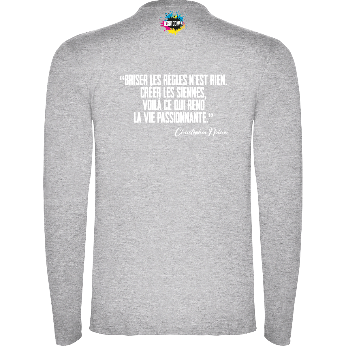 T-shirt manica lunga, tessuto tubolare, girocollo a 4 strati. Copricuciture rinforzate su collo e spalle. Senza