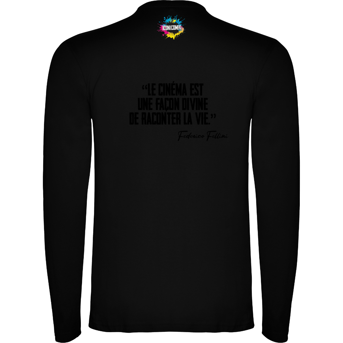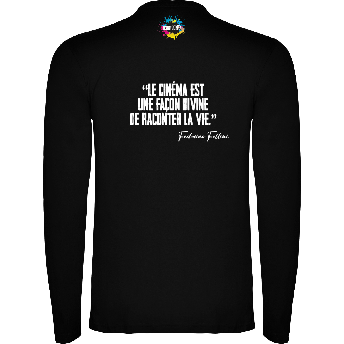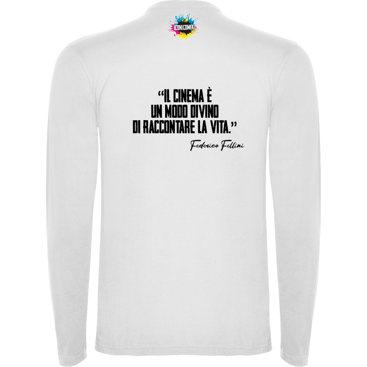 T-shirt manica lunga, tessuto tubolare, girocollo a 4 strati. Copricuciture rinforzate su collo e spalle. Senza
