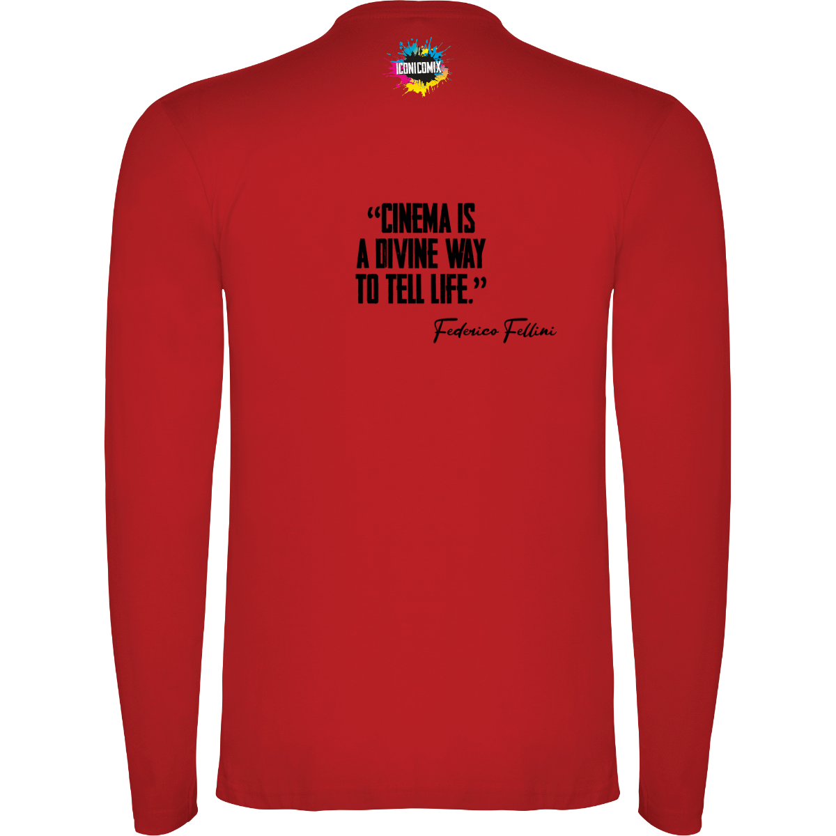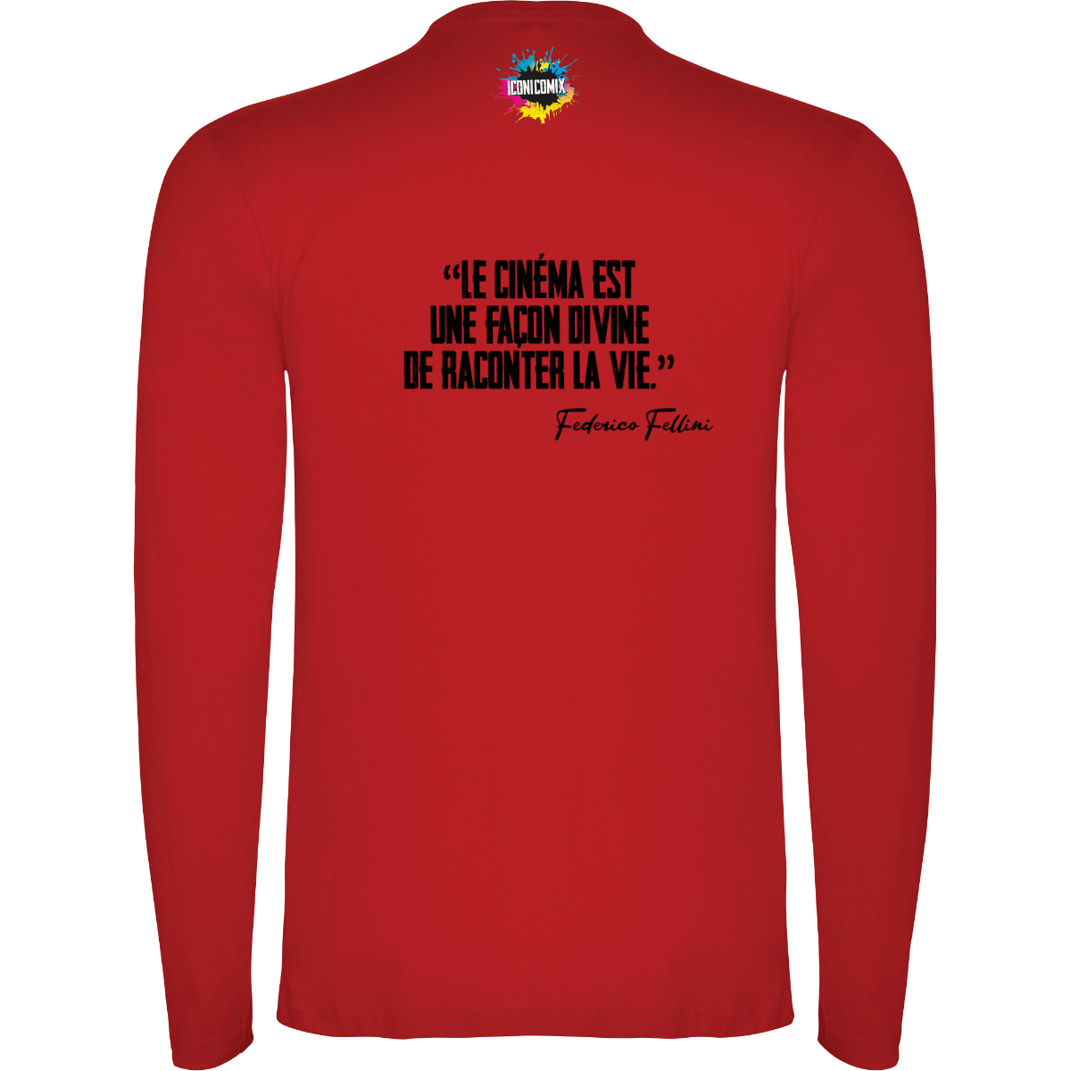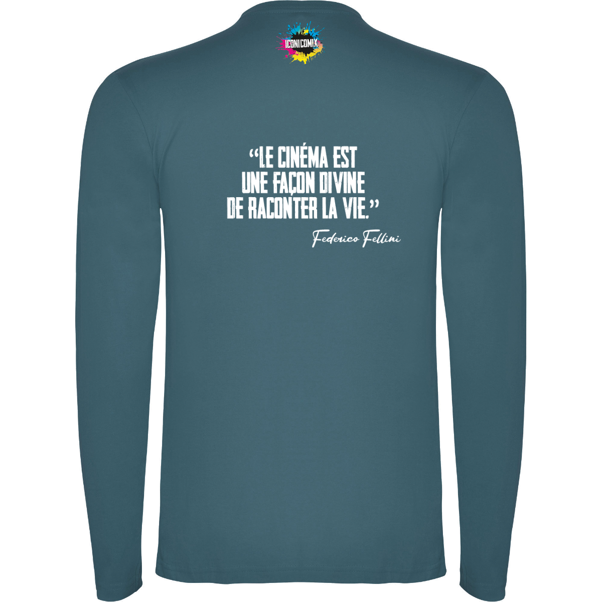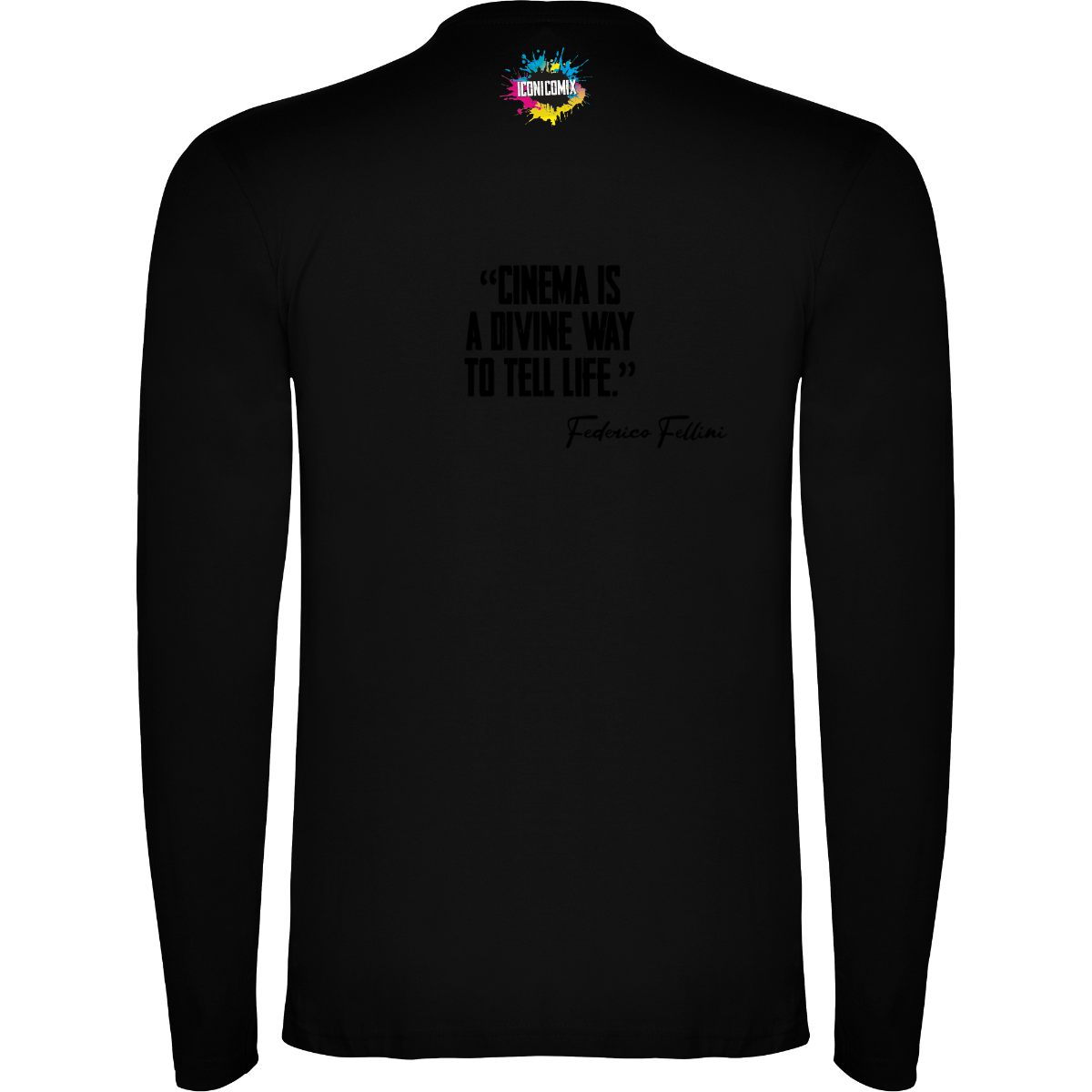 T-shirt manica lunga, tessuto tubolare, girocollo a 4 strati. Copricuciture rinforzate su collo e spalle. Senza