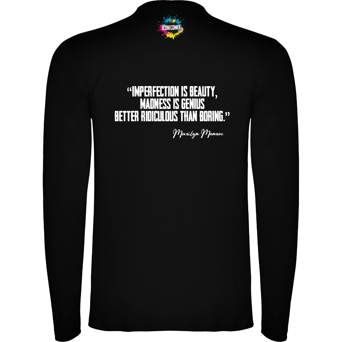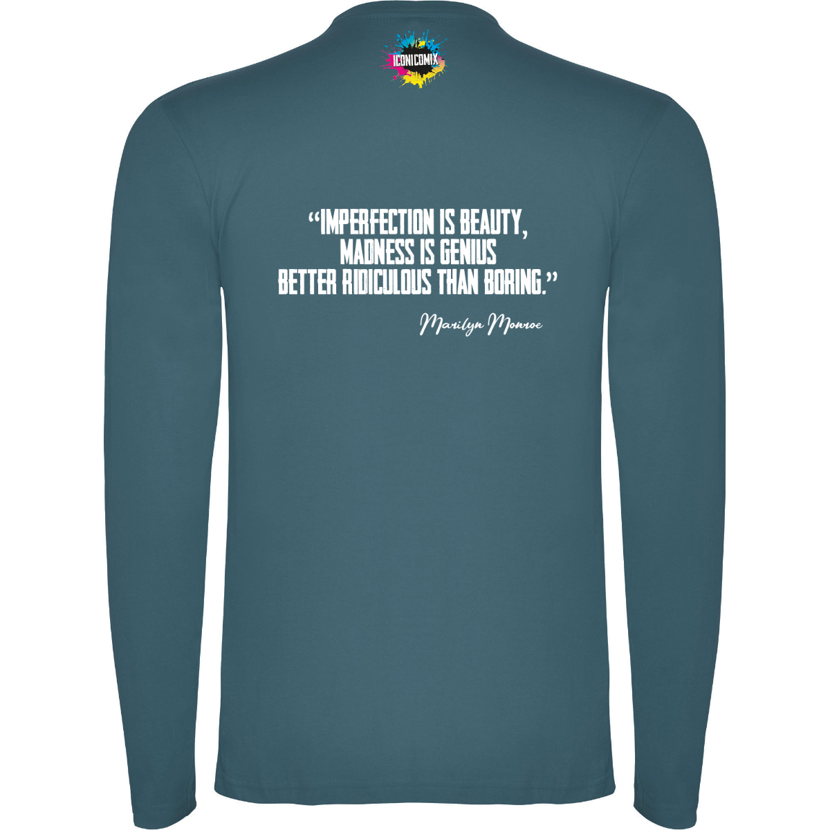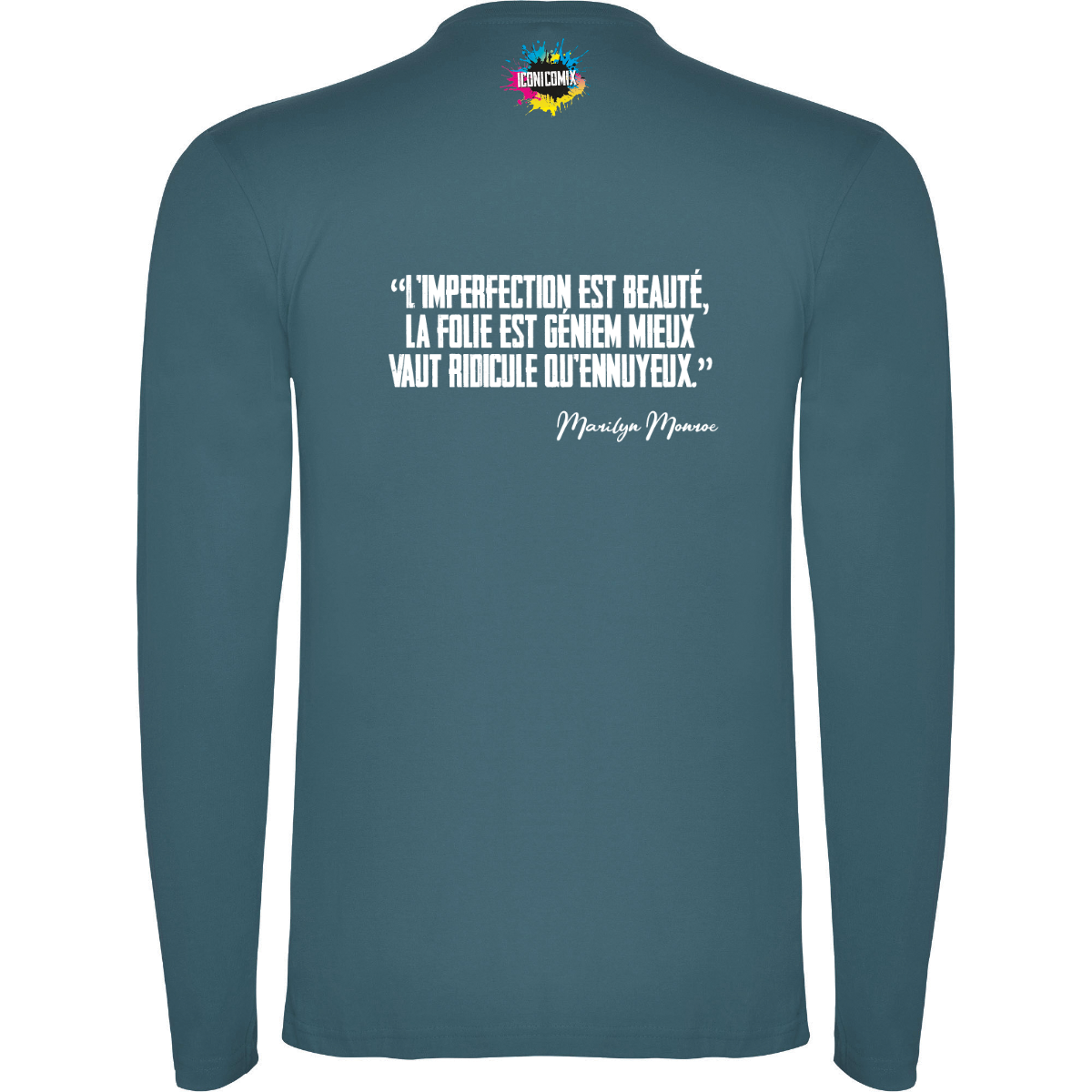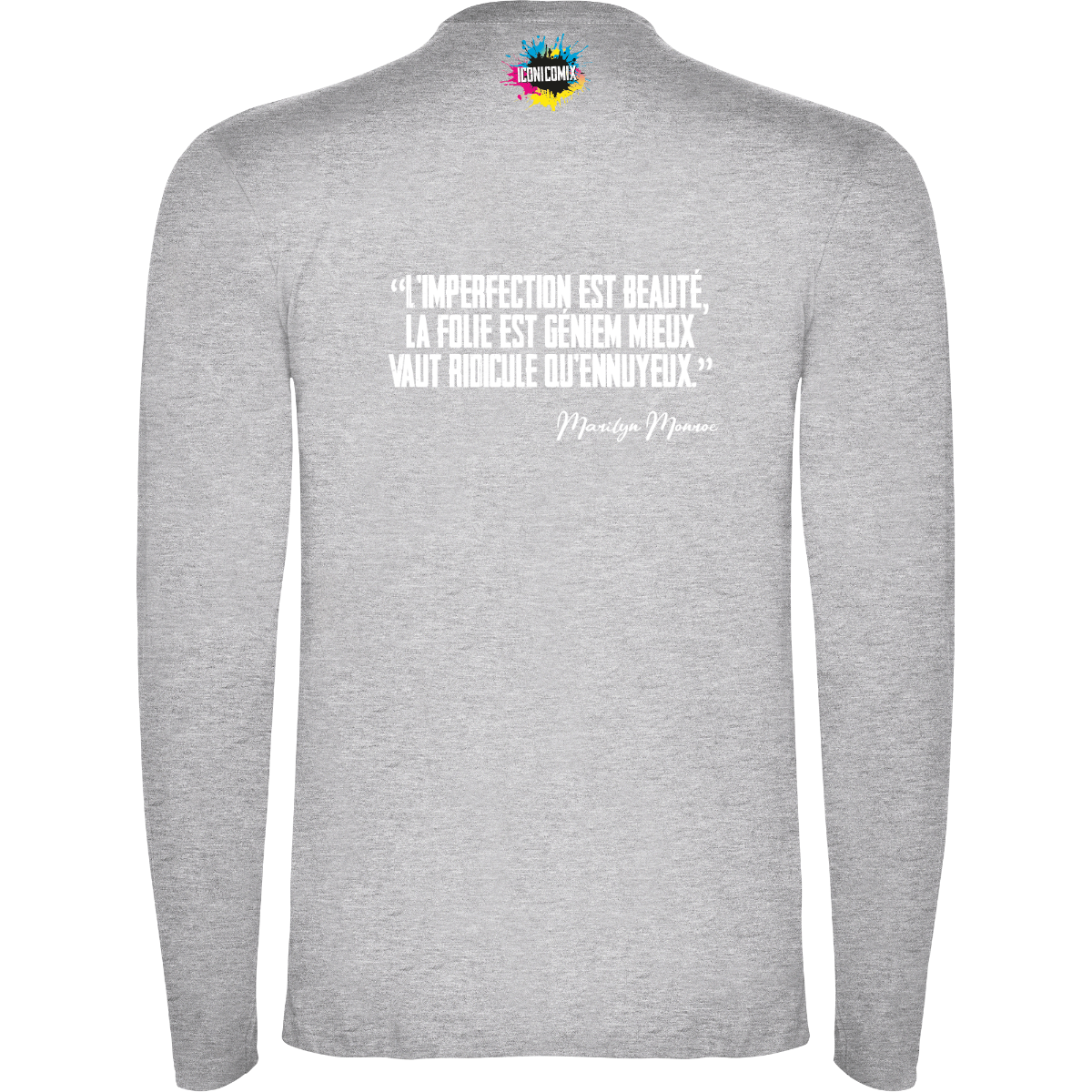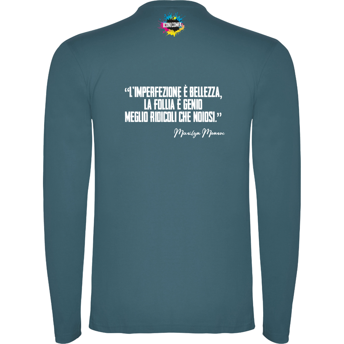 T-shirt manica lunga, tessuto tubolare, girocollo a 4 strati. Copricuciture rinforzate su collo e spalle. Senza