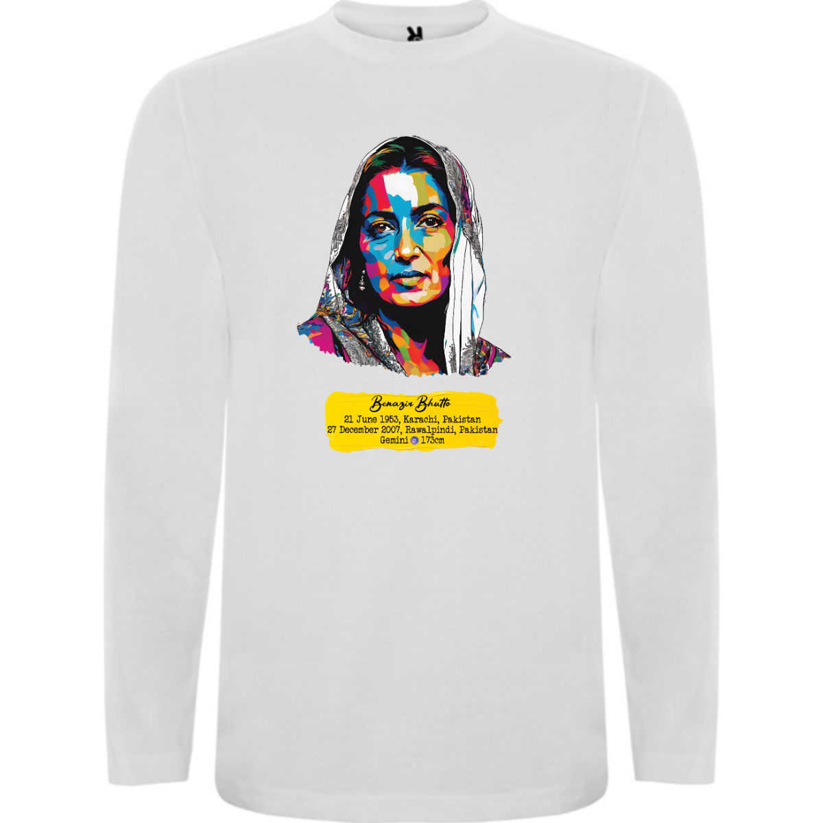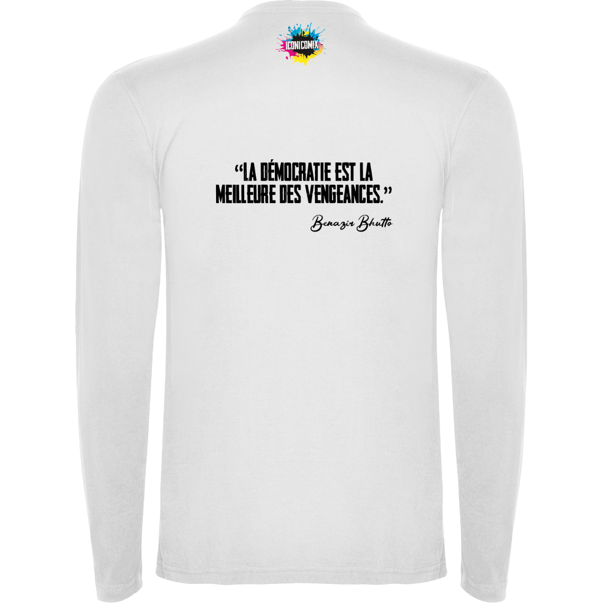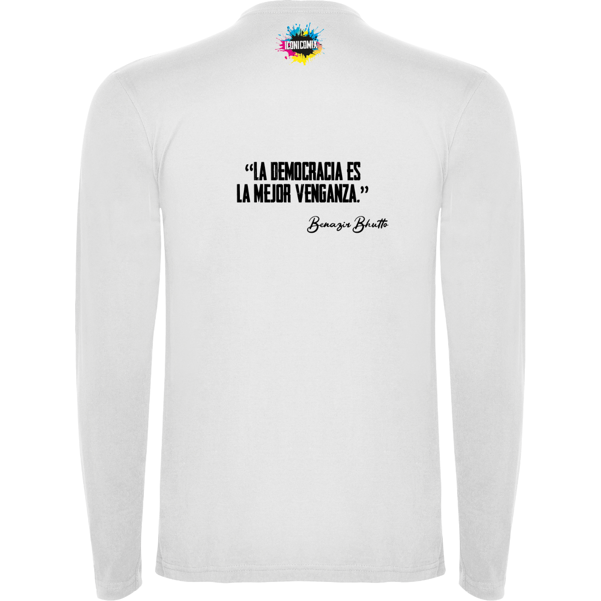 T-shirt manica lunga, tessuto tubolare, girocollo a 4 strati. Copricuciture rinforzate su collo e spalle. Senza