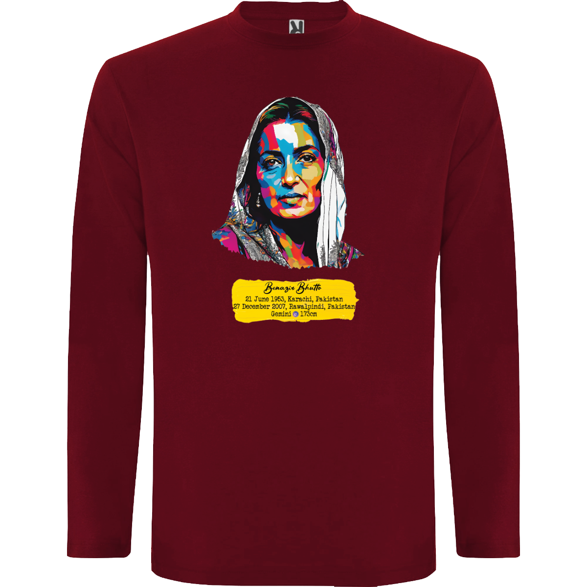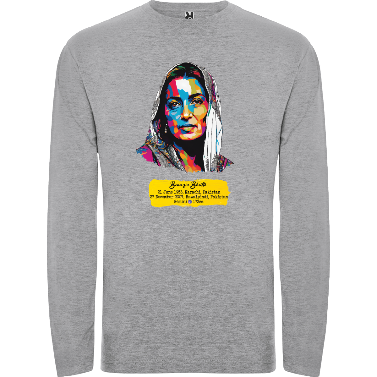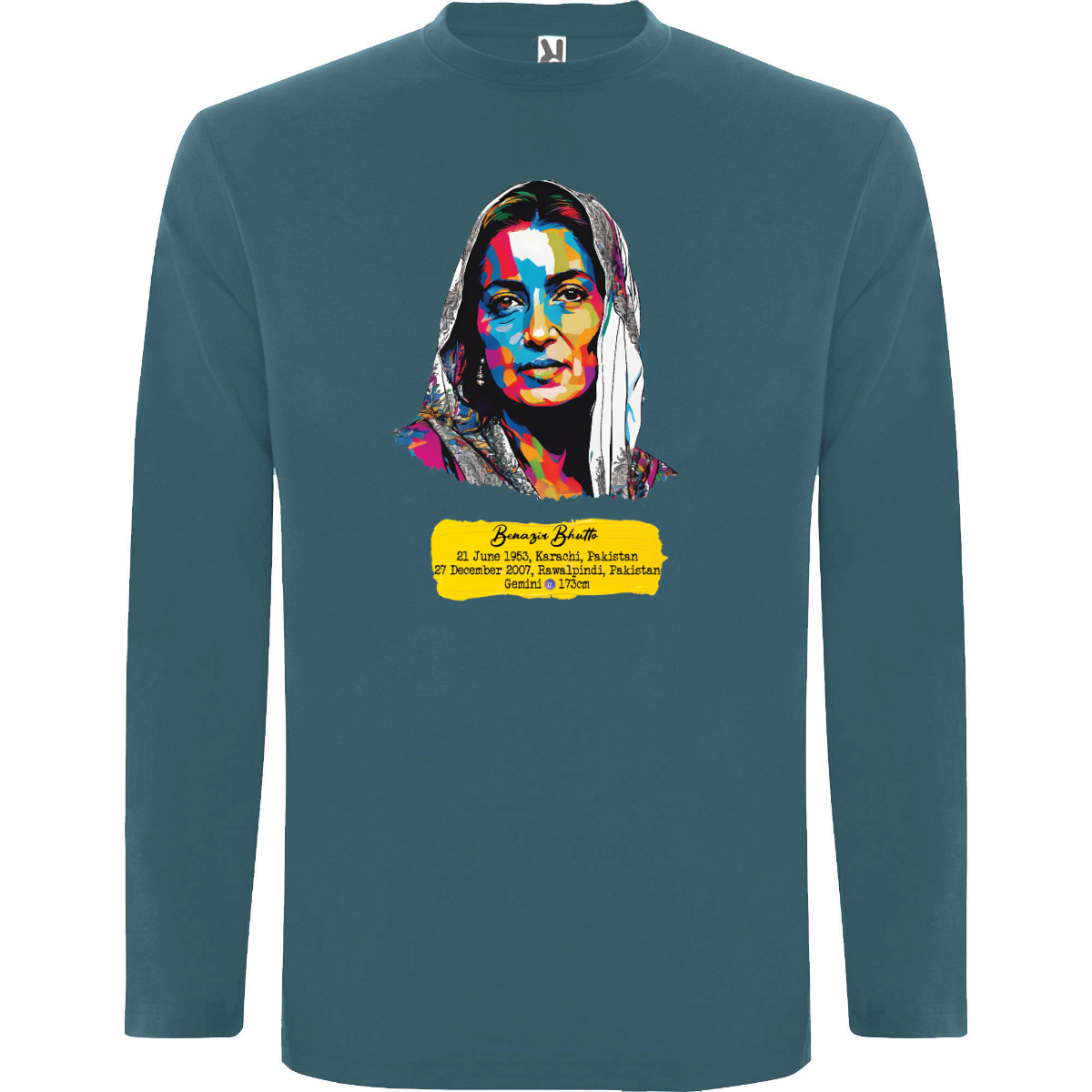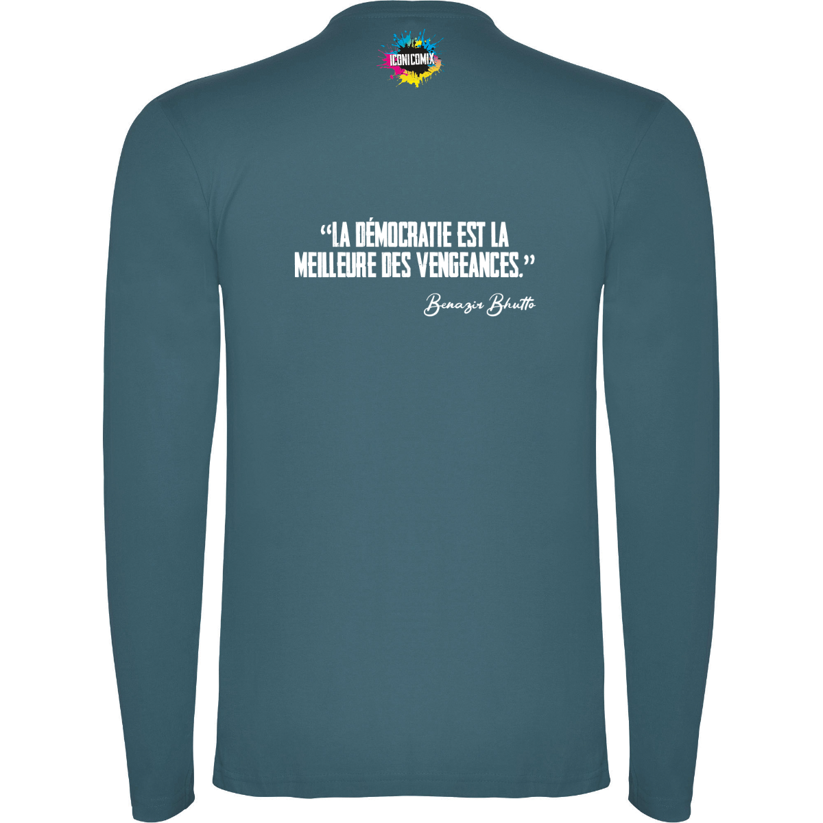 T-shirt manica lunga, tessuto tubolare, girocollo a 4 strati. Copricuciture rinforzate su collo e spalle. Senza