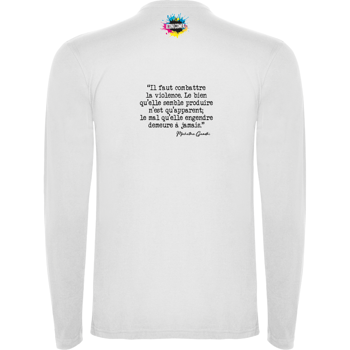 T-shirt manica lunga, tessuto tubolare, girocollo a 4 strati. Copricuciture rinforzate su collo e spalle. Senza