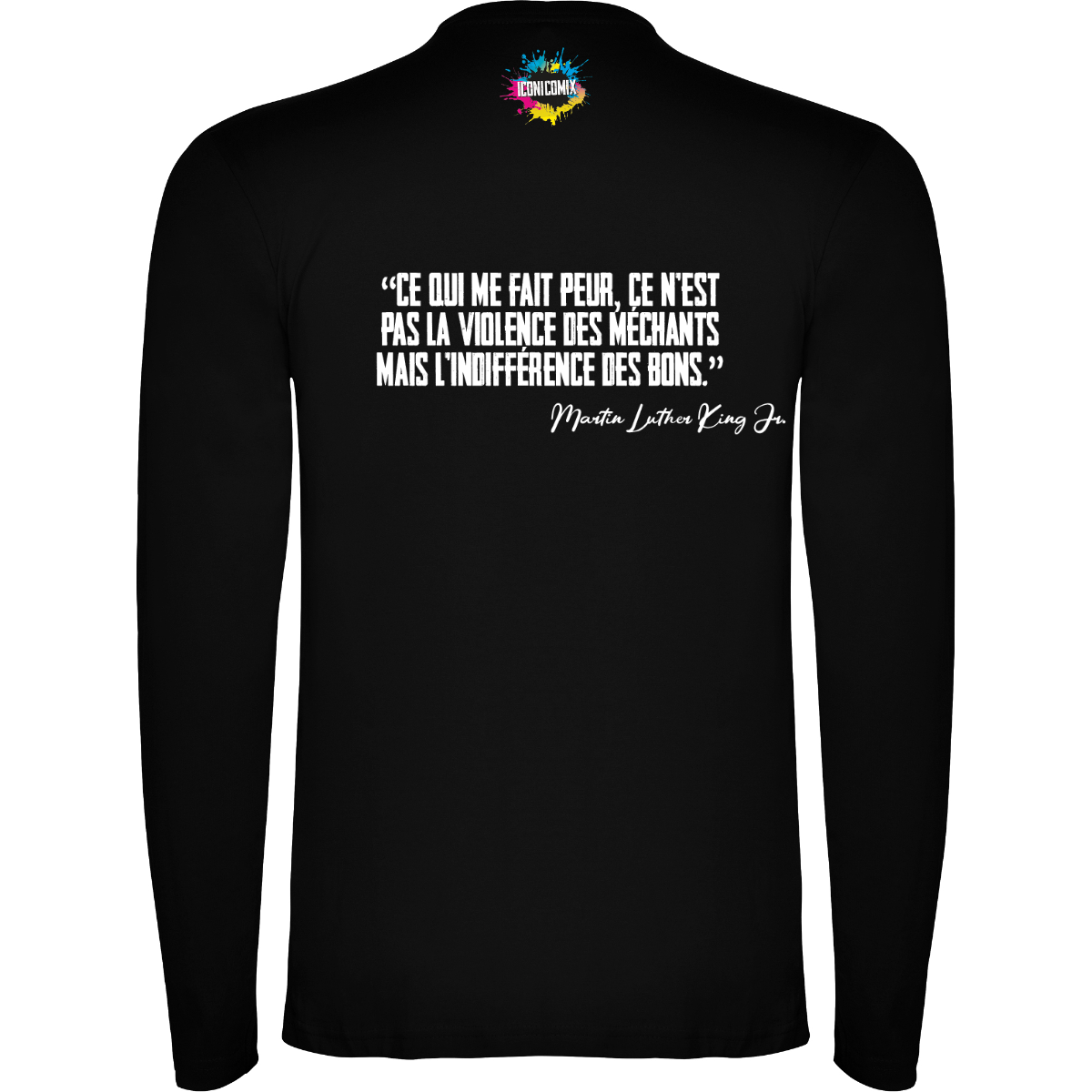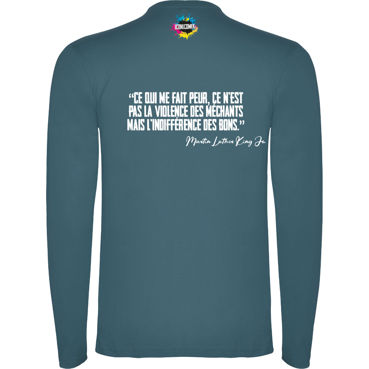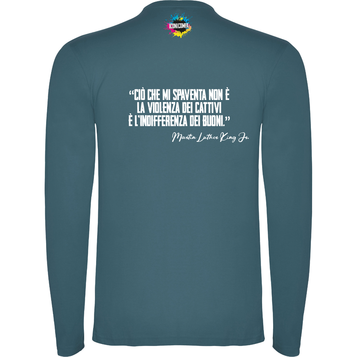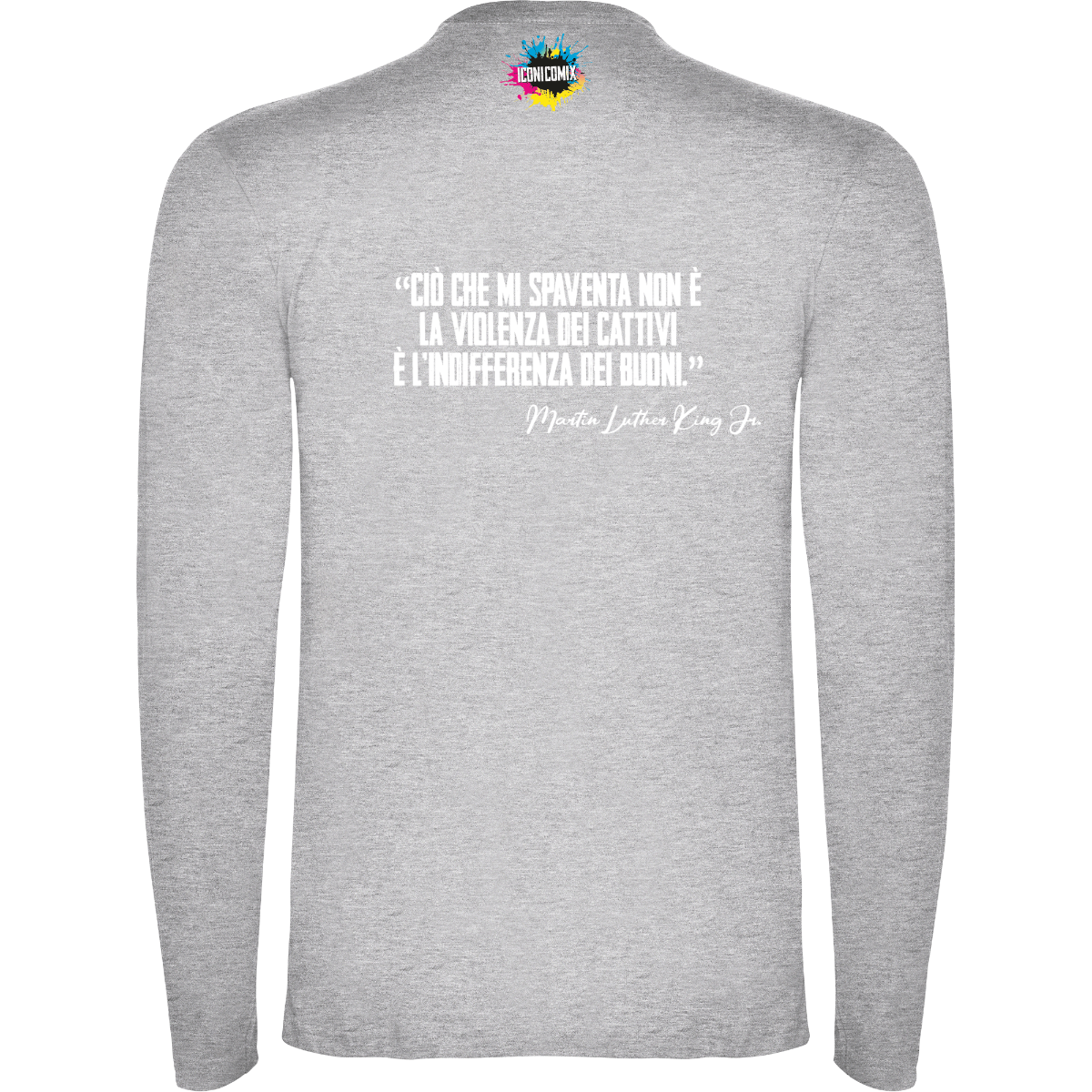 T-shirt manica lunga, tessuto tubolare, girocollo a 4 strati. Copricuciture rinforzate su collo e spalle. Senza