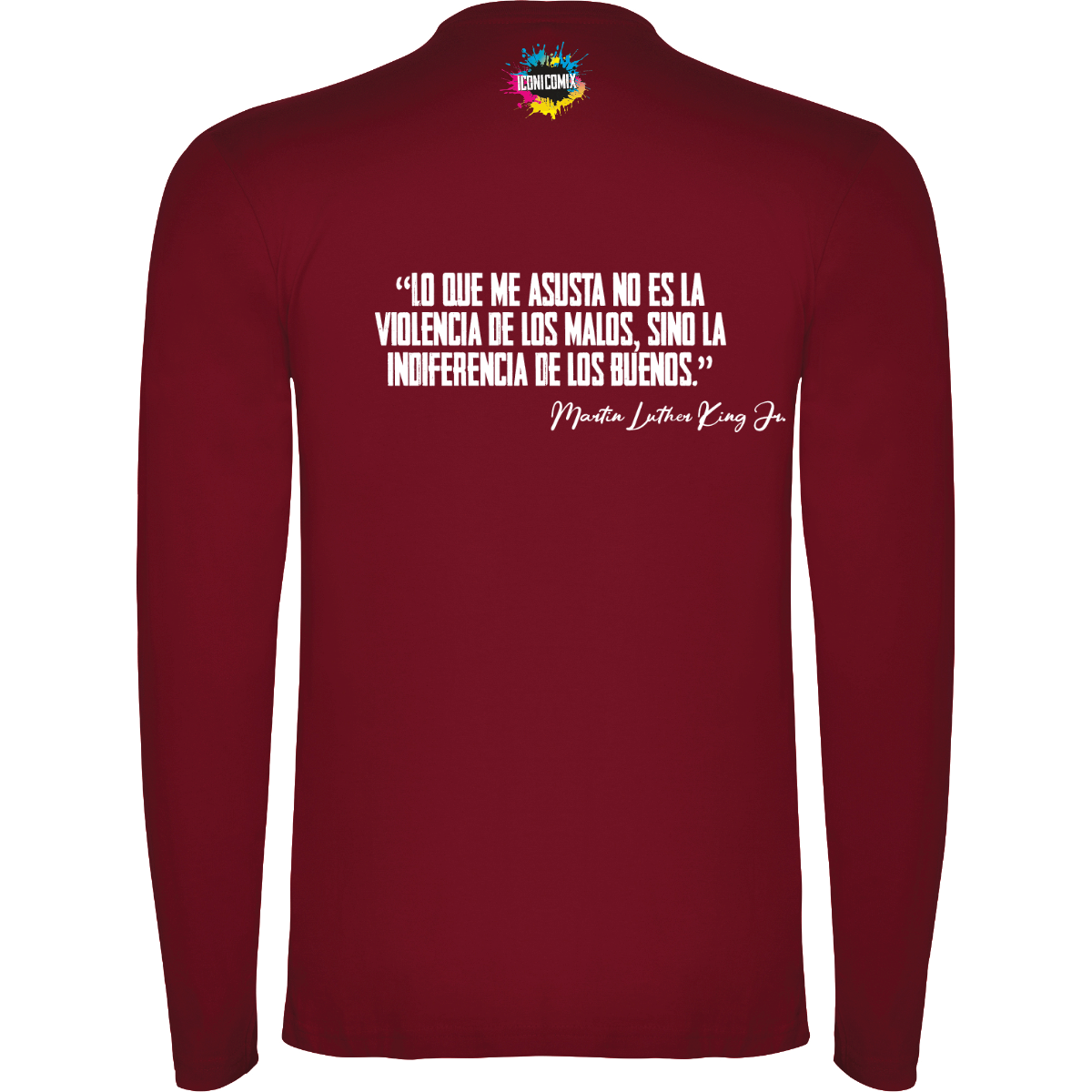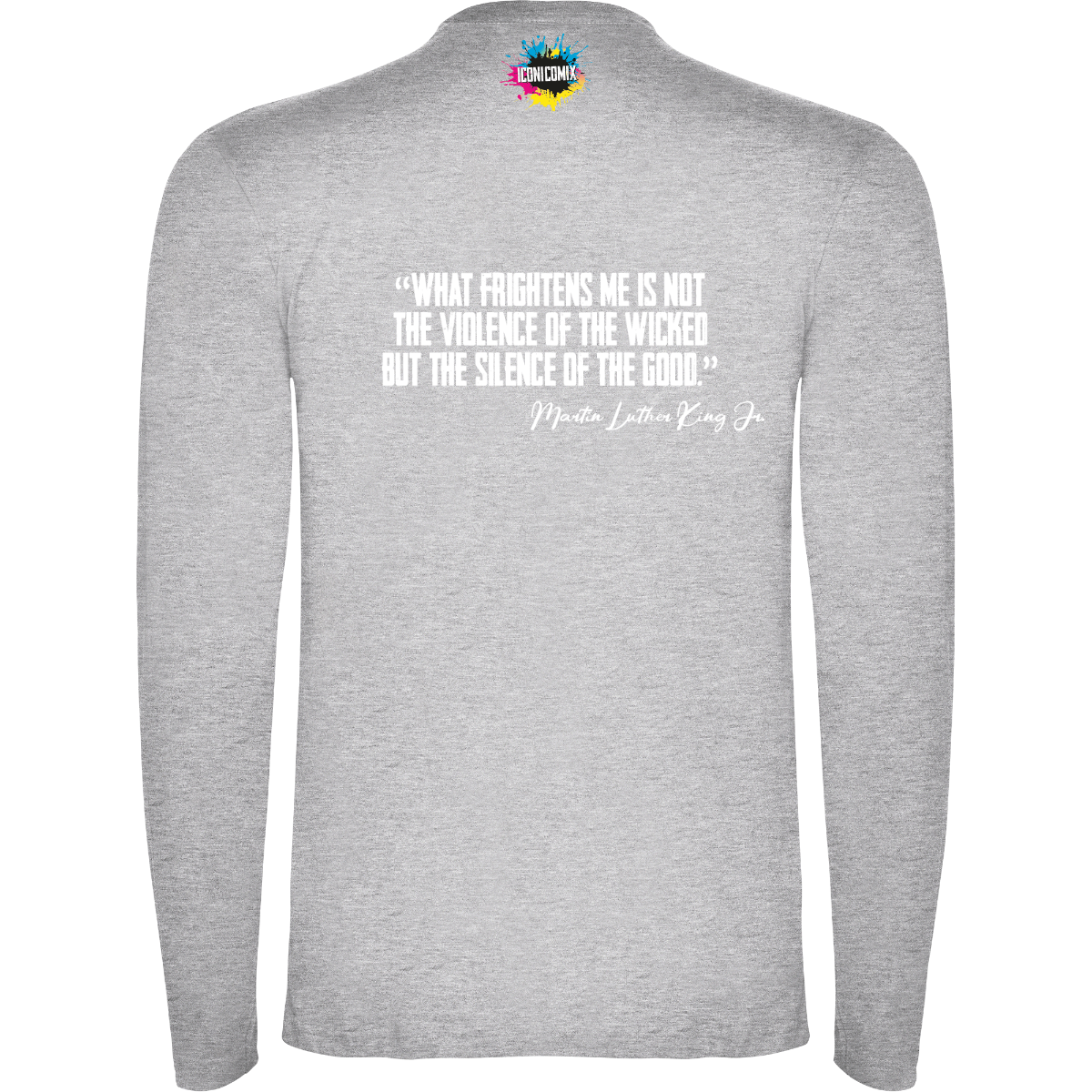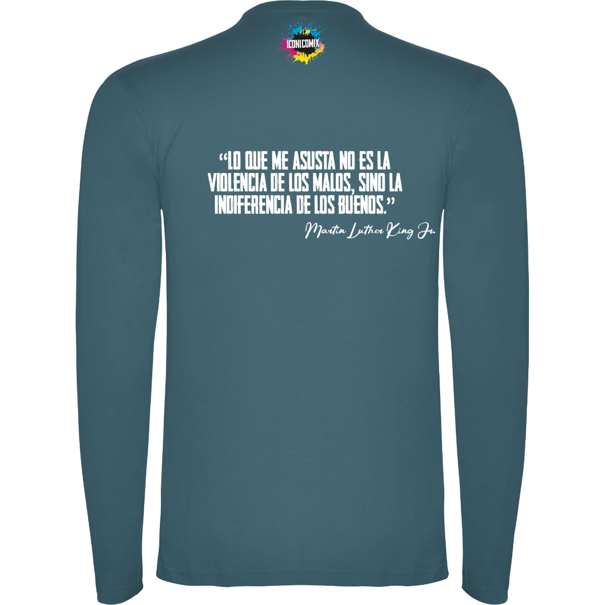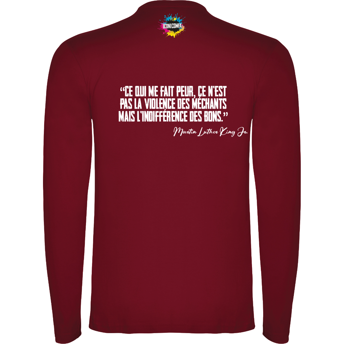 T-shirt manica lunga, tessuto tubolare, girocollo a 4 strati. Copricuciture rinforzate su collo e spalle. Senza