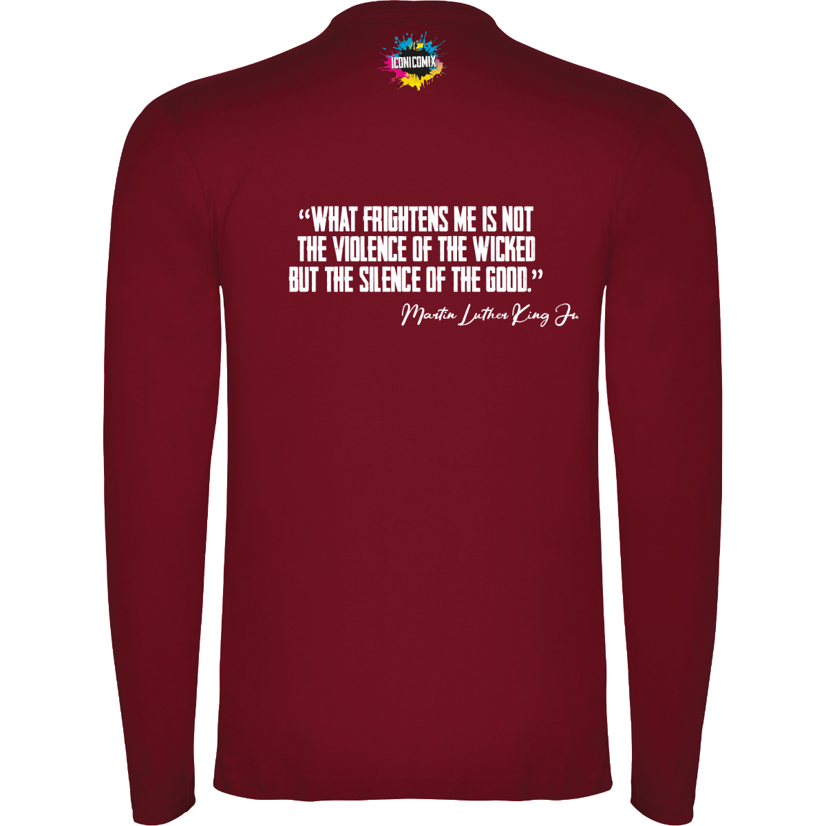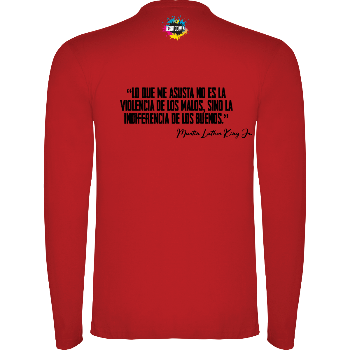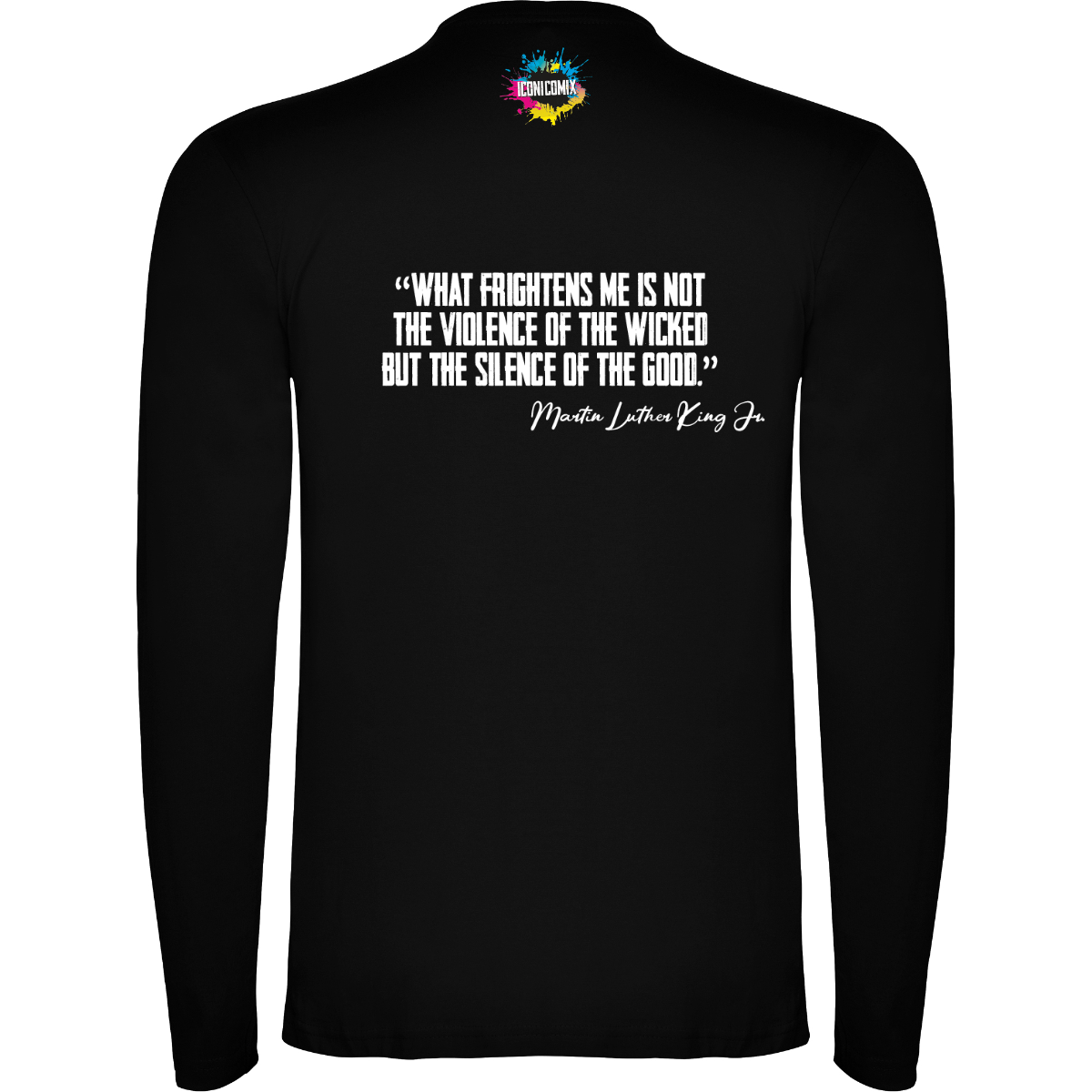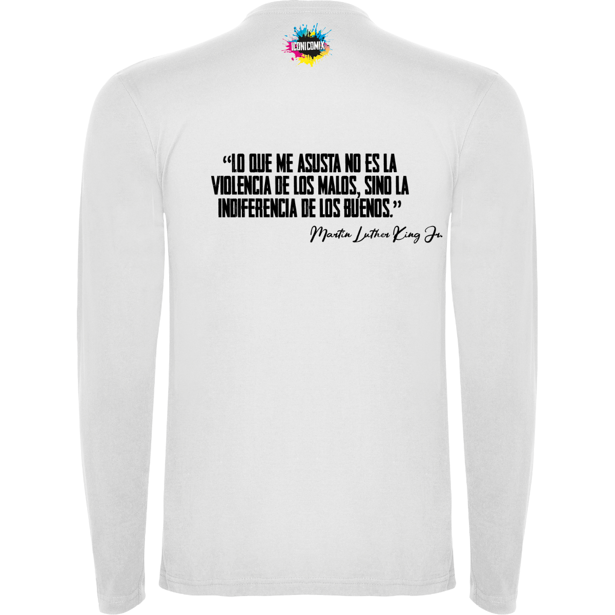 T-shirt manica lunga, tessuto tubolare, girocollo a 4 strati. Copricuciture rinforzate su collo e spalle. Senza