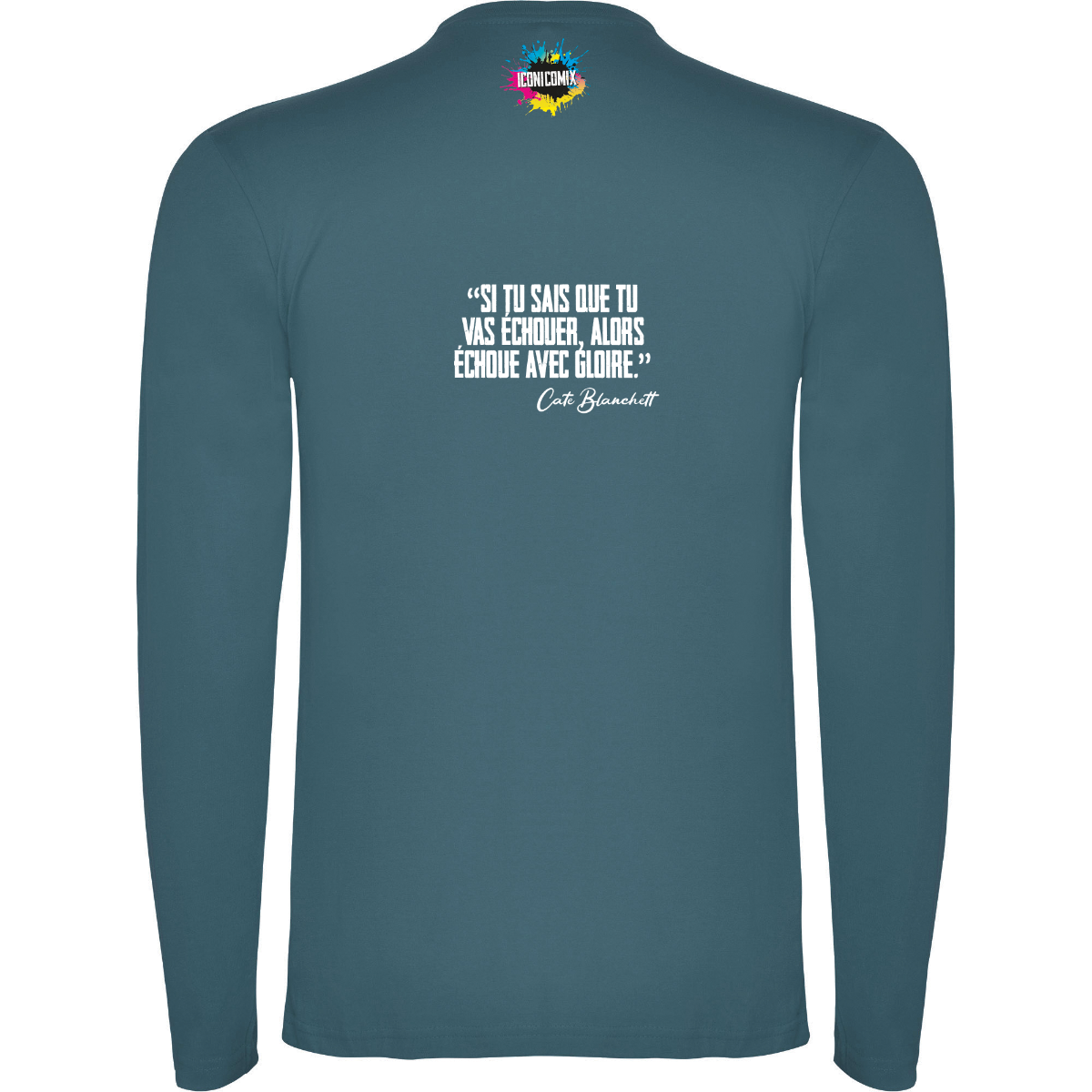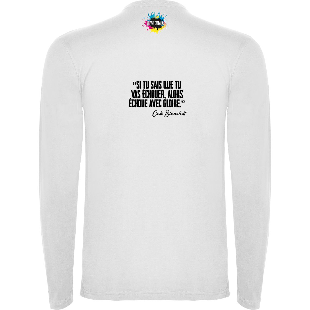 T-shirt manica lunga, tessuto tubolare, girocollo a 4 strati. Copricuciture rinforzate su collo e spalle. Senza
