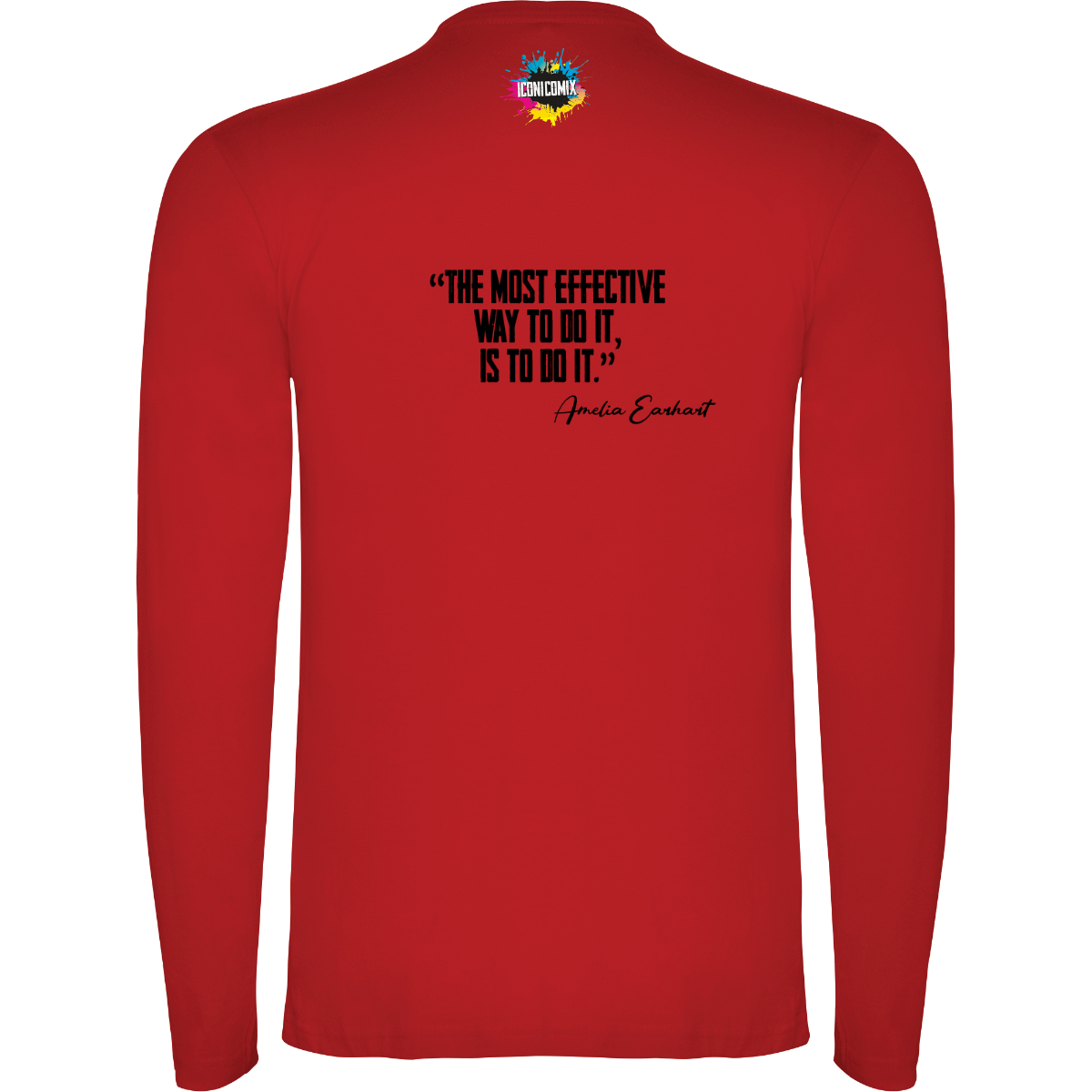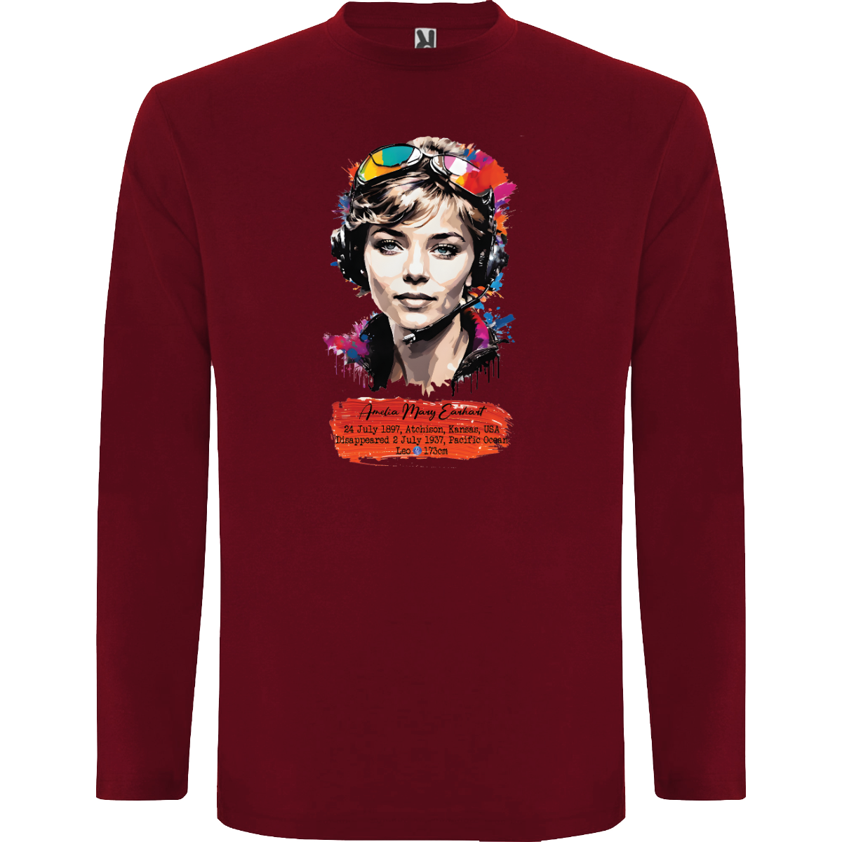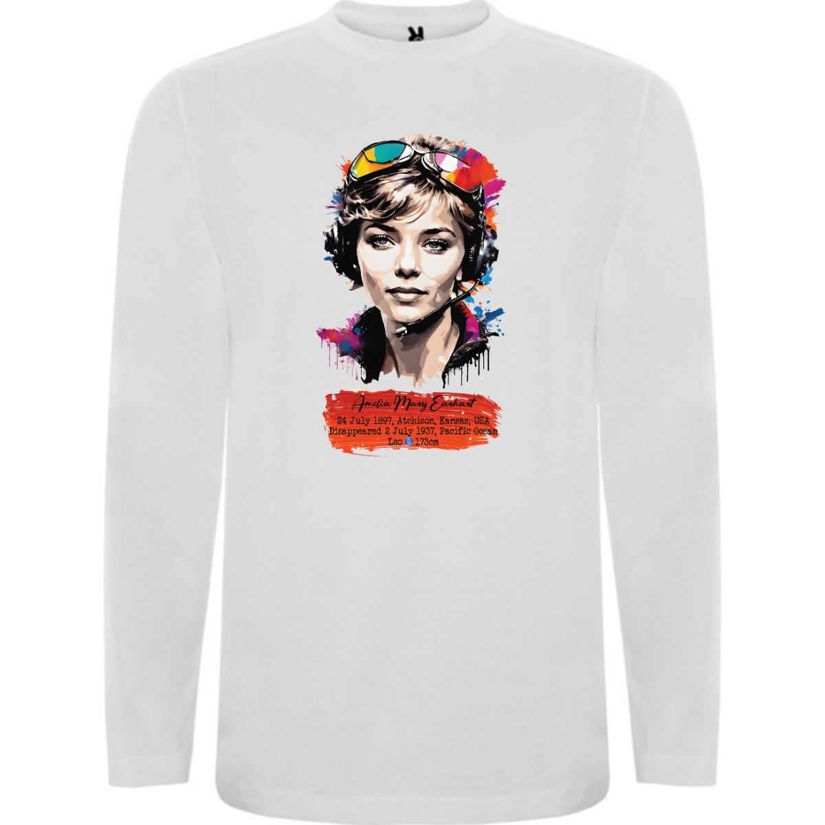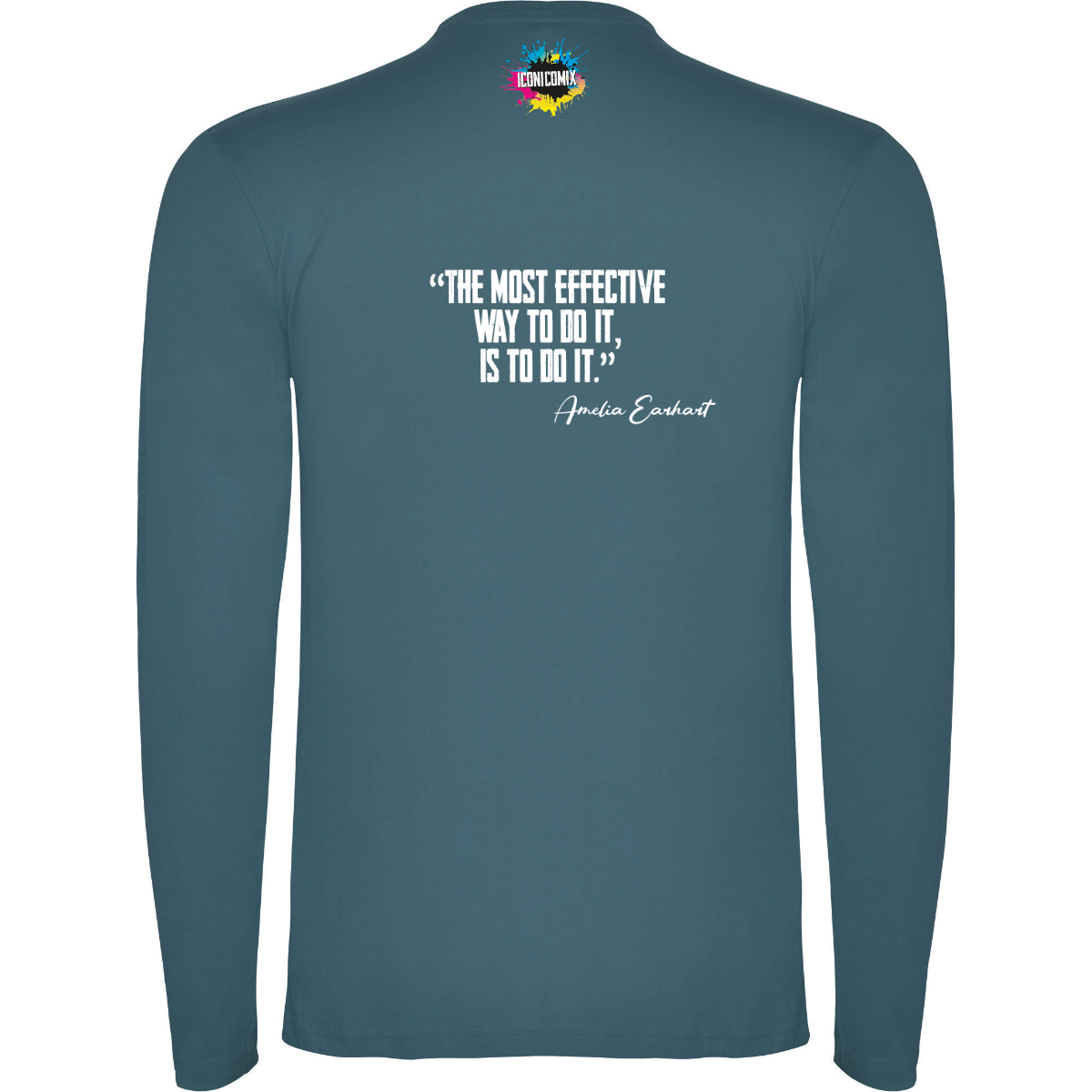 T-shirt manica lunga, tessuto tubolare, girocollo a 4 strati. Copricuciture rinforzate su collo e spalle. Senza