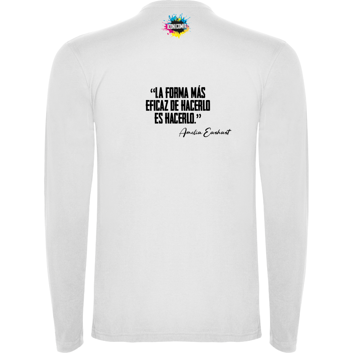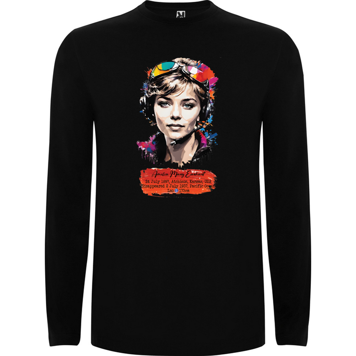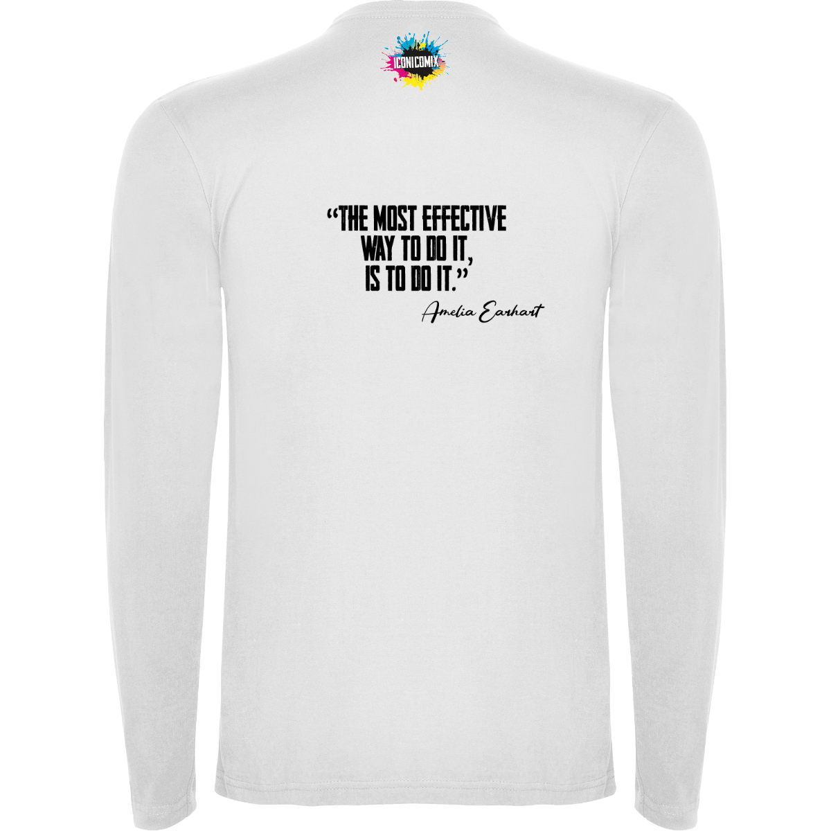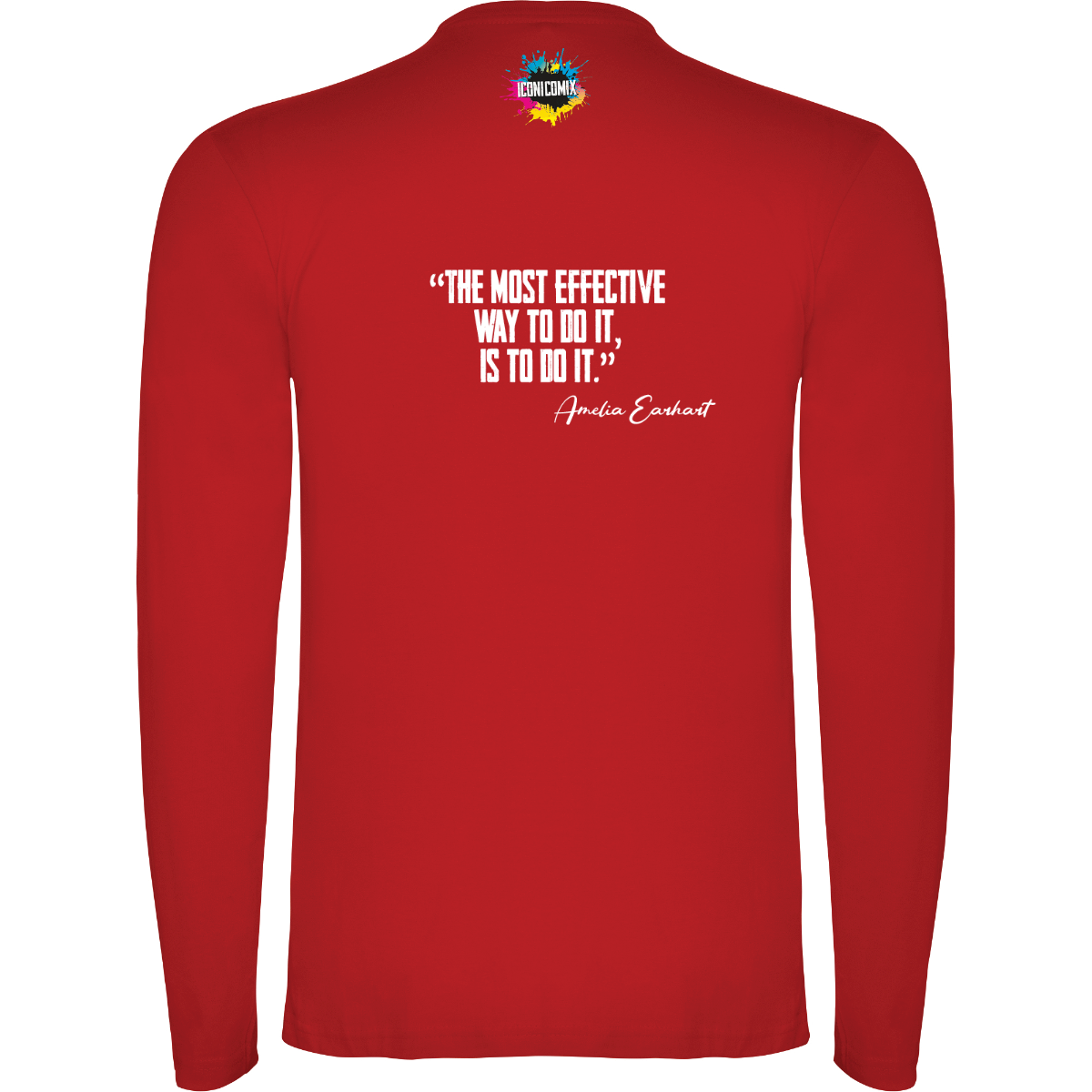 T-shirt manica lunga, tessuto tubolare, girocollo a 4 strati. Copricuciture rinforzate su collo e spalle. Senza
