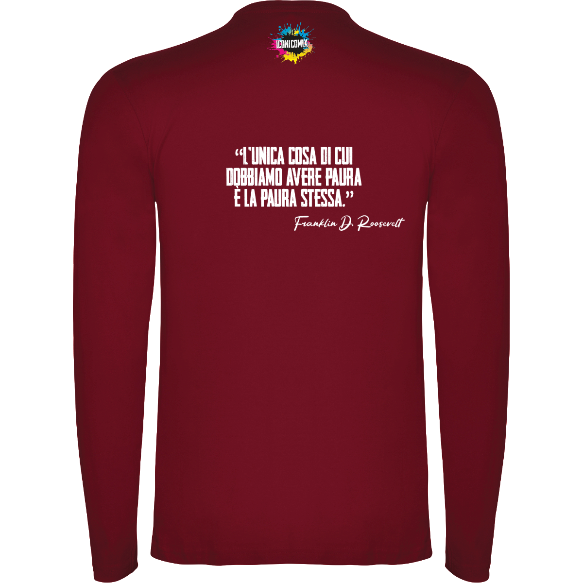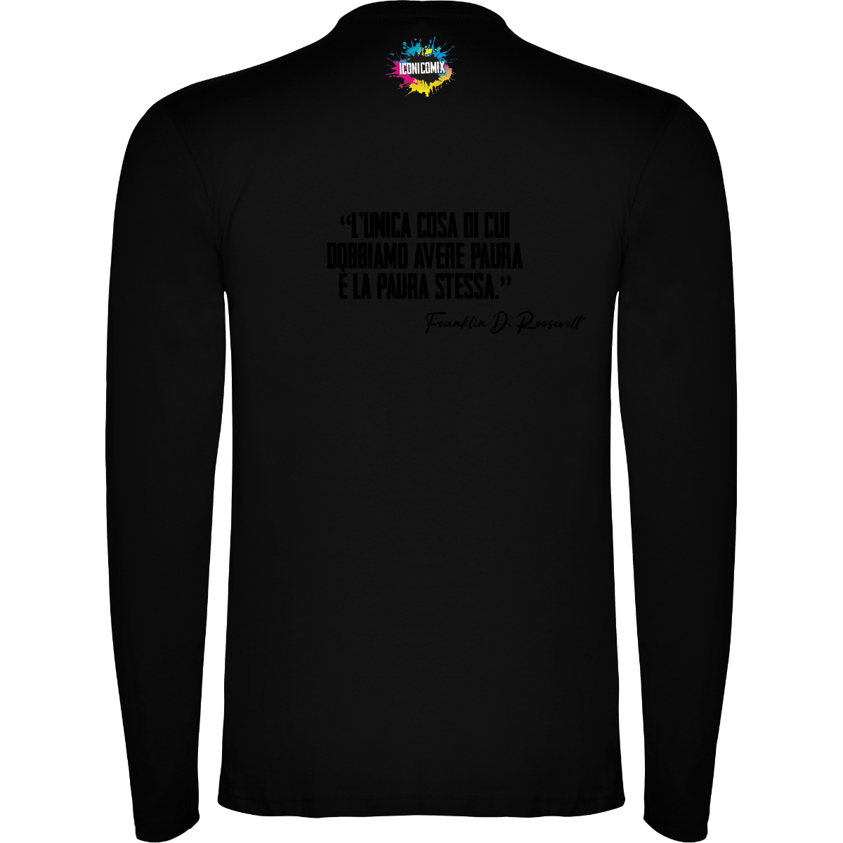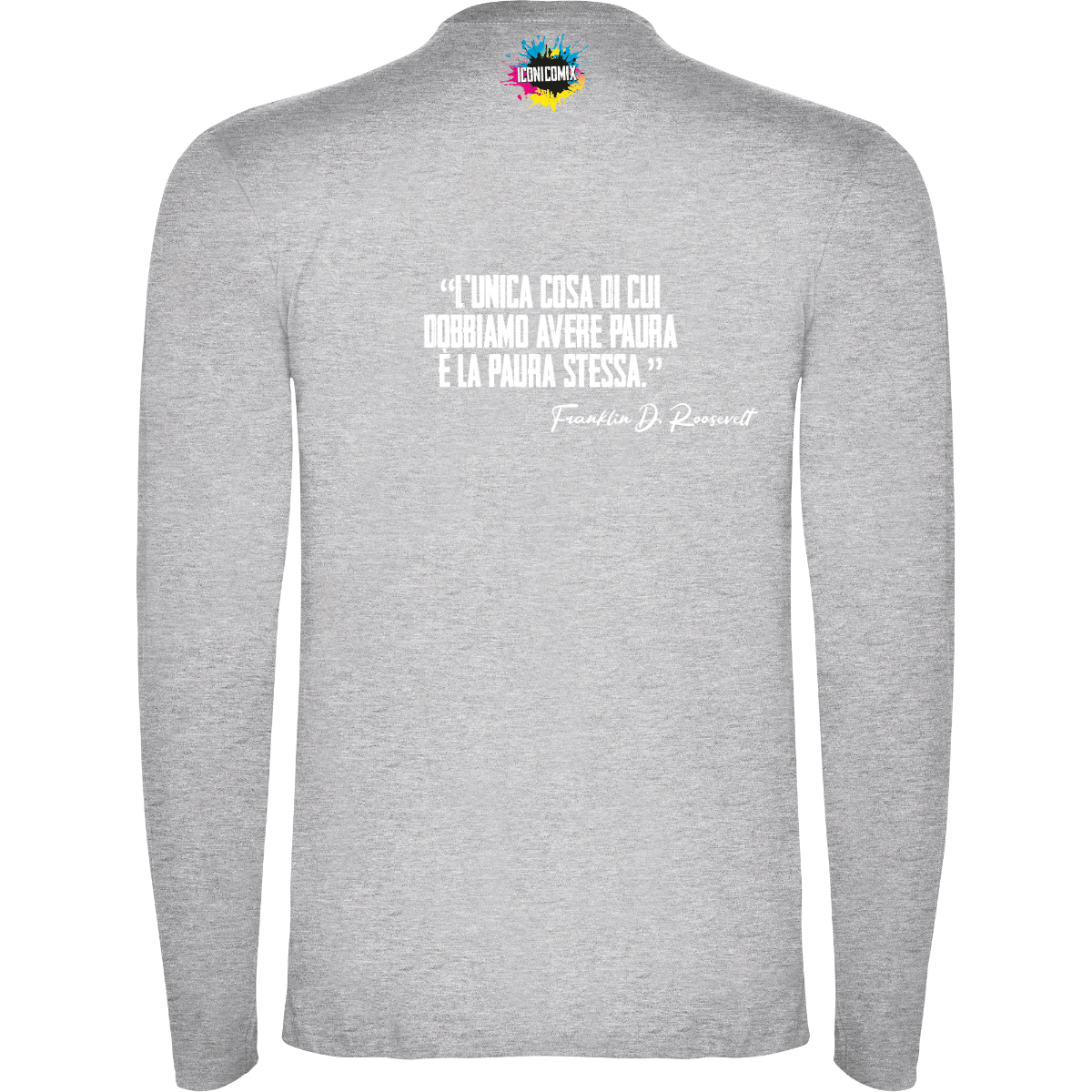 T-shirt manica lunga, tessuto tubolare, girocollo a 4 strati. Copricuciture rinforzate su collo e spalle. Senza