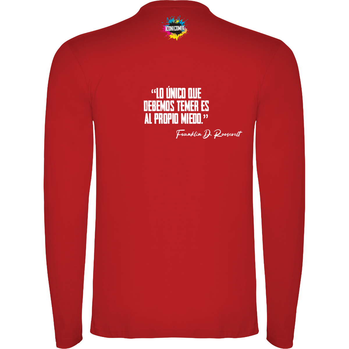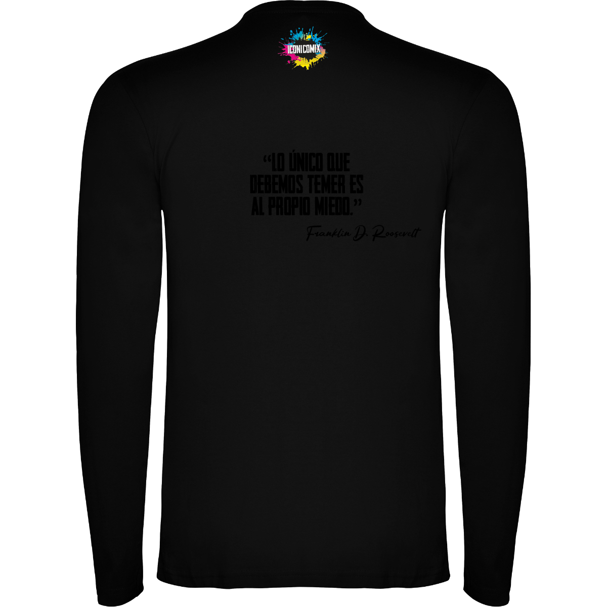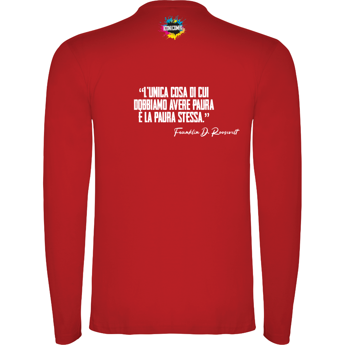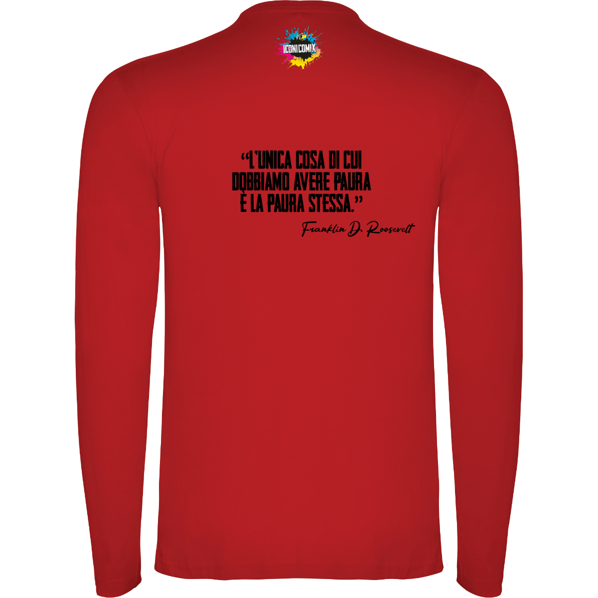 T-shirt manica lunga, tessuto tubolare, girocollo a 4 strati. Copricuciture rinforzate su collo e spalle. Senza
