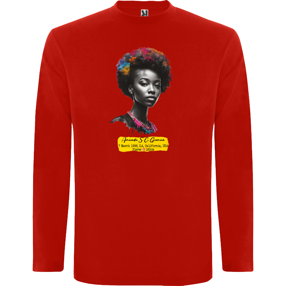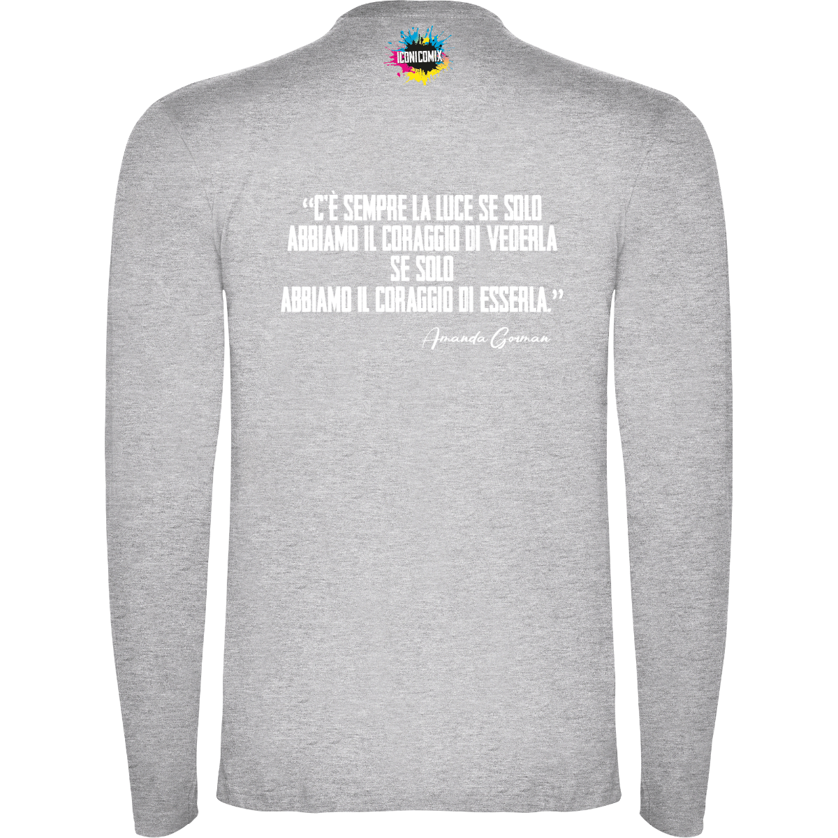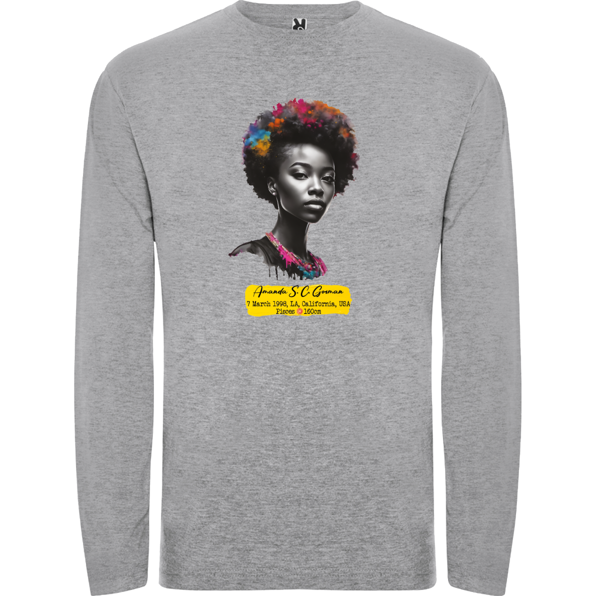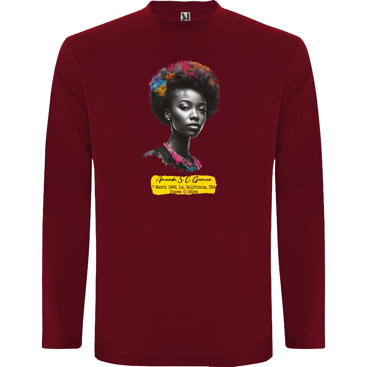 T-shirt manica lunga, tessuto tubolare, girocollo a 4 strati. Copricuciture rinforzate su collo e spalle. Senza