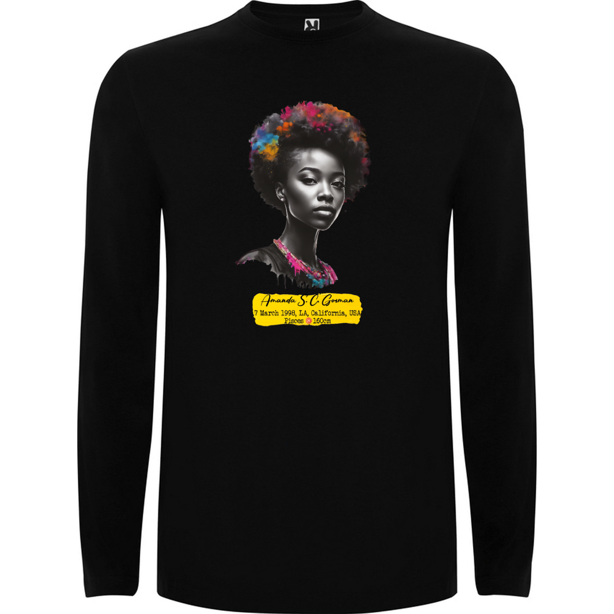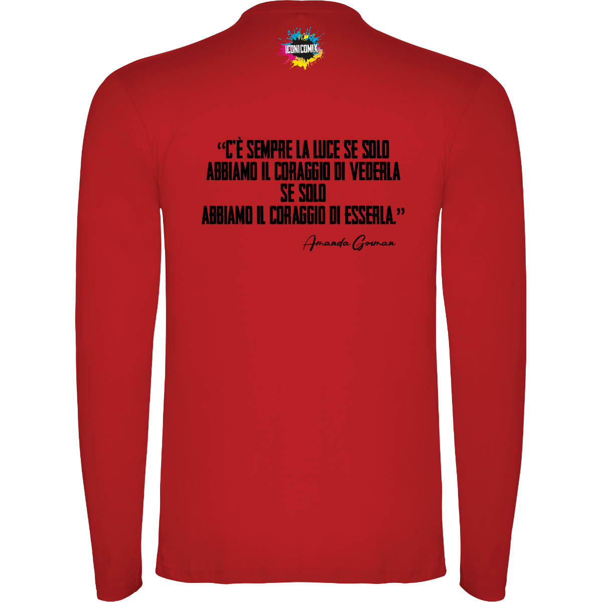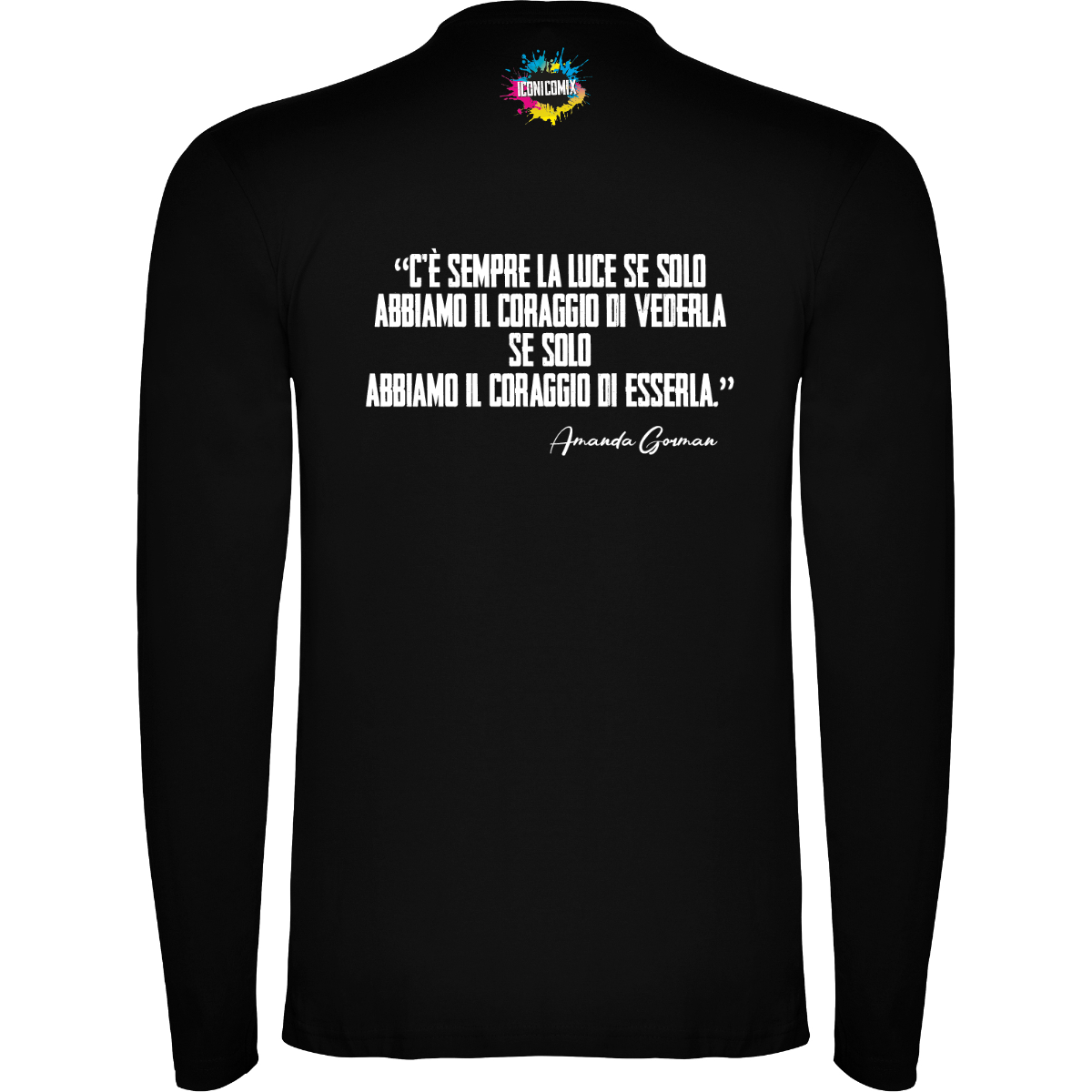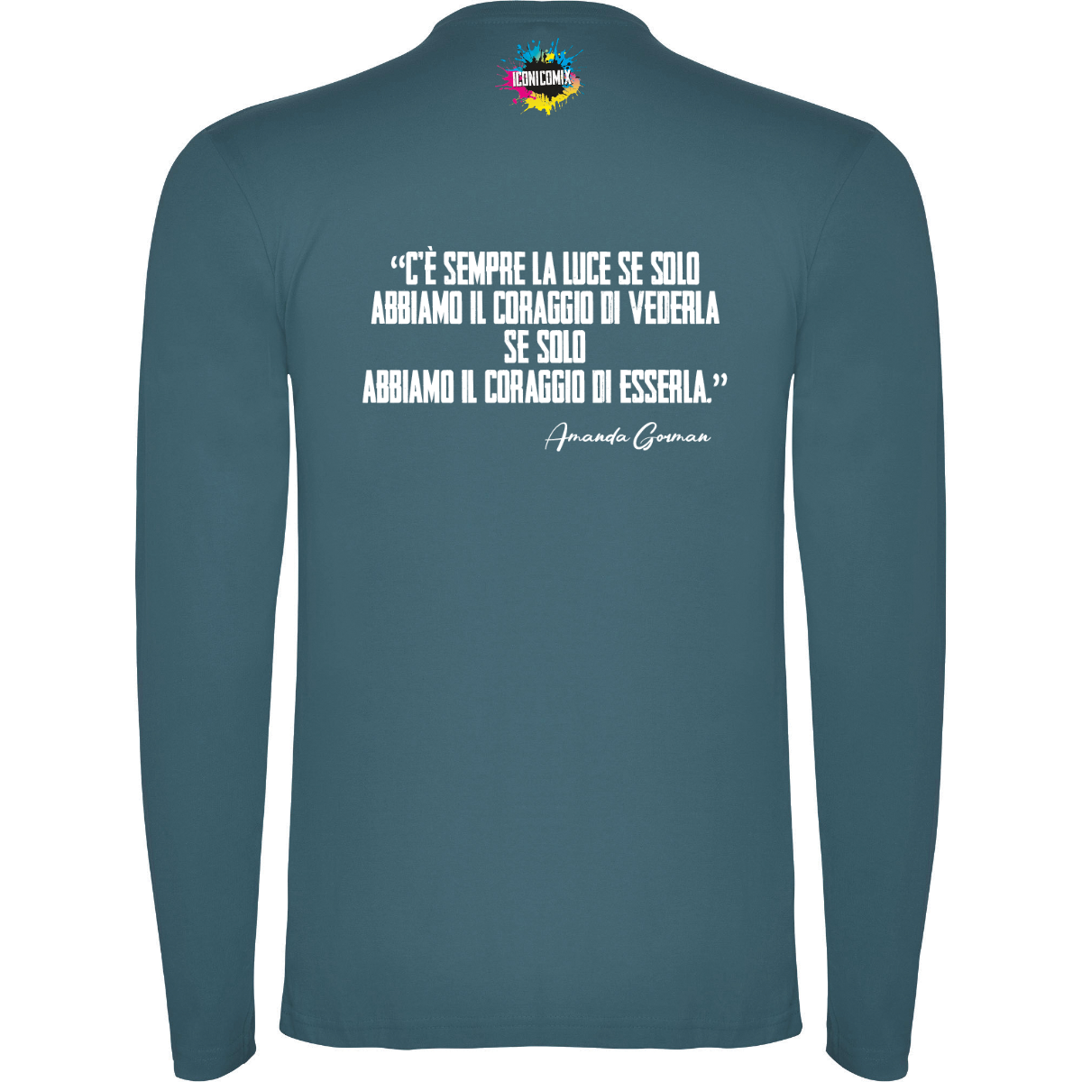 T-shirt manica lunga, tessuto tubolare, girocollo a 4 strati. Copricuciture rinforzate su collo e spalle. Senza