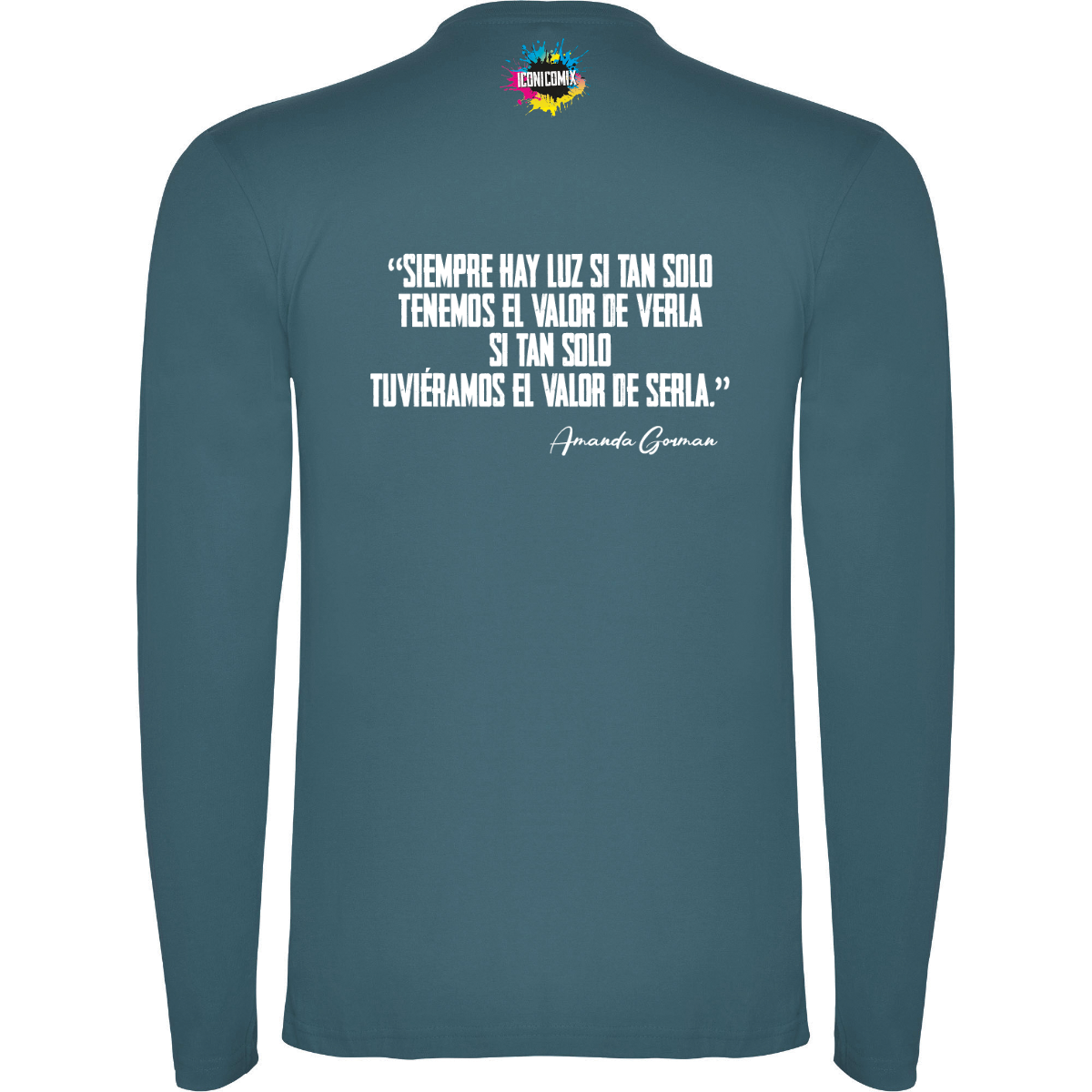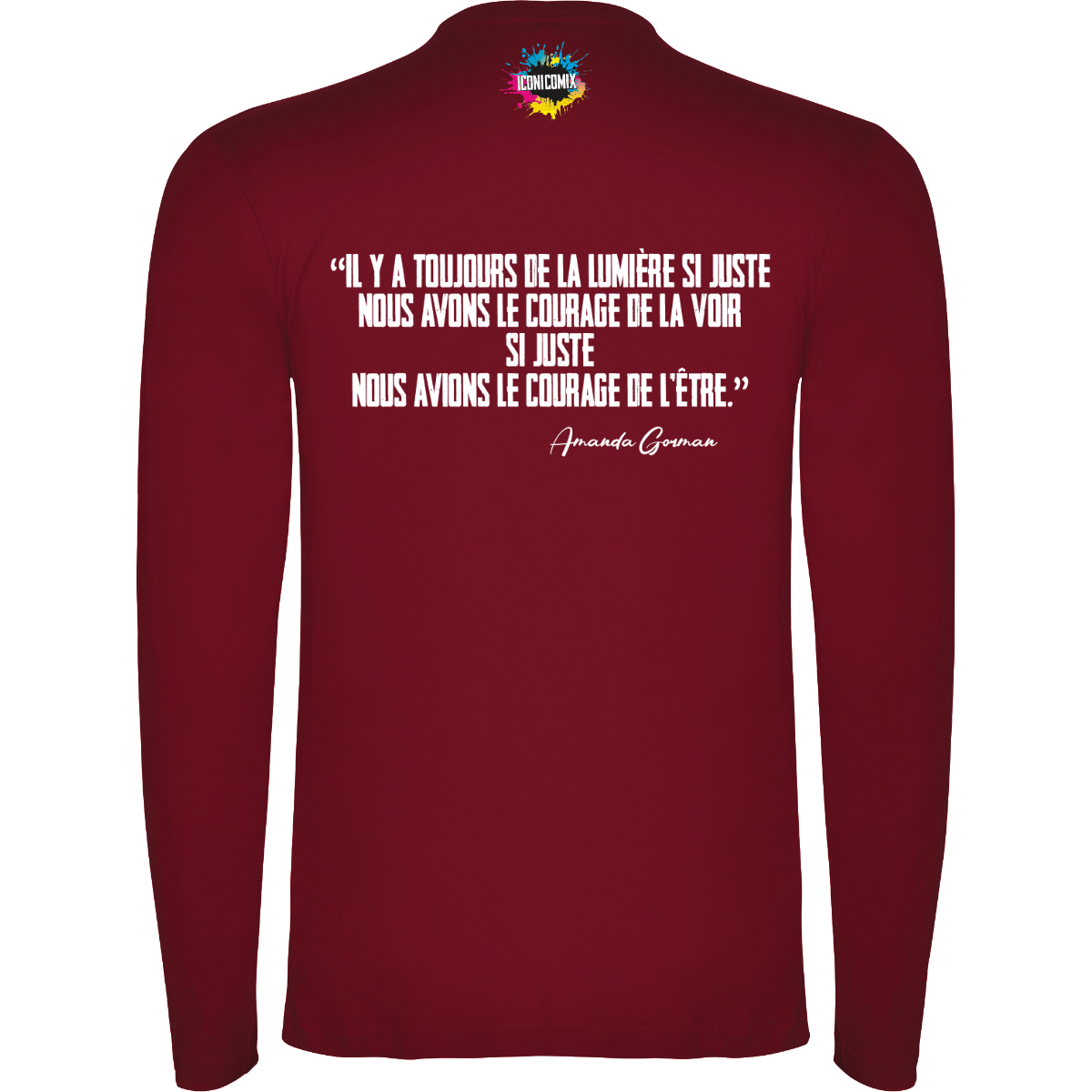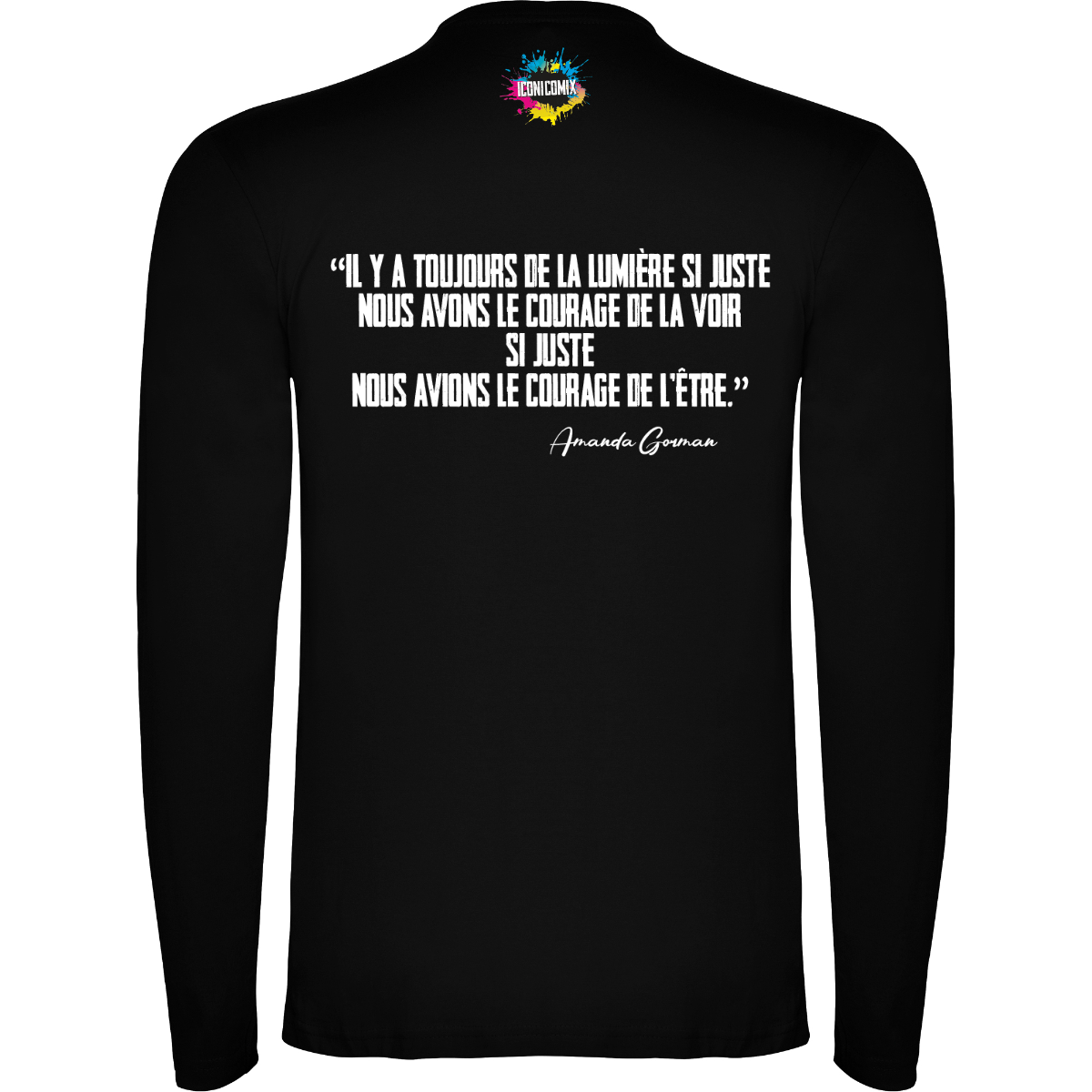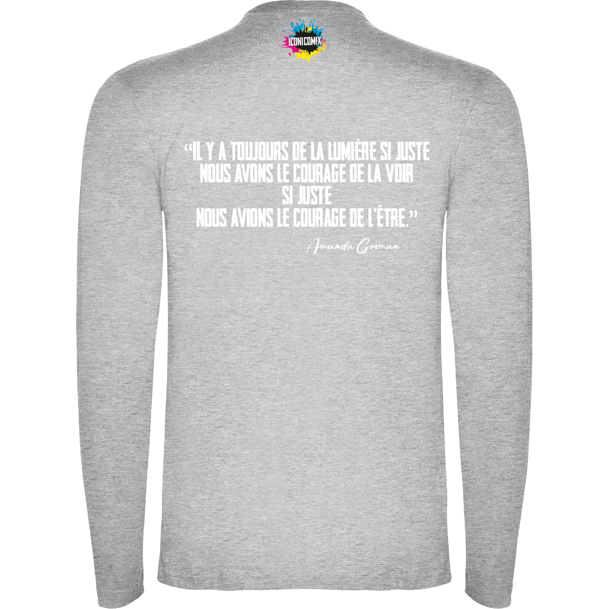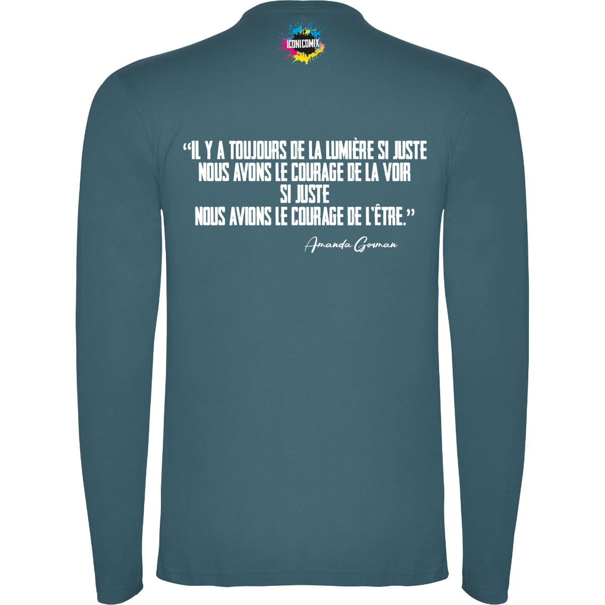 T-shirt manica lunga, tessuto tubolare, girocollo a 4 strati. Copricuciture rinforzate su collo e spalle. Senza
