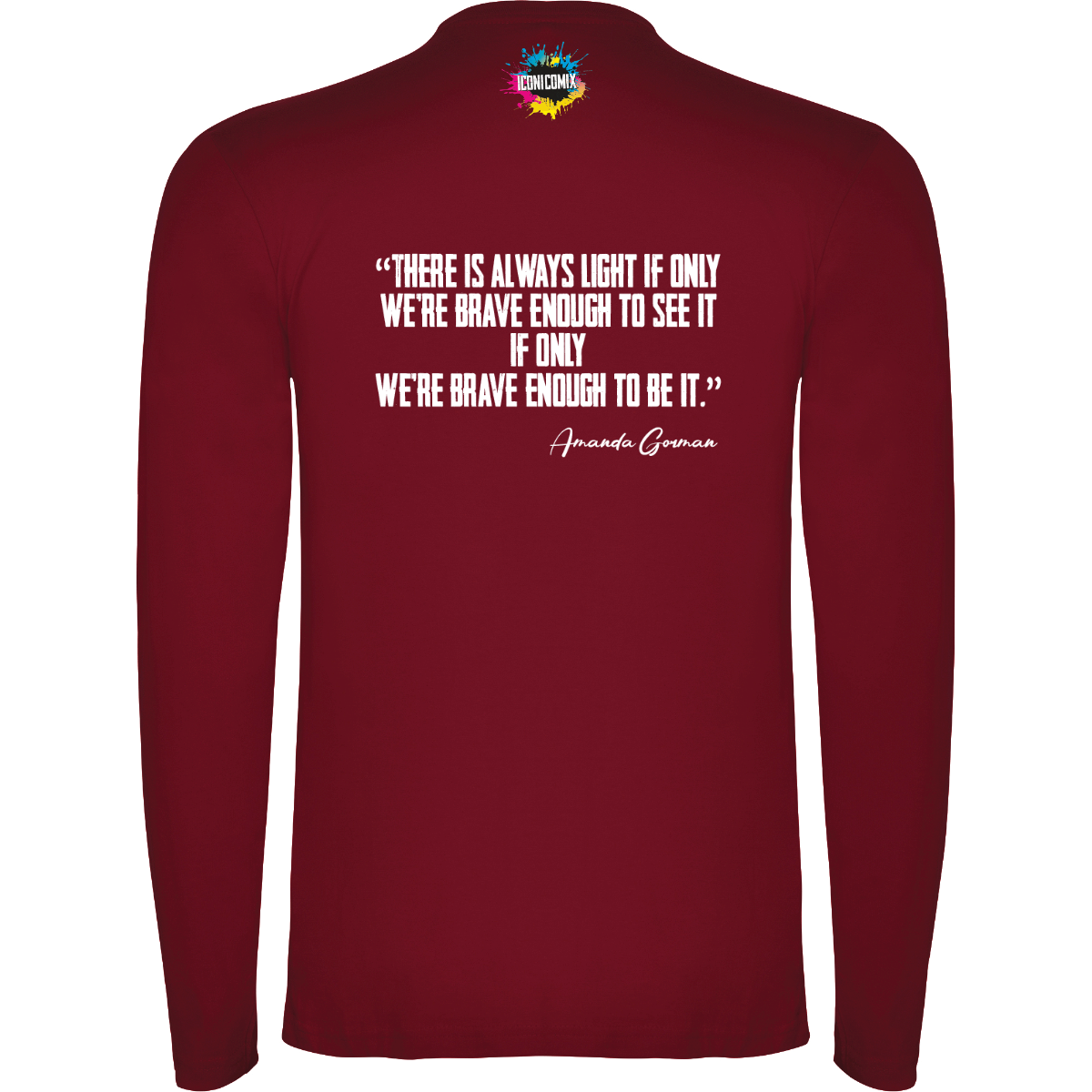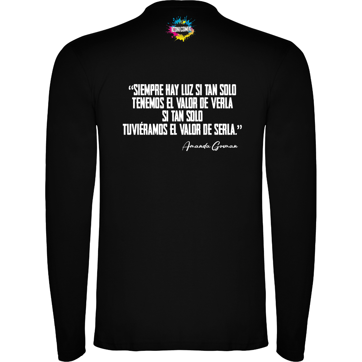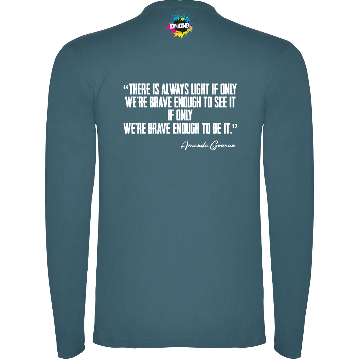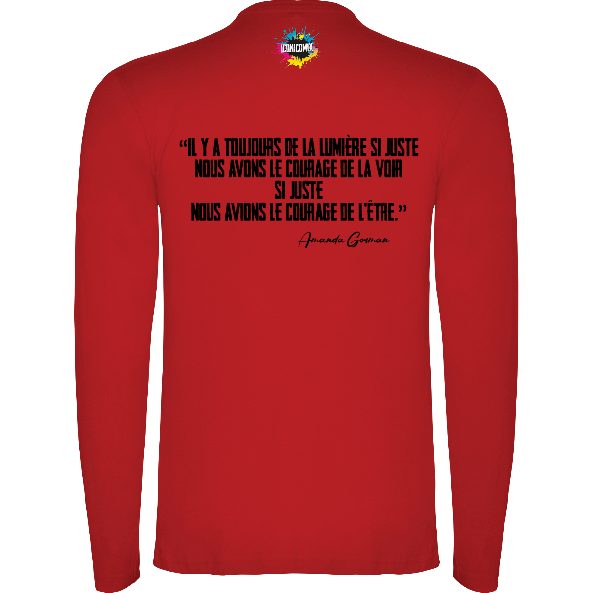 T-shirt manica lunga, tessuto tubolare, girocollo a 4 strati. Copricuciture rinforzate su collo e spalle. Senza
