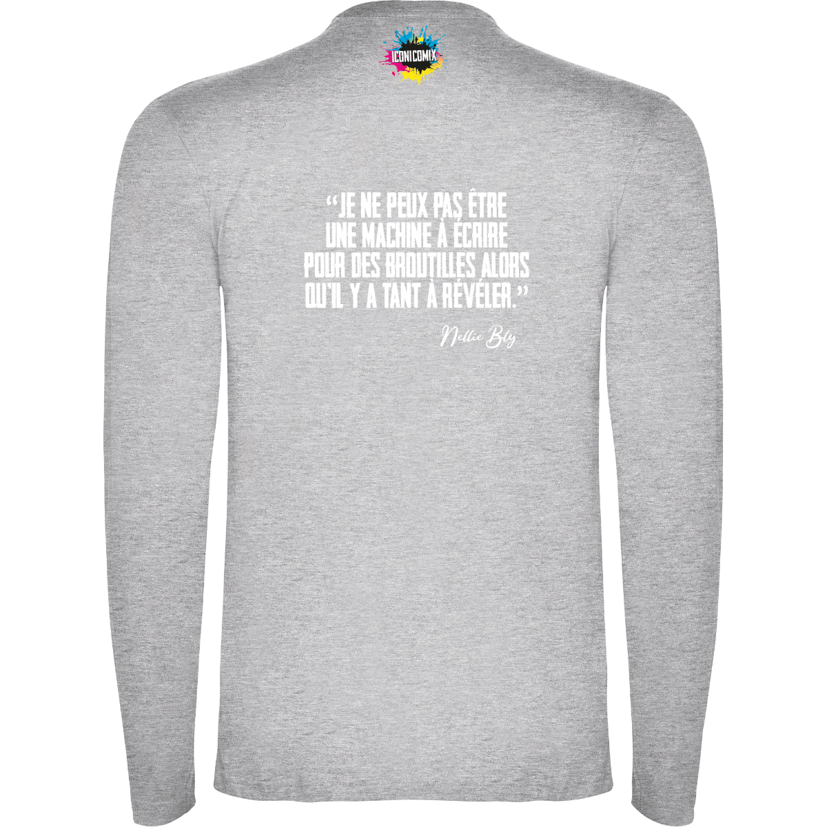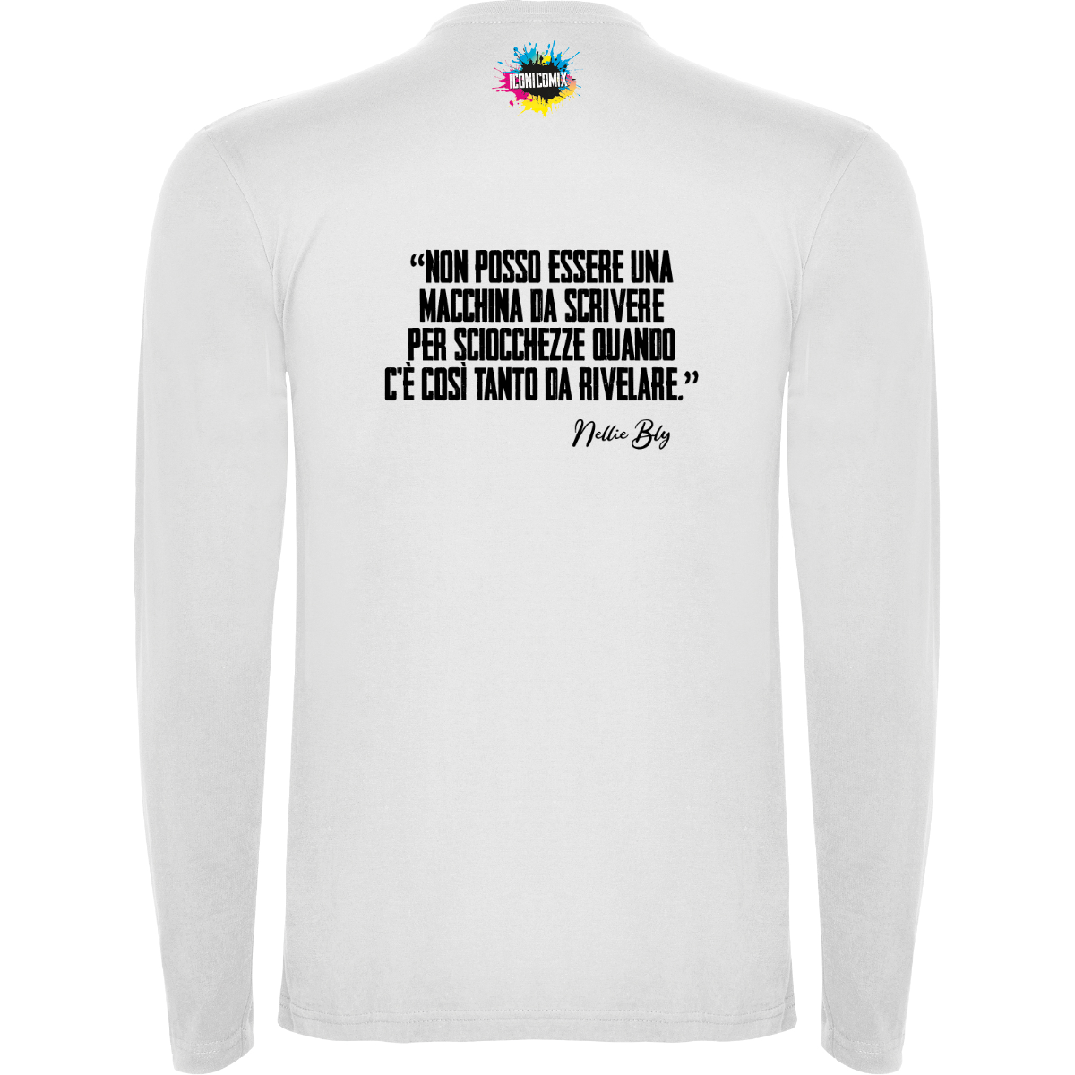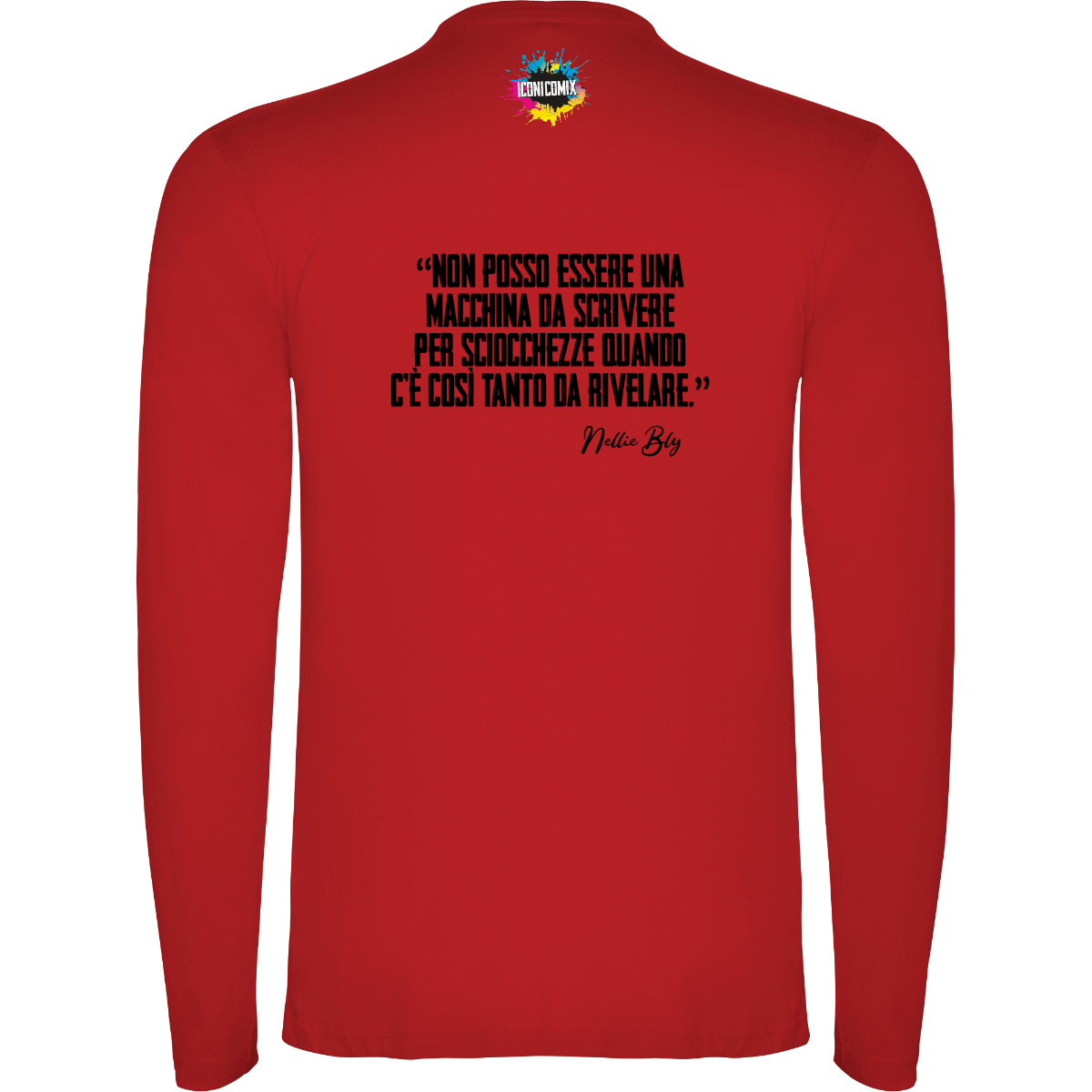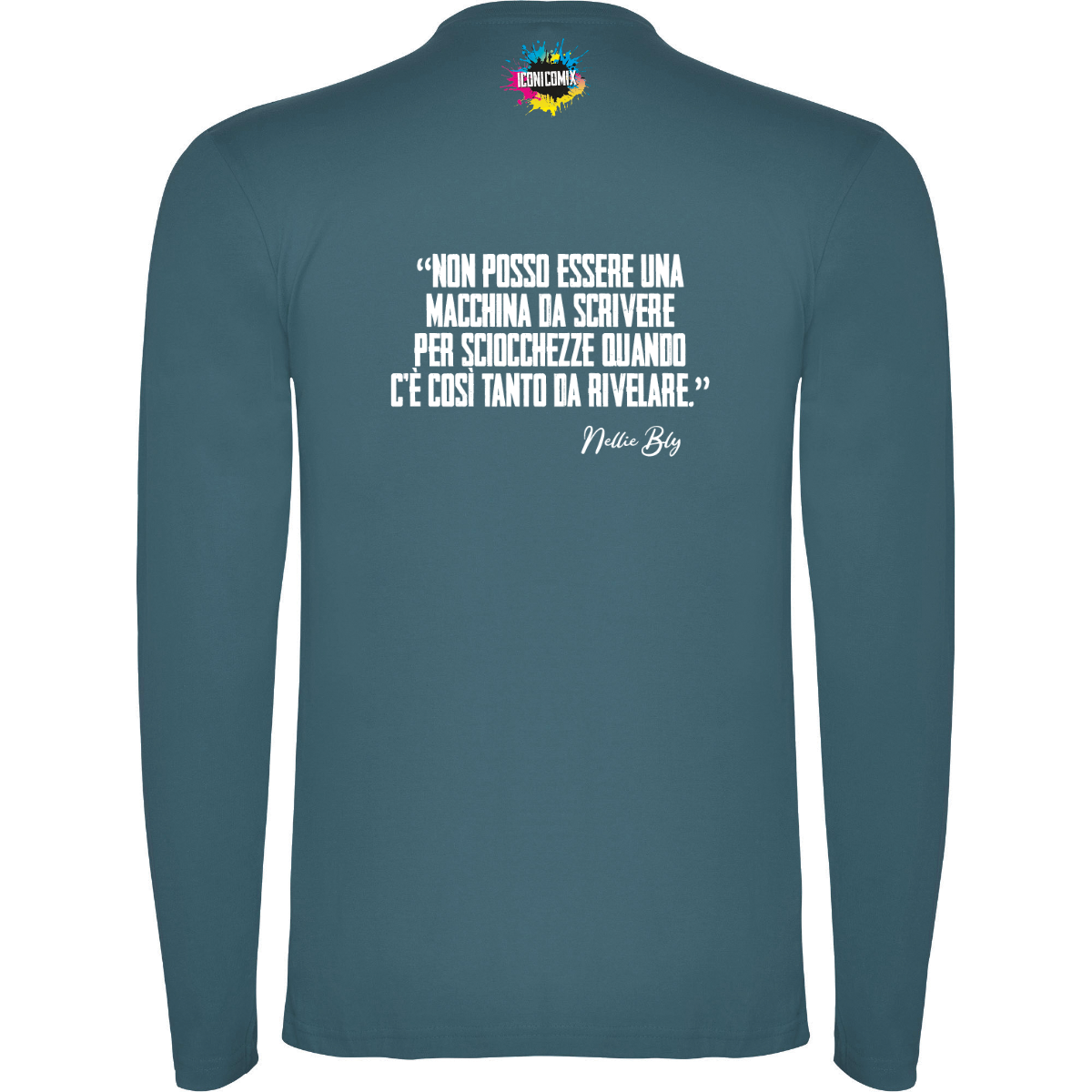 T-shirt manica lunga, tessuto tubolare, girocollo a 4 strati. Copricuciture rinforzate su collo e spalle. Senza