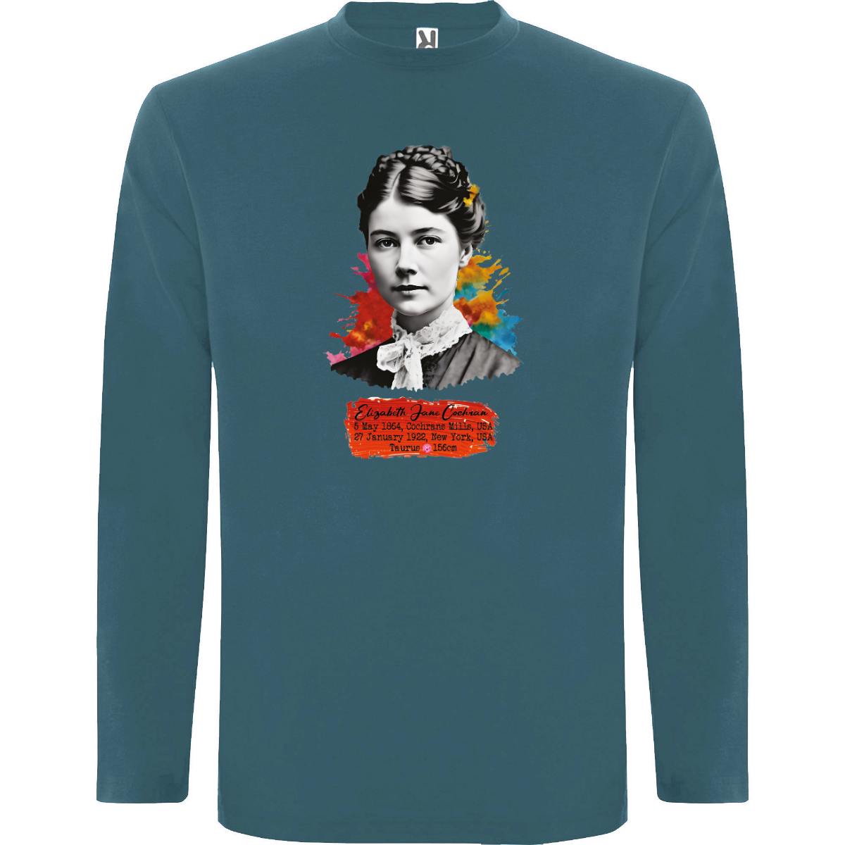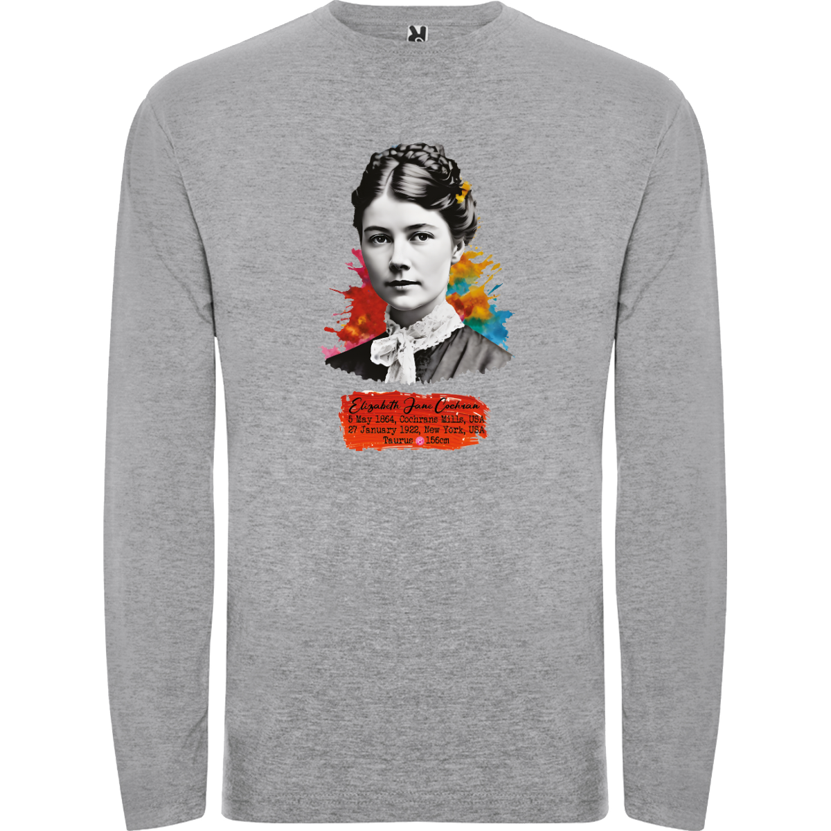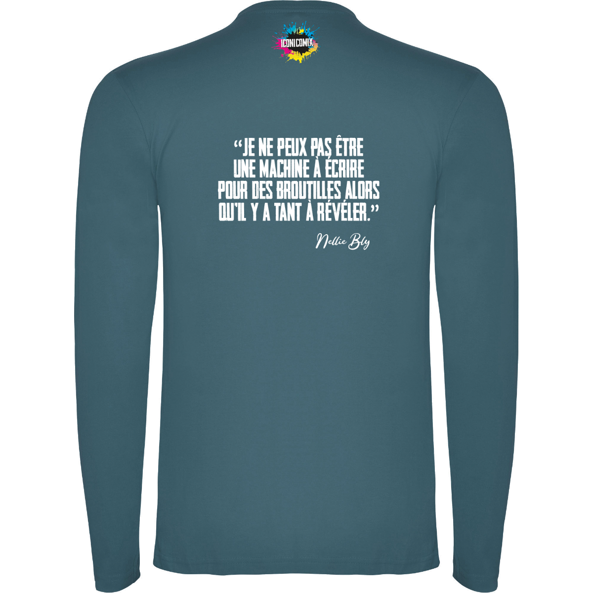 T-shirt manica lunga, tessuto tubolare, girocollo a 4 strati. Copricuciture rinforzate su collo e spalle. Senza