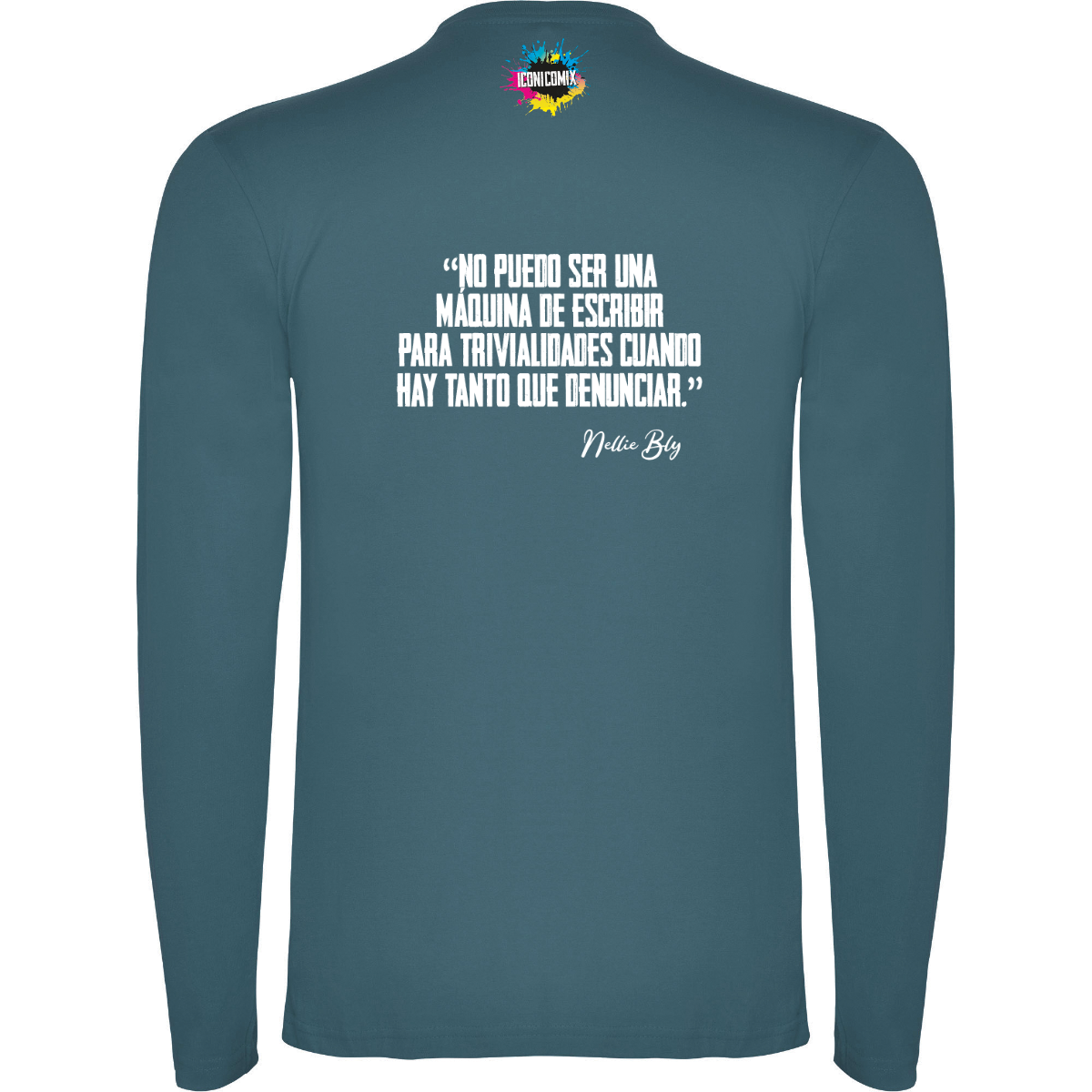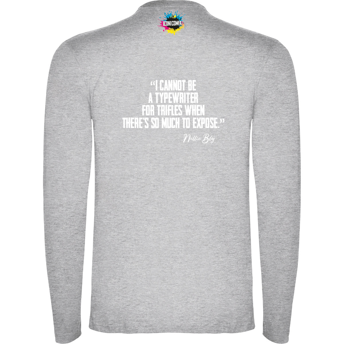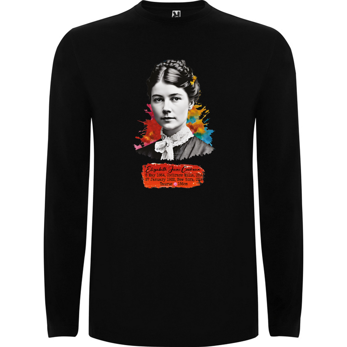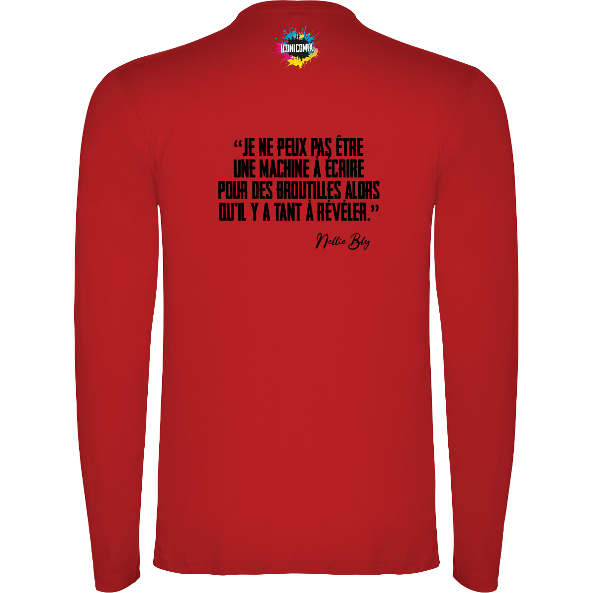 T-shirt manica lunga, tessuto tubolare, girocollo a 4 strati. Copricuciture rinforzate su collo e spalle. Senza