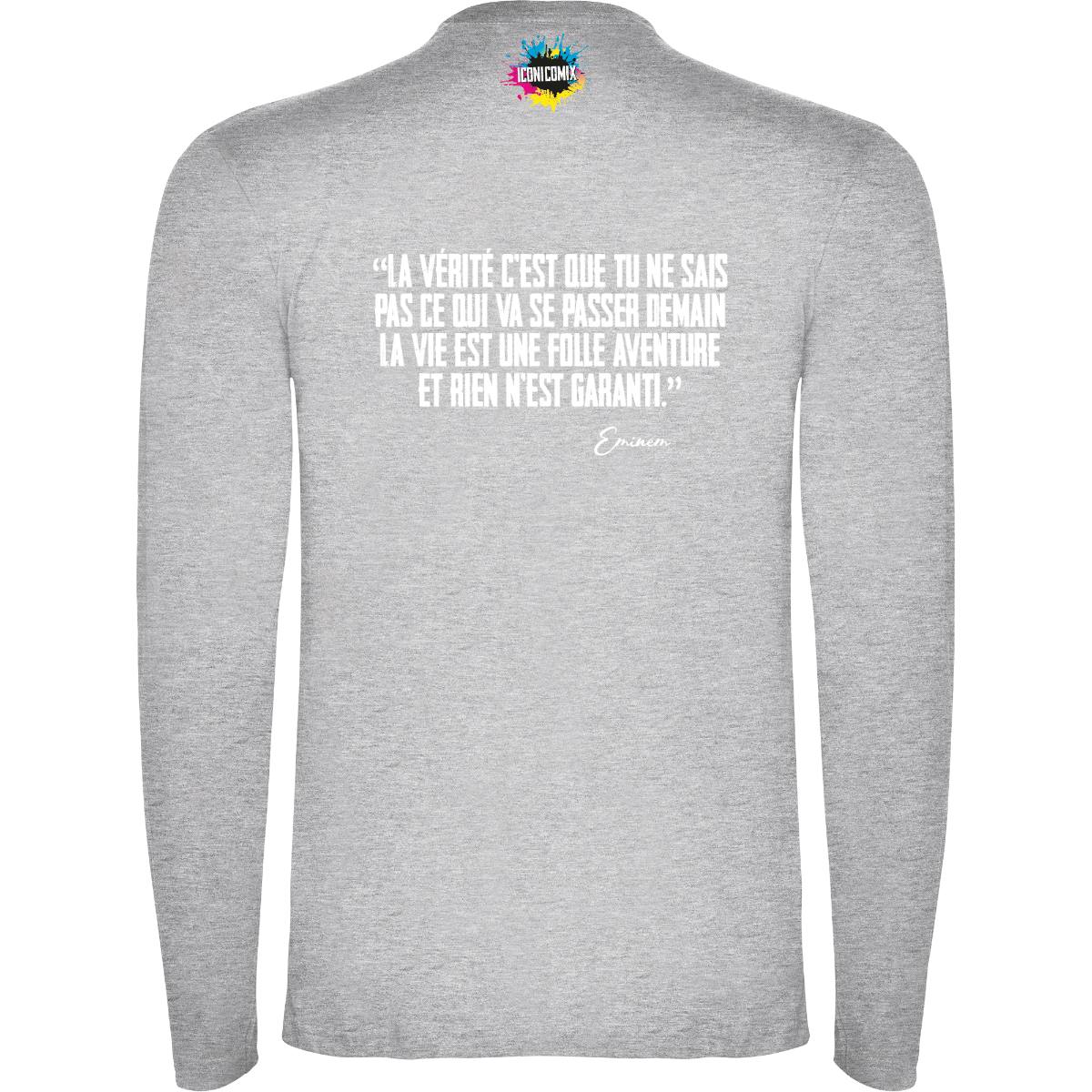 T-shirt manica lunga, tessuto tubolare, girocollo a 4 strati. Copricuciture rinforzate su collo e spalle. Senza