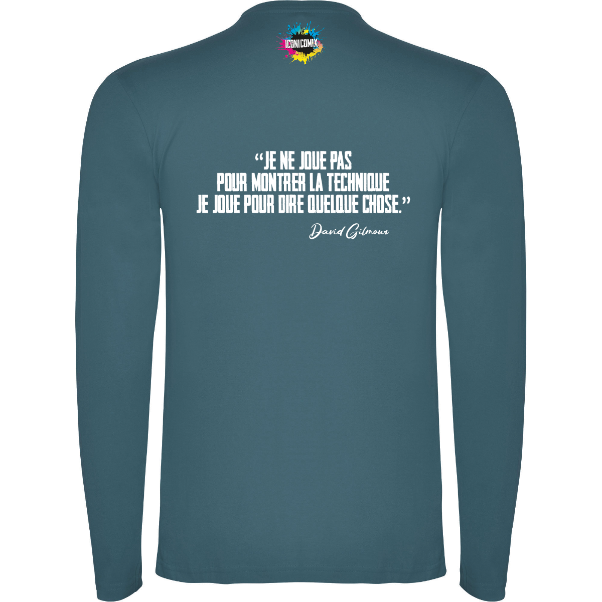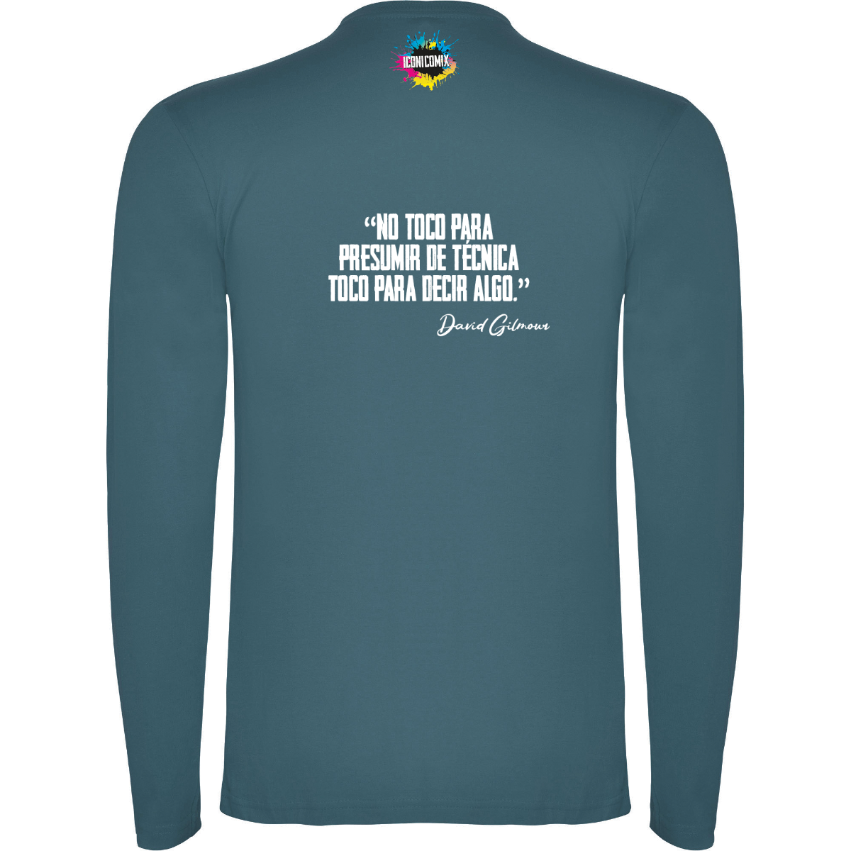 T-shirt manica lunga, tessuto tubolare, girocollo a 4 strati. Copricuciture rinforzate su collo e spalle. Senza