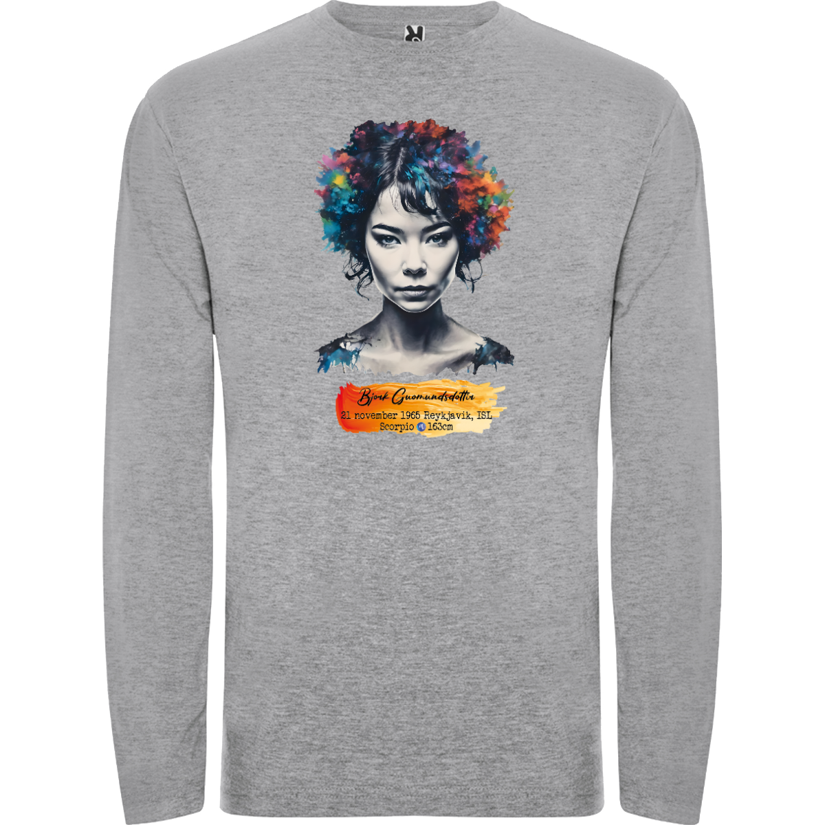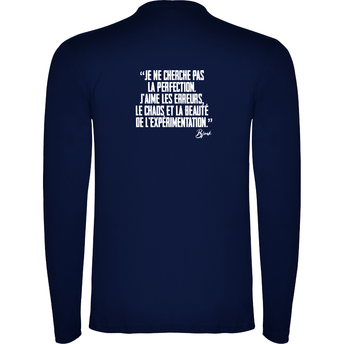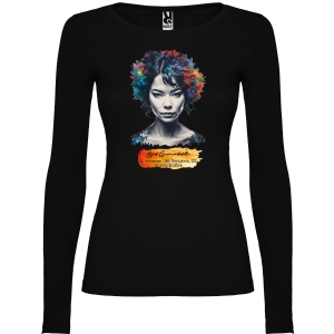 T-shirt manica lunga, tessuto tubolare, girocollo a 4 strati. Copricuciture rinforzate su collo e spalle. Senza