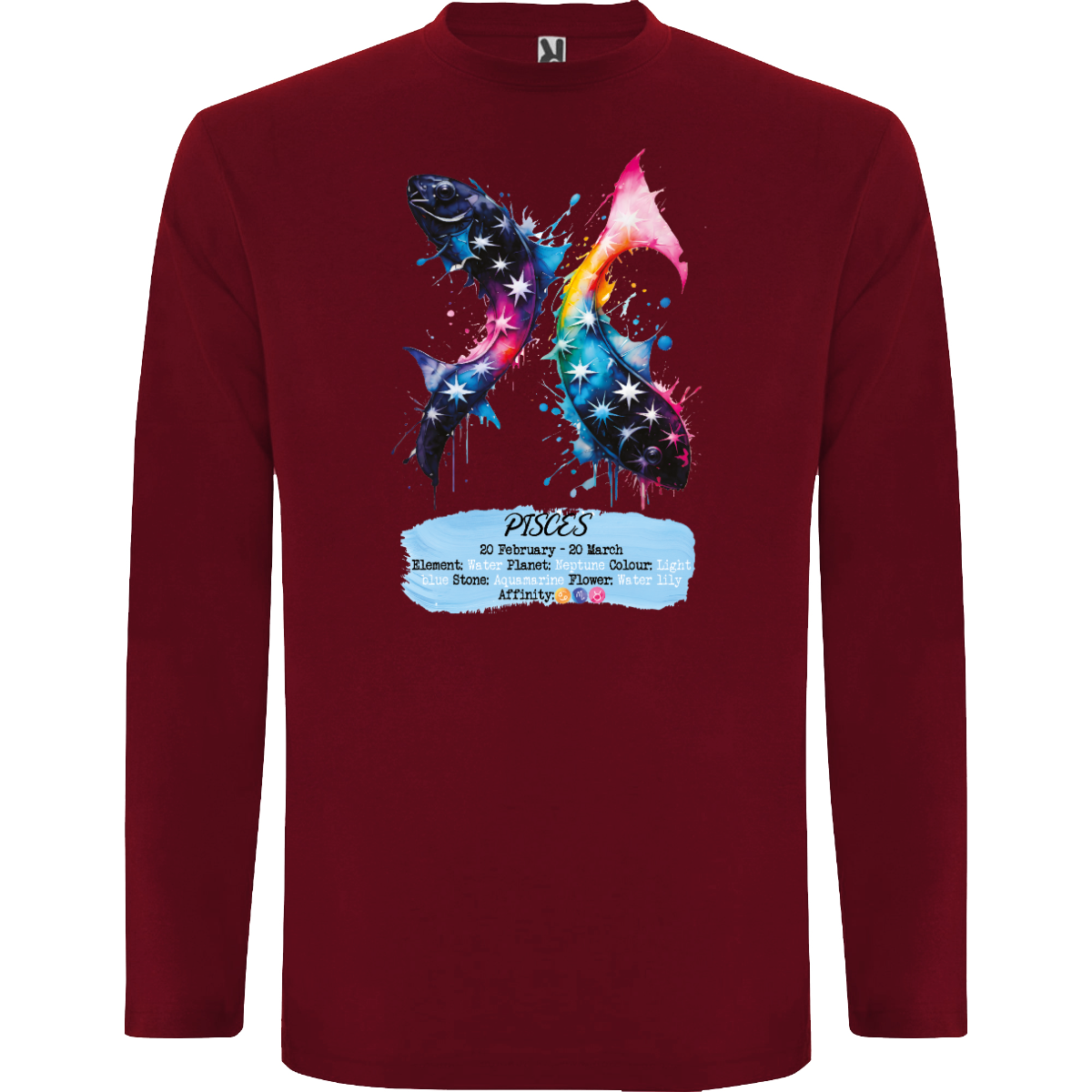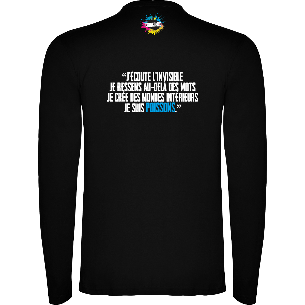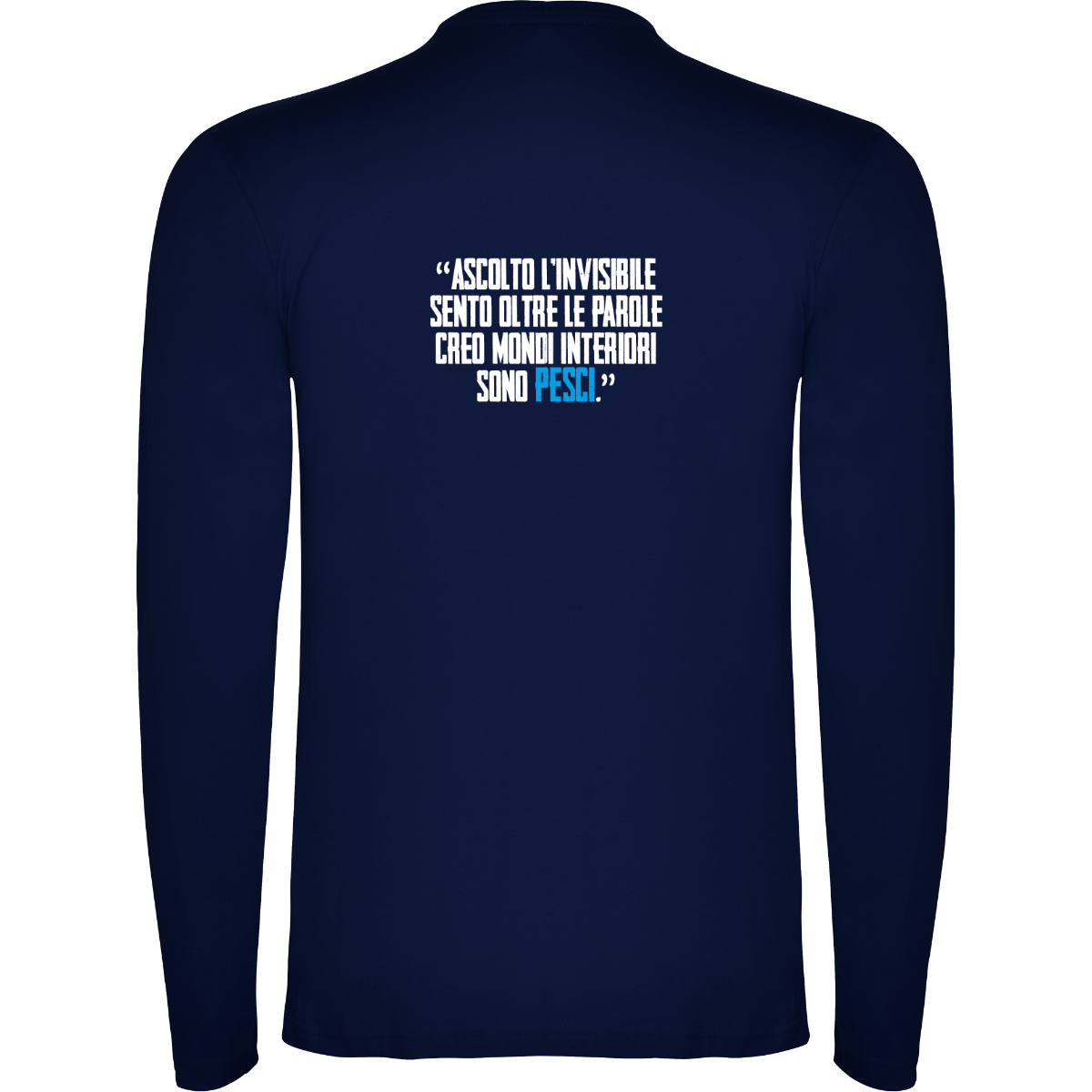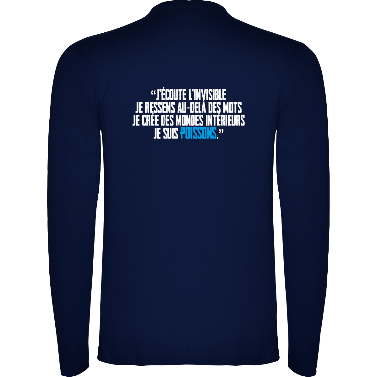 Long-sleeved T-shirt, tubular fabric, 4-layer crew neck. Reinforced seams on the neck and shoulders.