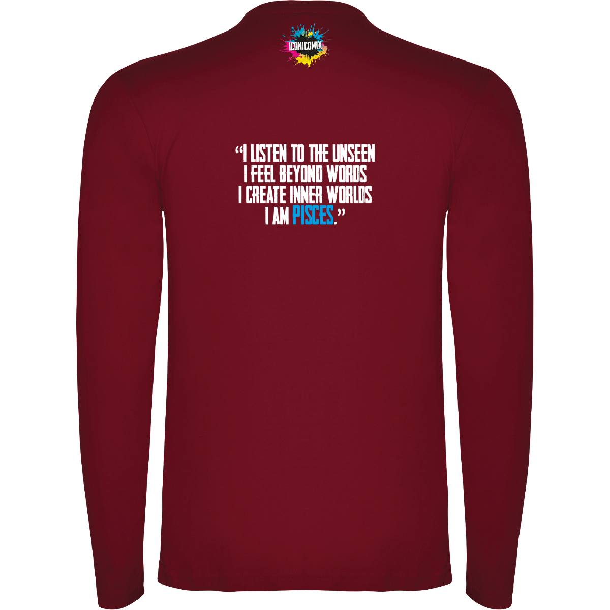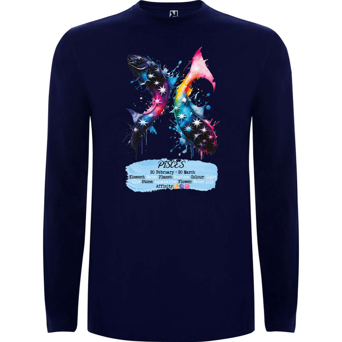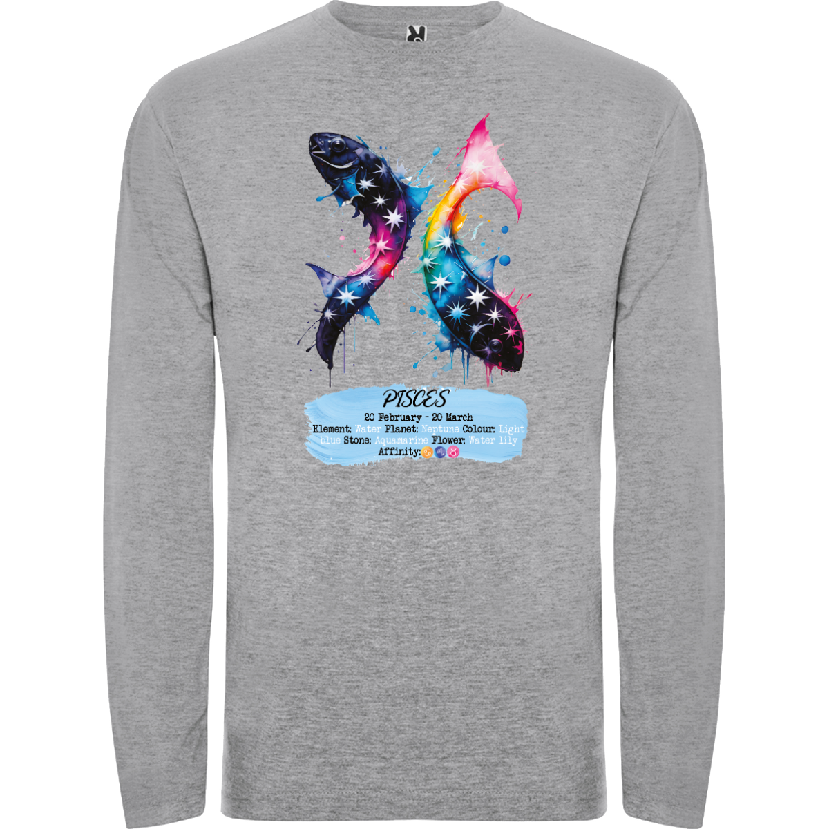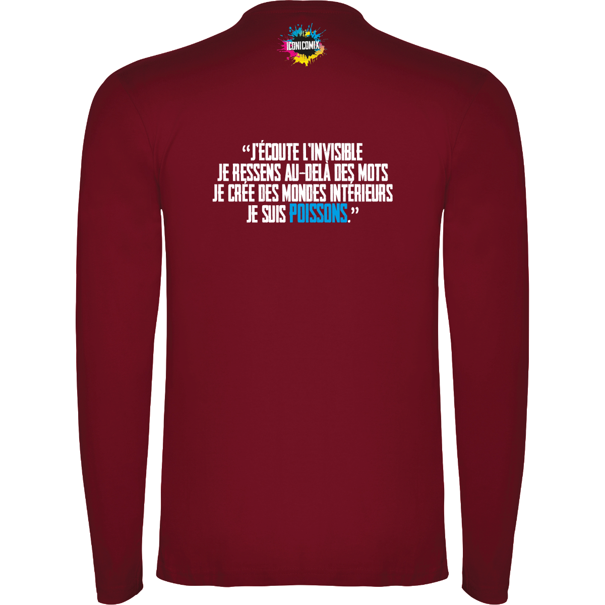 Long-sleeved T-shirt, tubular fabric, 4-layer crew neck. Reinforced seams on the neck and shoulders.