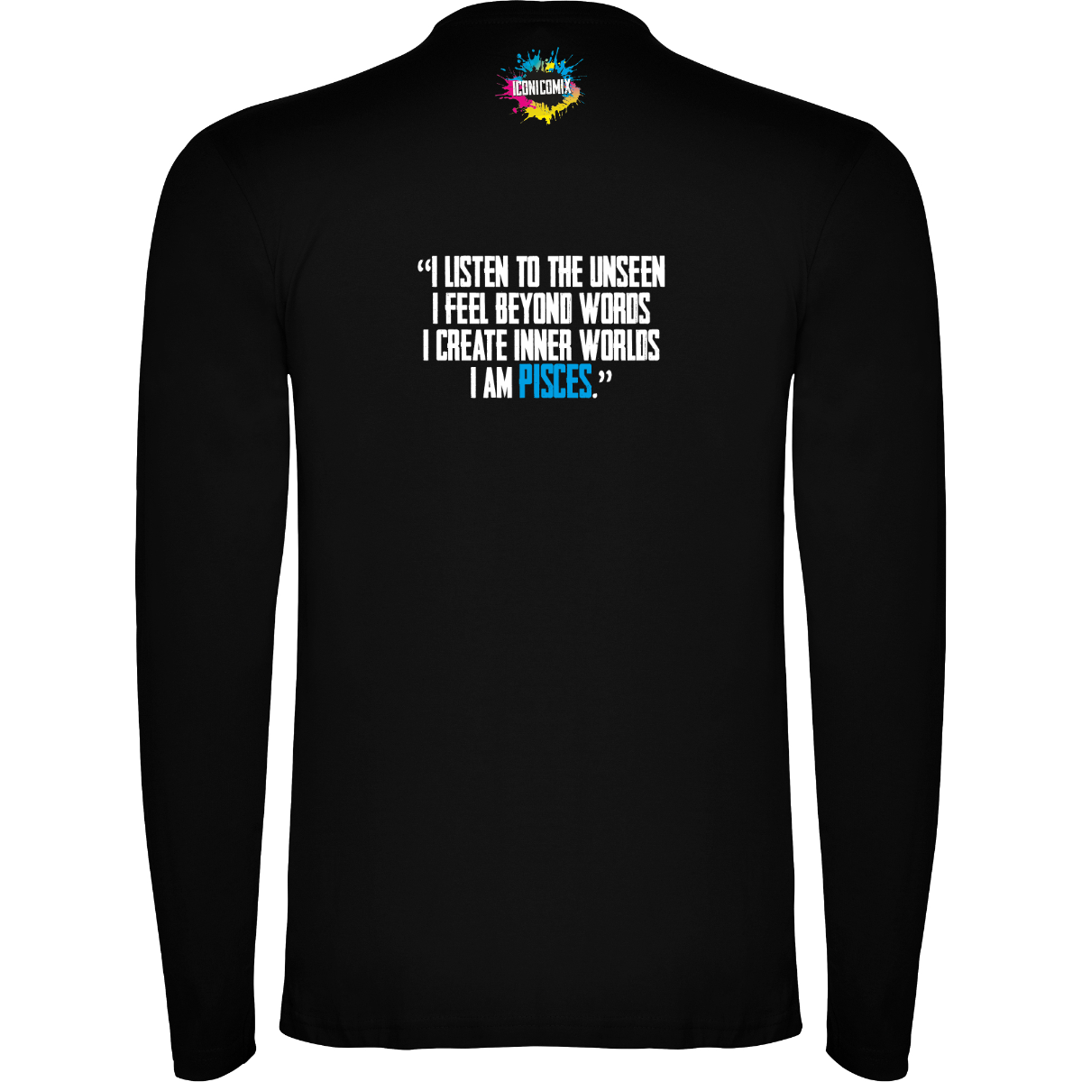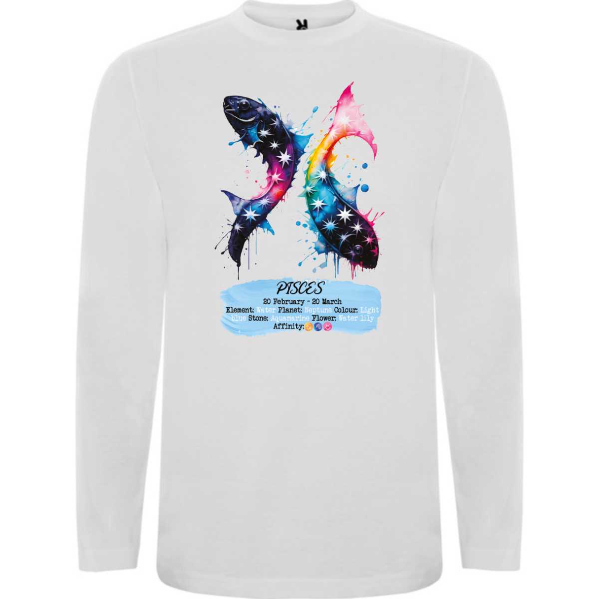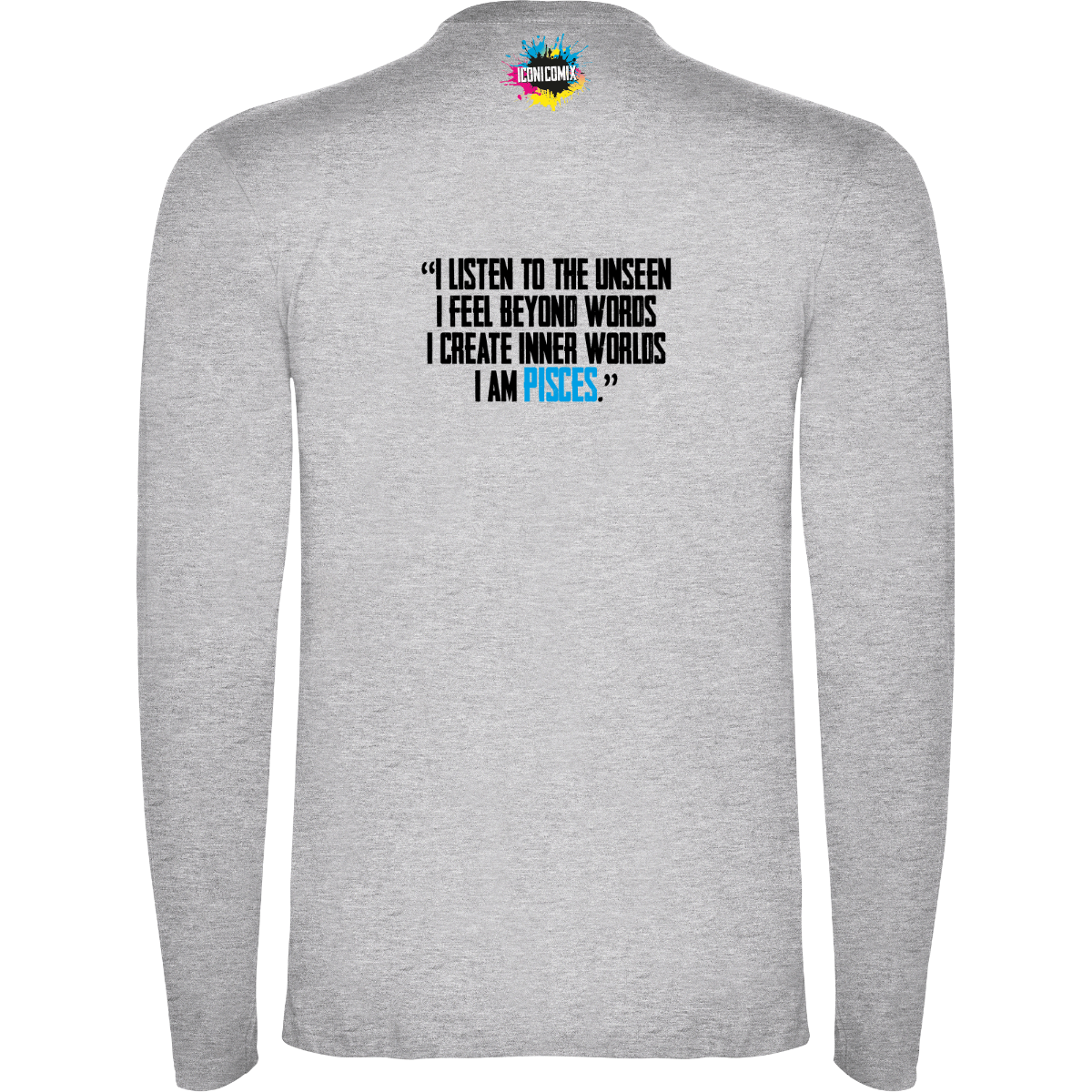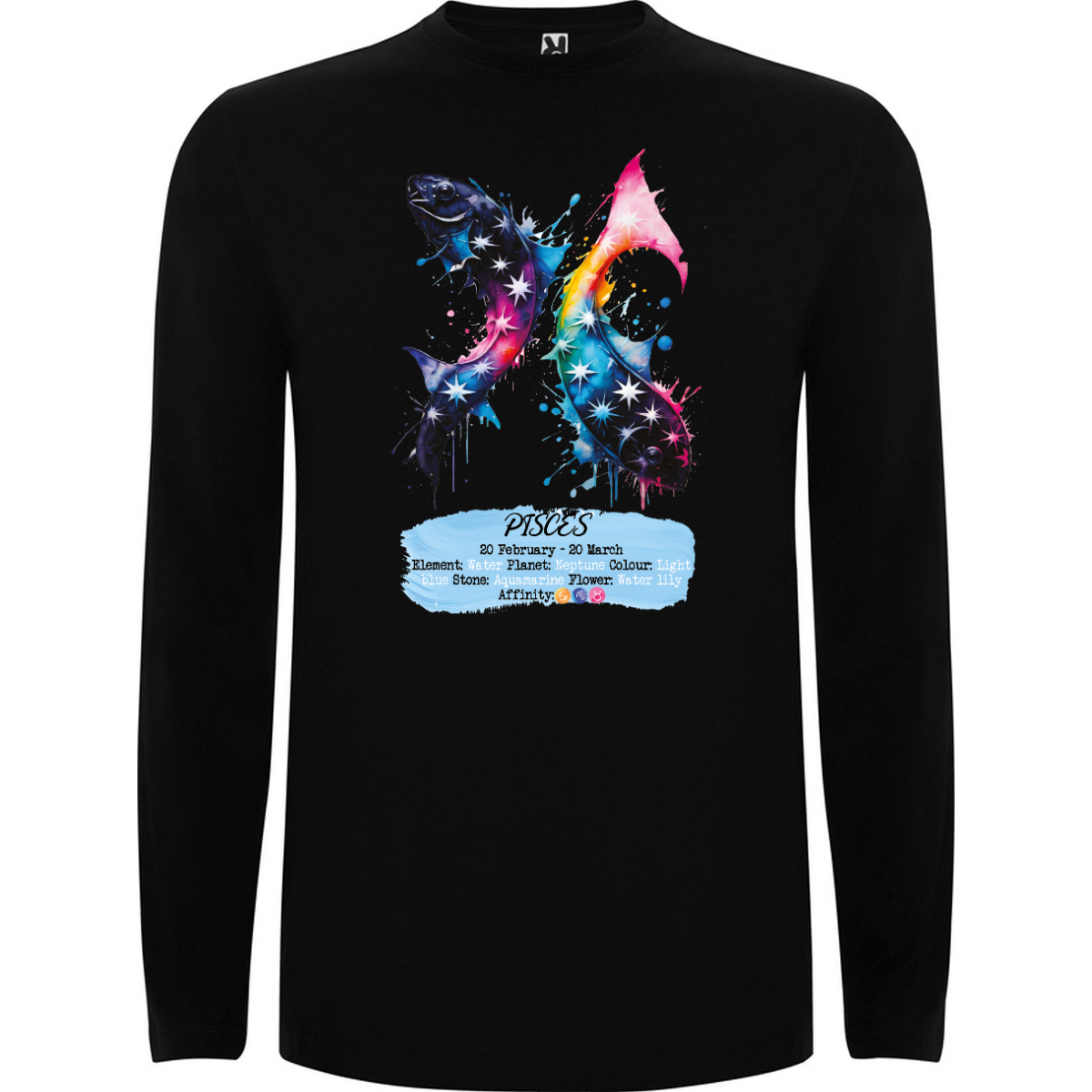 Long-sleeved T-shirt, tubular fabric, 4-layer crew neck. Reinforced seams on the neck and shoulders.