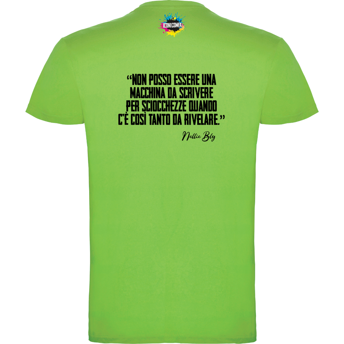 In ogni nostra grafica è presente anche un QR code che reindirizza al sito iconicomix.com, alla pagina ufficiale dell’icona che hai scelto. Una porta digitale che racconta la sua storia, le sue frasi e il suo mondo.
