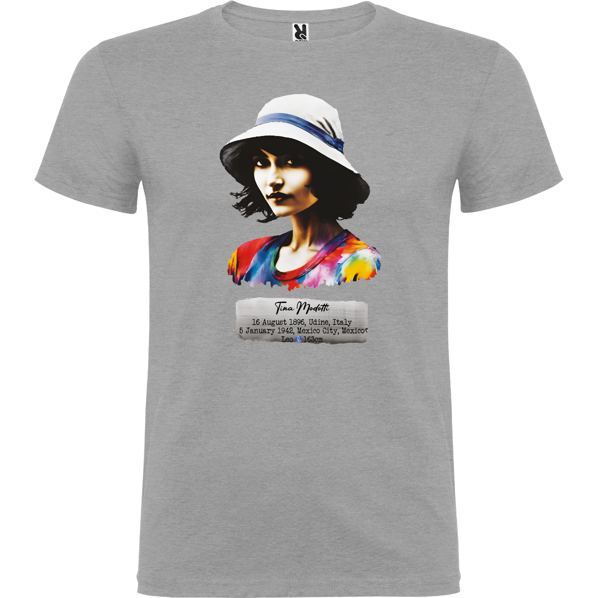T-shirt a maniche corte. Girocollo con elastan e cuciture da spalla a spalla. Tubolare nelle taglie da adulto e con cuciture laterali nelle taglie da bambino. 100% cotone, jersey singolo, 155 g/m². Colore:  Grey: 85% cotone / 15% viscosa.