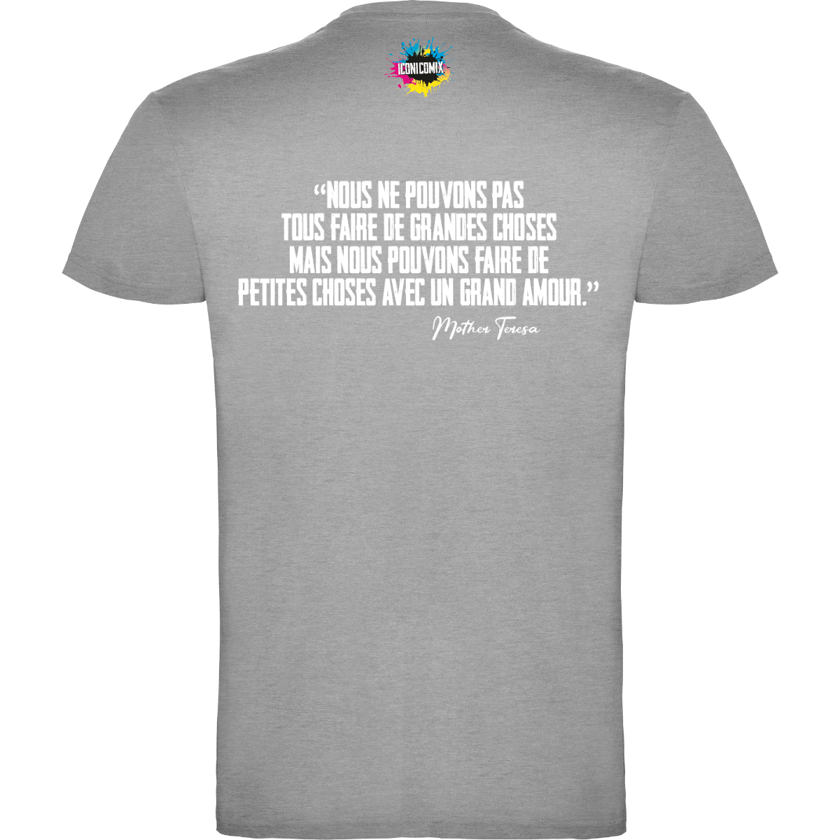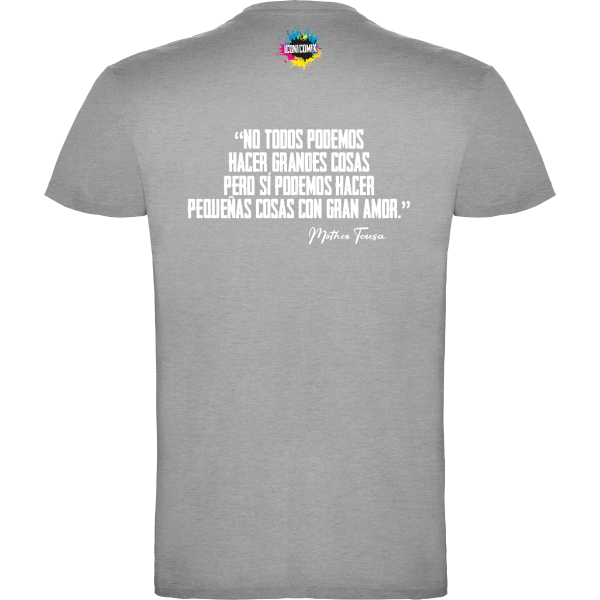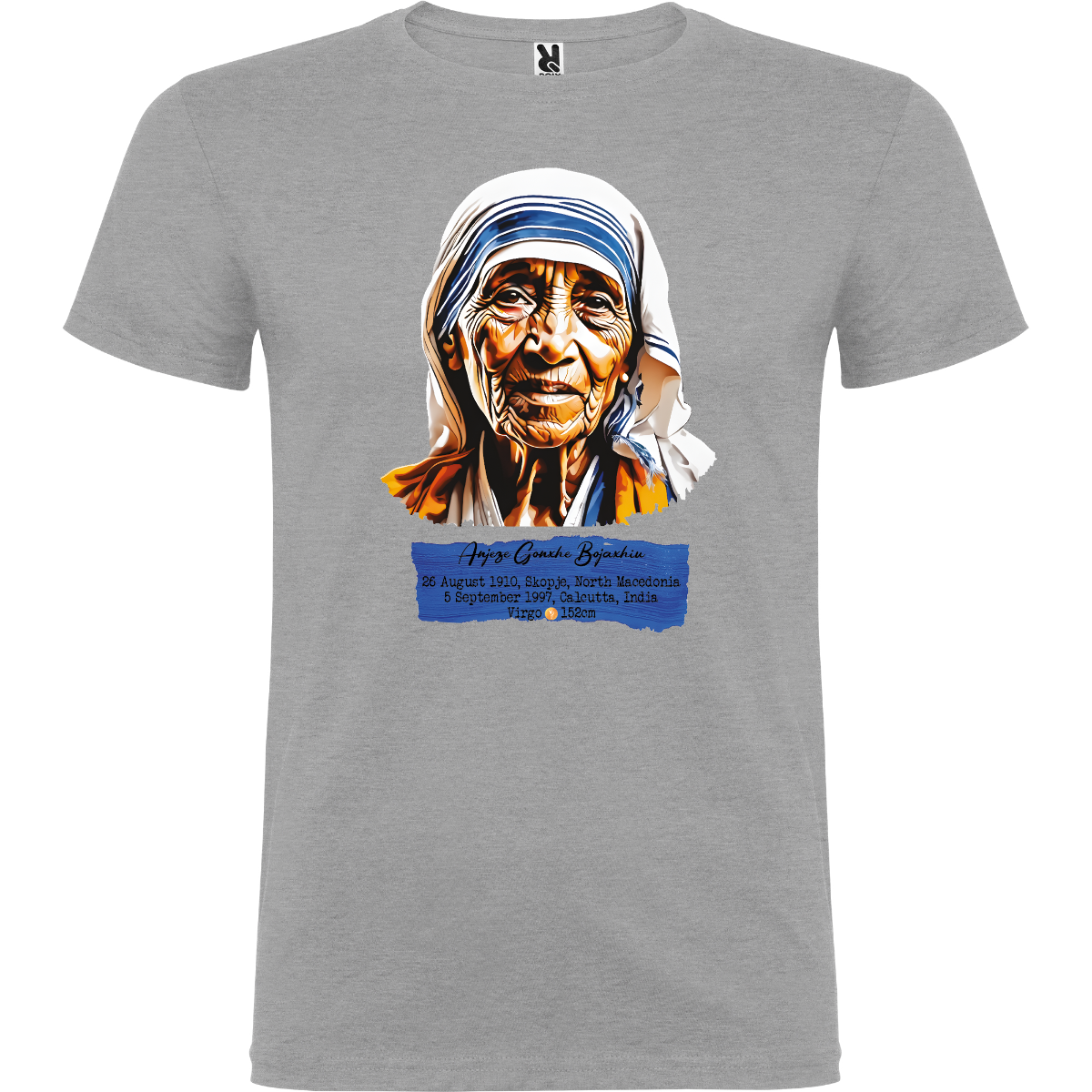 T-shirt a maniche corte. Girocollo con elastan e cuciture da spalla a spalla. Tubolare nelle taglie da adulto e con cuciture laterali nelle taglie da bambino. 100% cotone, jersey singolo, 155 g/m². Colore:  Grey: 85% cotone / 15% viscosa.