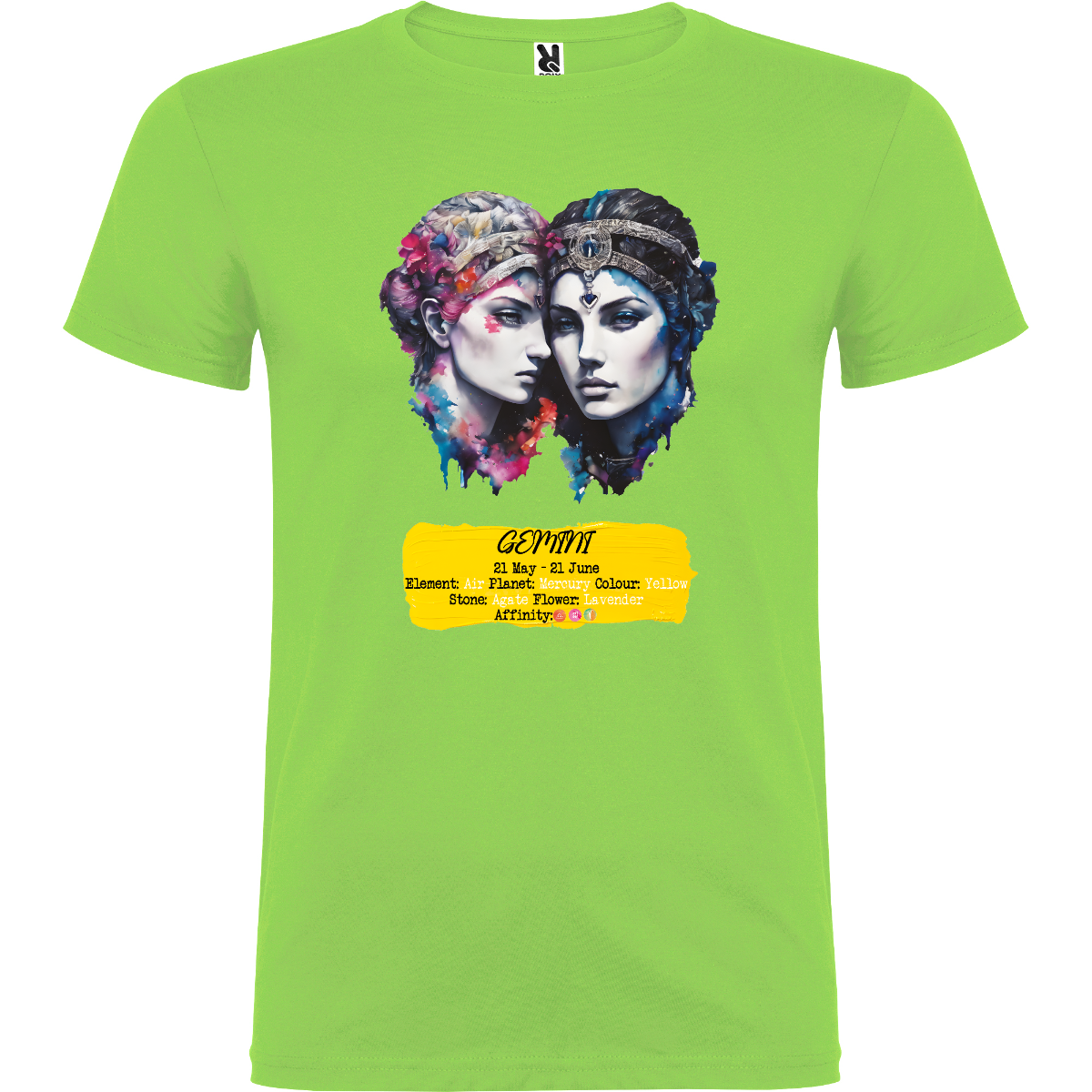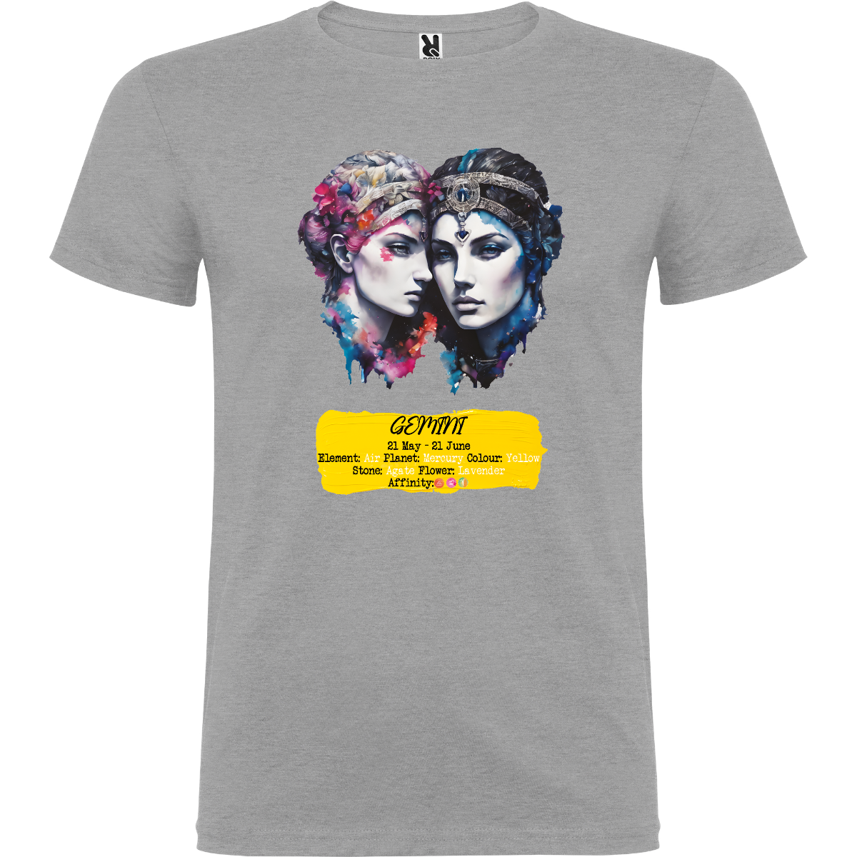 T-shirt a maniche corte. Girocollo con elastan e cuciture da spalla a spalla. Tubolare nelle taglie da adulto e con cuciture laterali nelle taglie da bambino. 100% cotone, jersey singolo, 155 g/m². Colore:  Grey: 85% cotone / 15% viscosa.