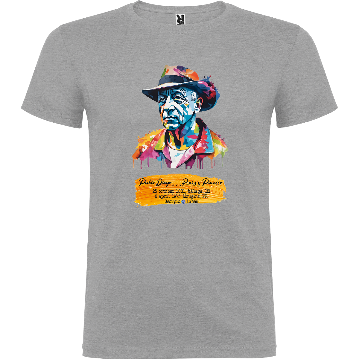 T-shirt a maniche corte. Girocollo con elastan e cuciture da spalla a spalla. Tubolare nelle taglie da adulto e con cuciture laterali nelle taglie da bambino. 100% cotone, jersey singolo, 155 g/m². Colore:  Grey: 85% cotone / 15% viscosa.
