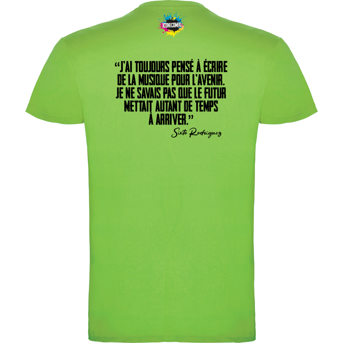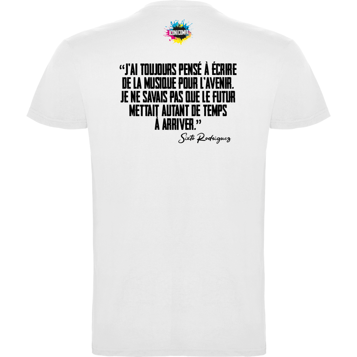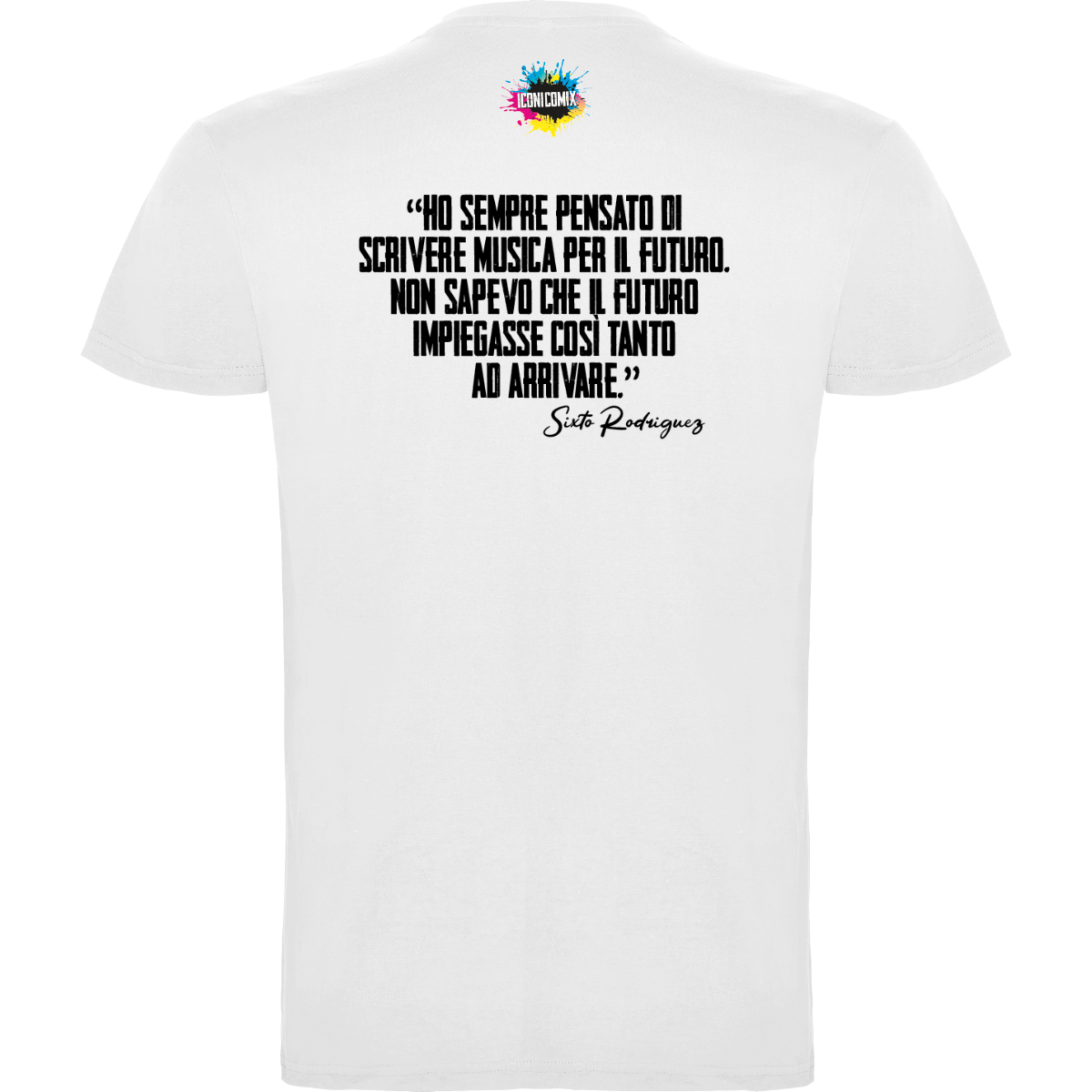 In ogni nostra grafica è presente anche un QR code che reindirizza al sito iconicomix.com, alla pagina ufficiale dell’icona che hai scelto. Una porta digitale che racconta la sua storia, le sue frasi e il suo mondo.