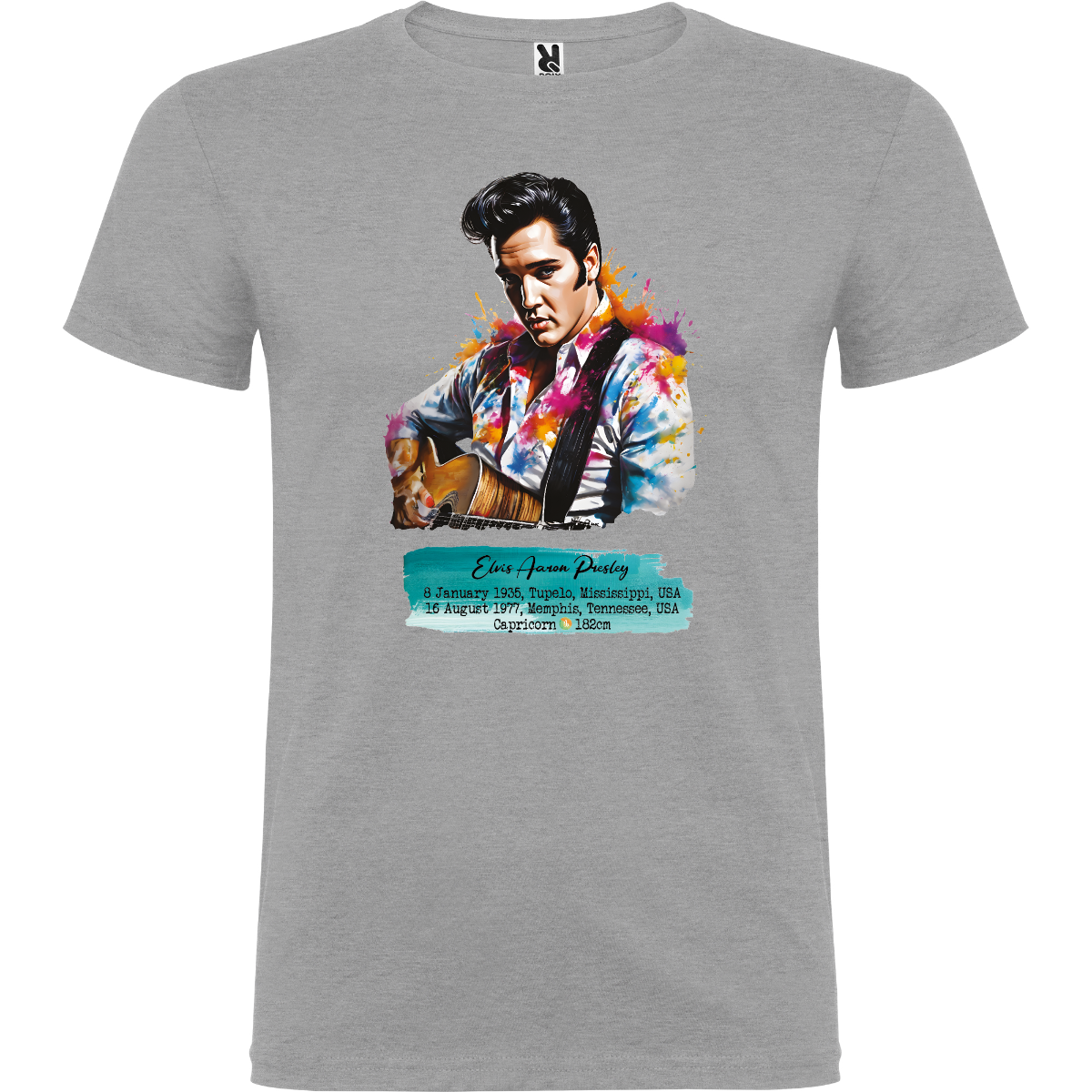 T-shirt a maniche corte. Girocollo con elastan e cuciture da spalla a spalla. Tubolare nelle taglie da adulto e con cuciture laterali nelle taglie da bambino. 100% cotone, jersey singolo, 155 g/m². Colore:  Grey: 85% cotone / 15% viscosa.
