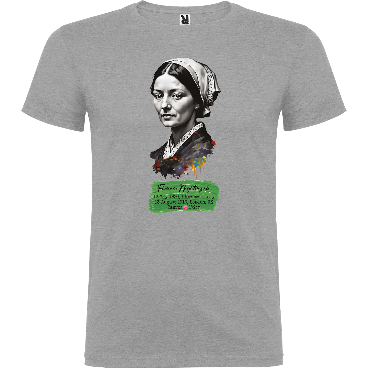 T-shirt a maniche corte. Girocollo con elastan e cuciture da spalla a spalla. Tubolare nelle taglie da adulto e con cuciture laterali nelle taglie da bambino. 100% cotone, jersey singolo, 155 g/m². Colore:  Grey: 85% cotone / 15% viscosa.