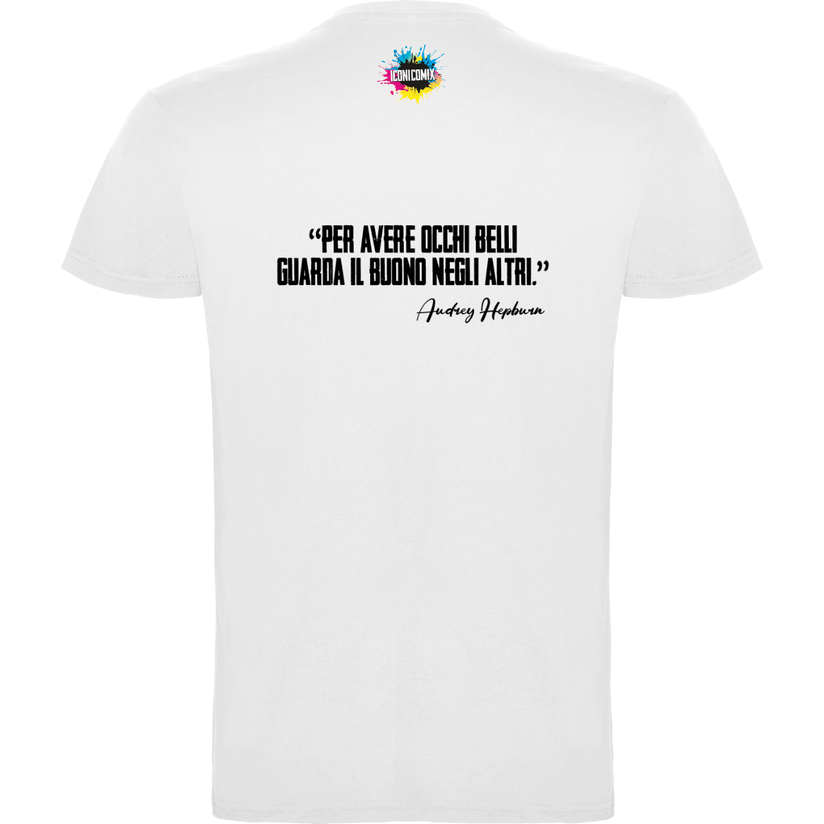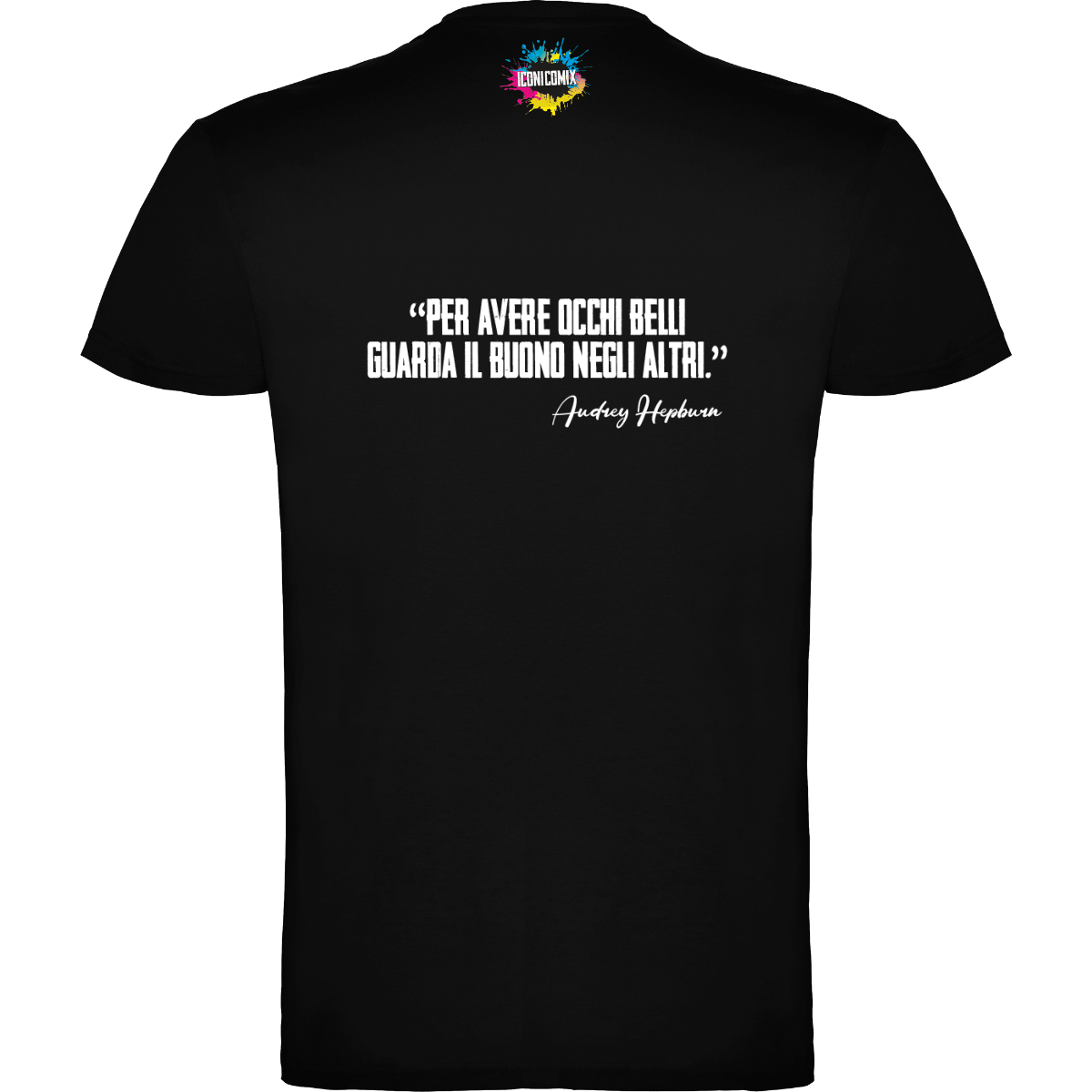 In ogni nostra grafica è presente anche un QR code che reindirizza al sito iconicomix.com, alla pagina ufficiale dell’icona che hai scelto. Una porta digitale che racconta la sua storia, le sue frasi e il suo mondo.