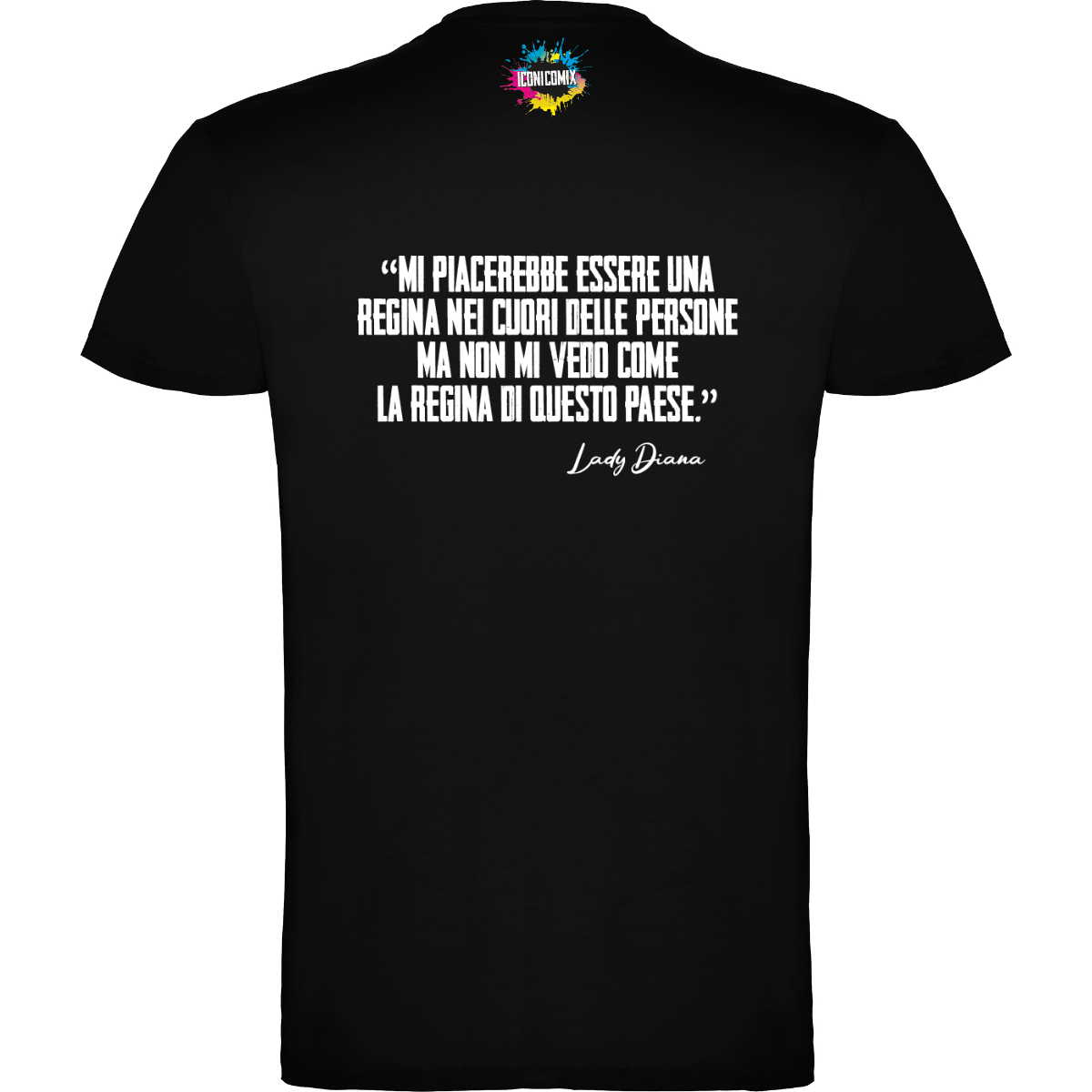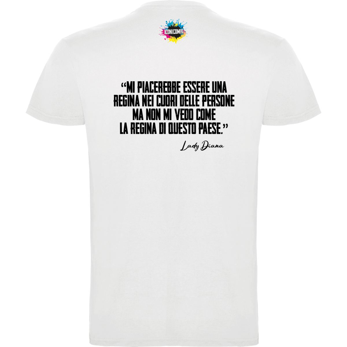 In ogni nostra grafica è presente anche un QR code che reindirizza al sito iconicomix.com, alla pagina ufficiale dell’icona che hai scelto. Una porta digitale che racconta la sua storia, le sue frasi e il suo mondo.