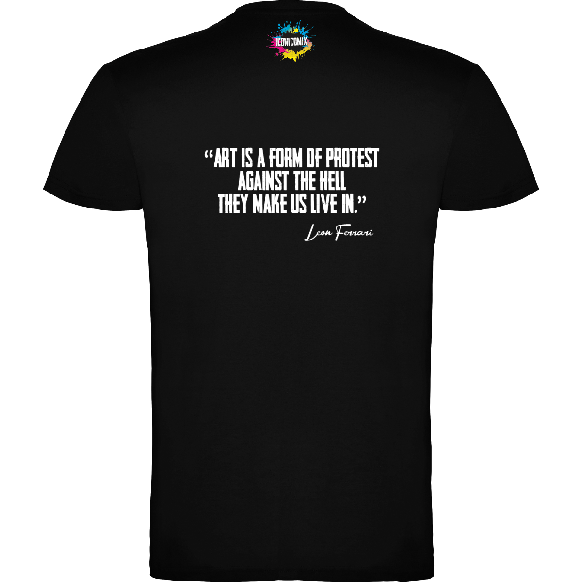 In ogni nostra grafica è presente anche un QR code che reindirizza al sito iconicomix.com, alla pagina ufficiale dell’icona che hai scelto. Una porta digitale che racconta la sua storia, le sue frasi e il suo mondo.