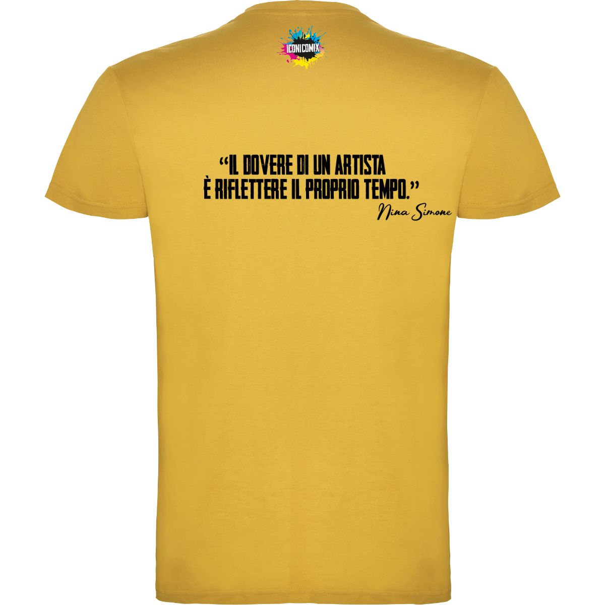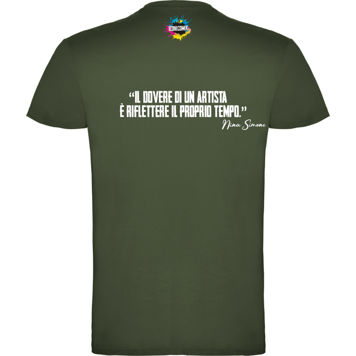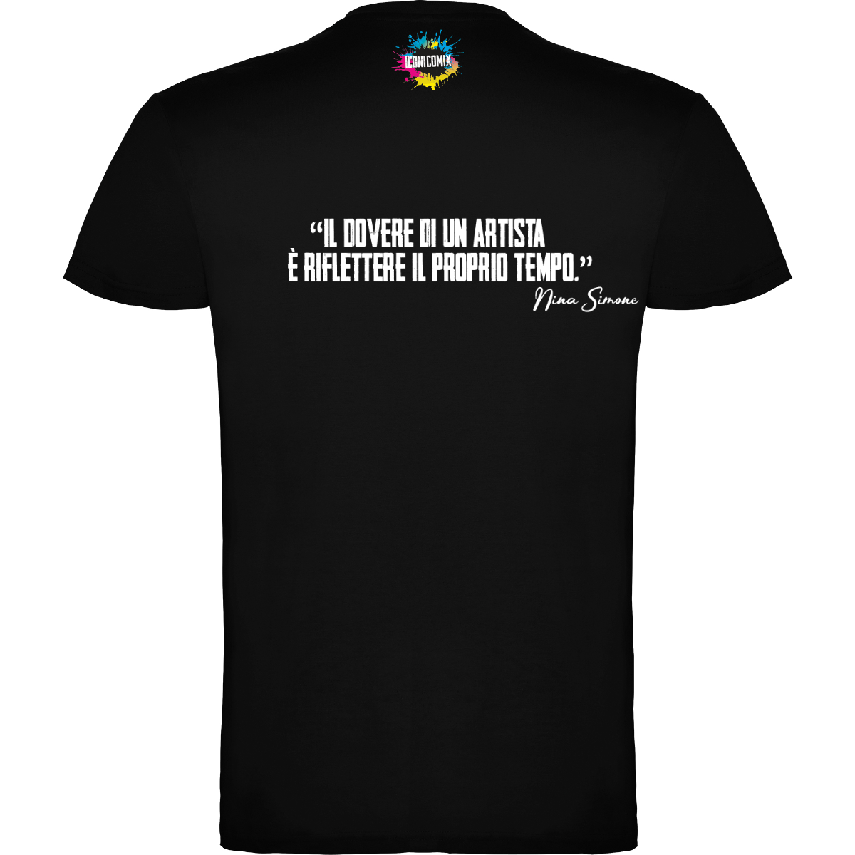 In ogni nostra grafica è presente anche un QR code che reindirizza al sito iconicomix.com, alla pagina ufficiale dell’icona che hai scelto. Una porta digitale che racconta la sua storia, le sue frasi e il suo mondo.