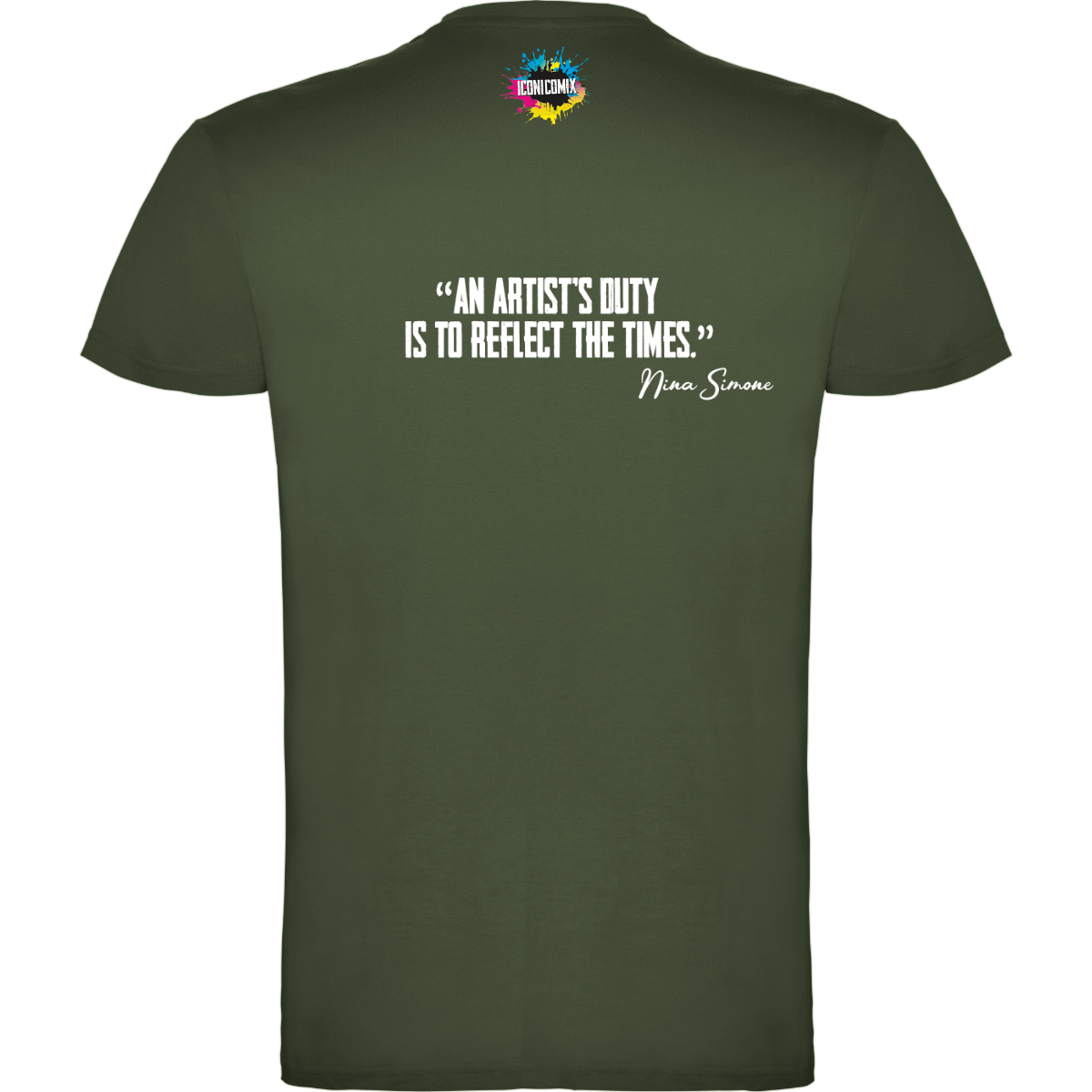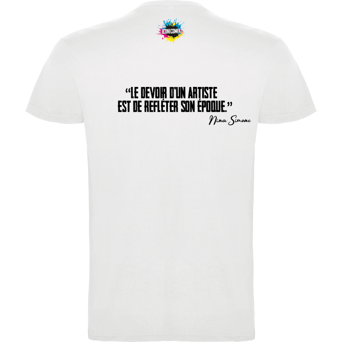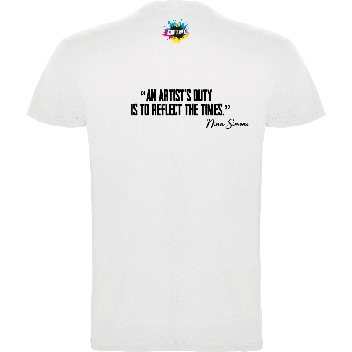 In ogni nostra grafica è presente anche un QR code che reindirizza al sito iconicomix.com, alla pagina ufficiale dell’icona che hai scelto. Una porta digitale che racconta la sua storia, le sue frasi e il suo mondo.
