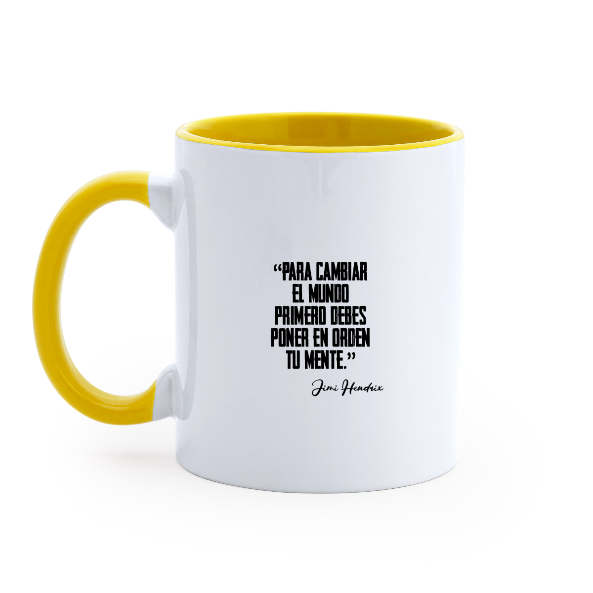 Mug en céramique de 350 ml. Intérieur et anse colorés. 9,6 cm. diametre 8,2