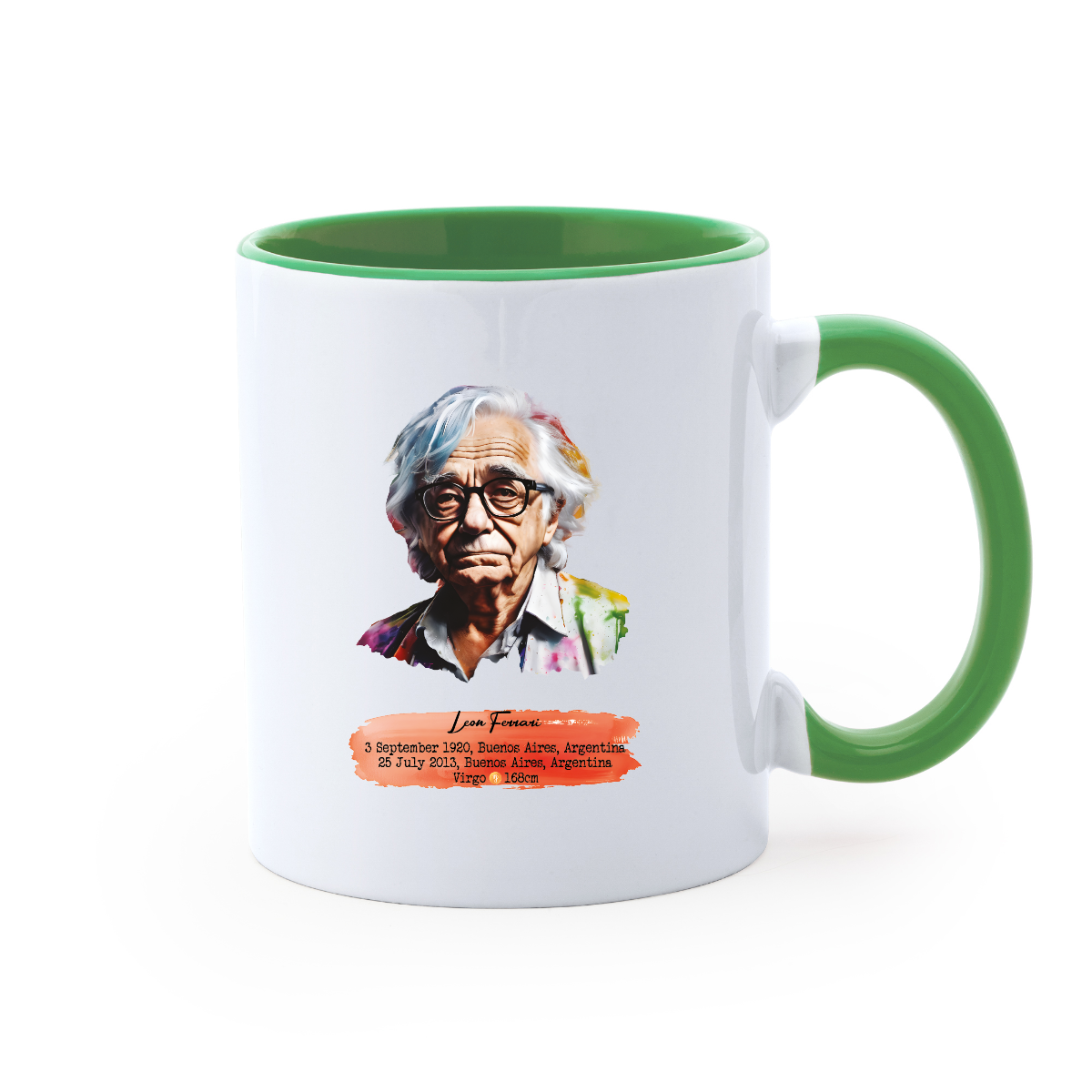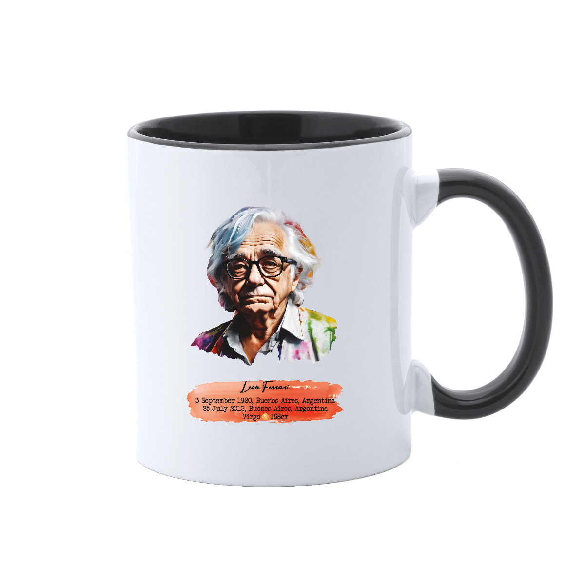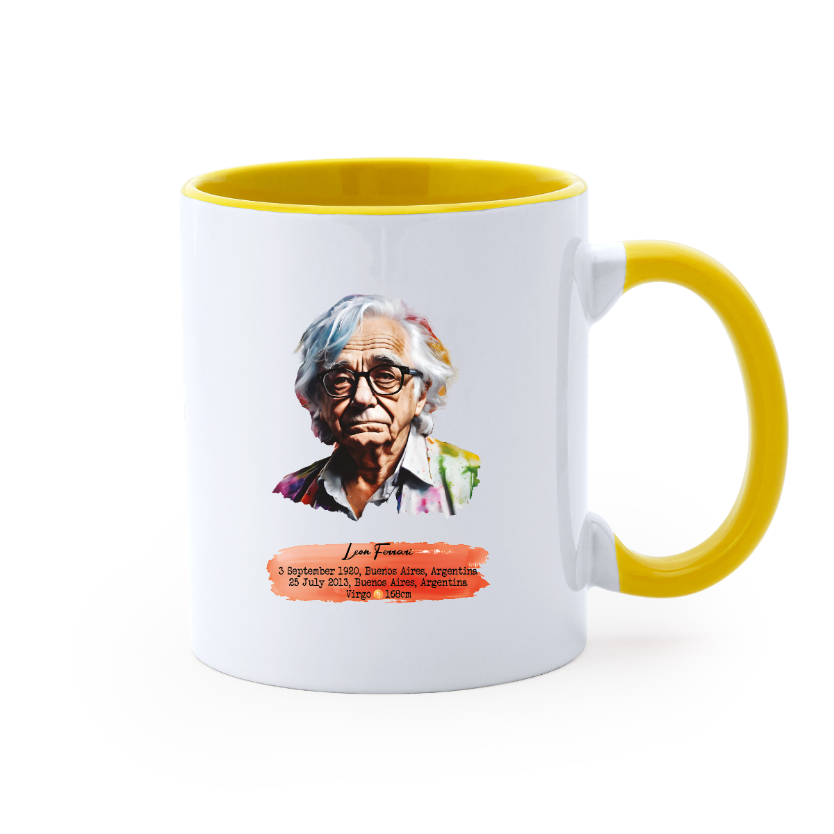 350ml ceramic mug. Color interior and handle. 9.6cm/8.2in diameter.