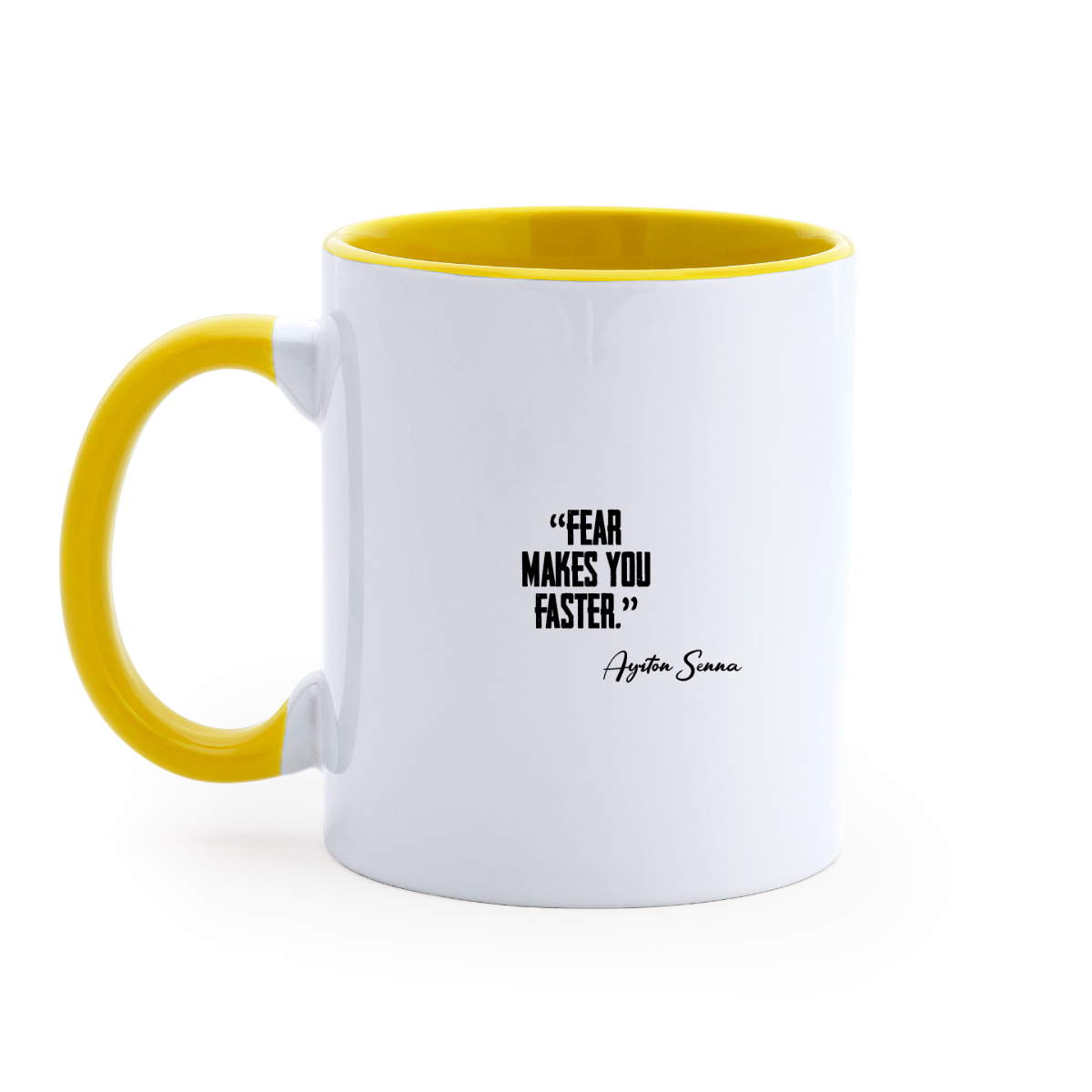 350ml ceramic mug. Color interior and handle. 9.6cm/8.2in diameter.