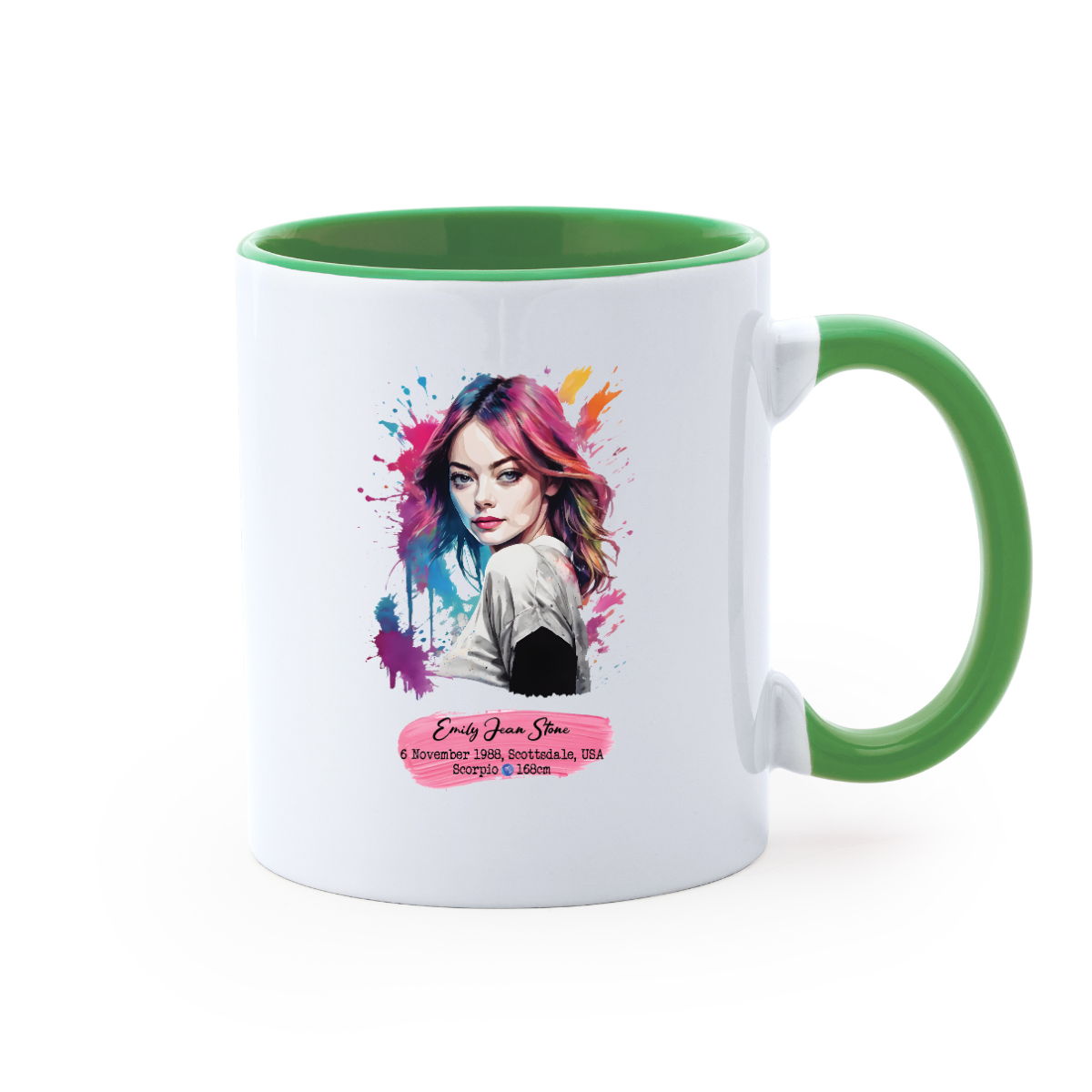 350ml ceramic mug. Color interior and handle. 9.6cm/8.2in diameter.