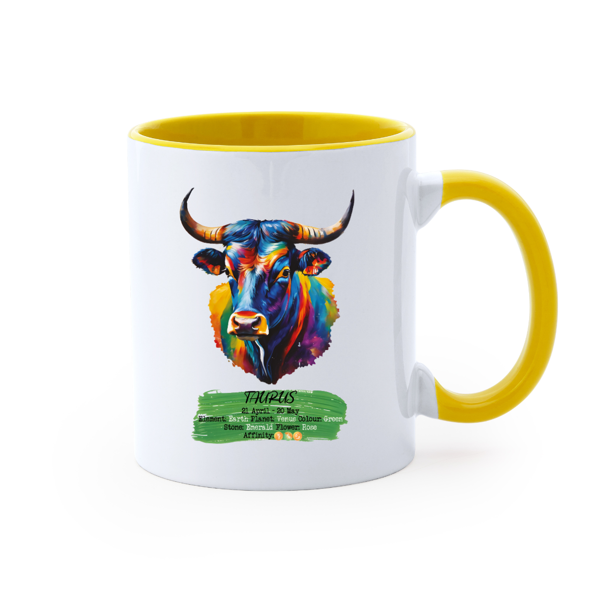 Tazza Mug da 350 ml in ceramica. Interno e maniglia a colori. 9,6cm/8,2 Ø